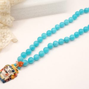 Men's Moor's Head Choker Necklace in Coral, Jade, and Tiffany Ceramic