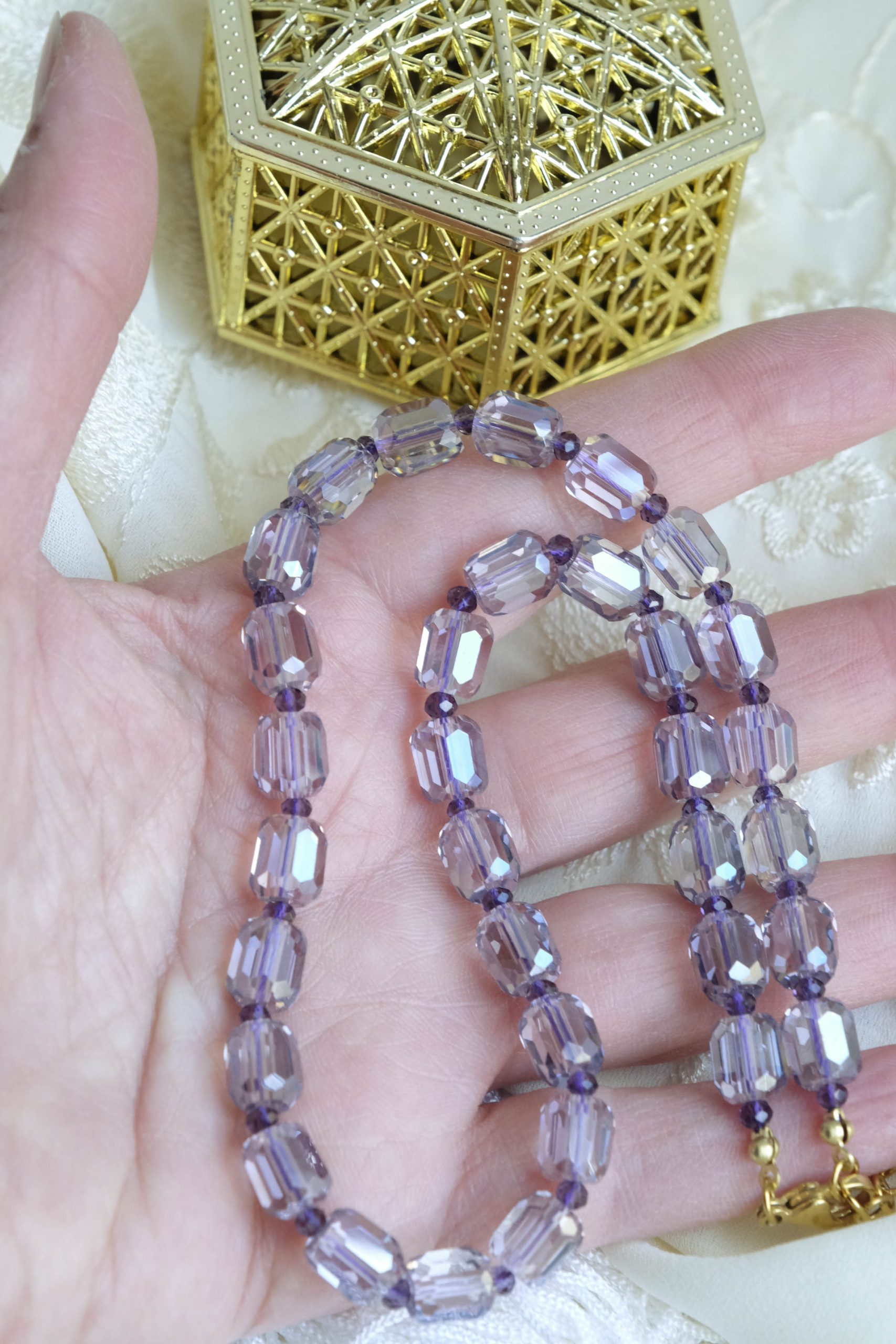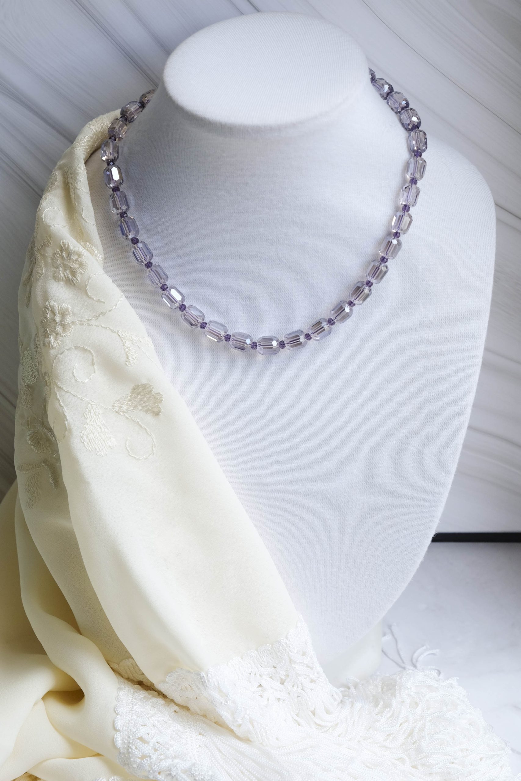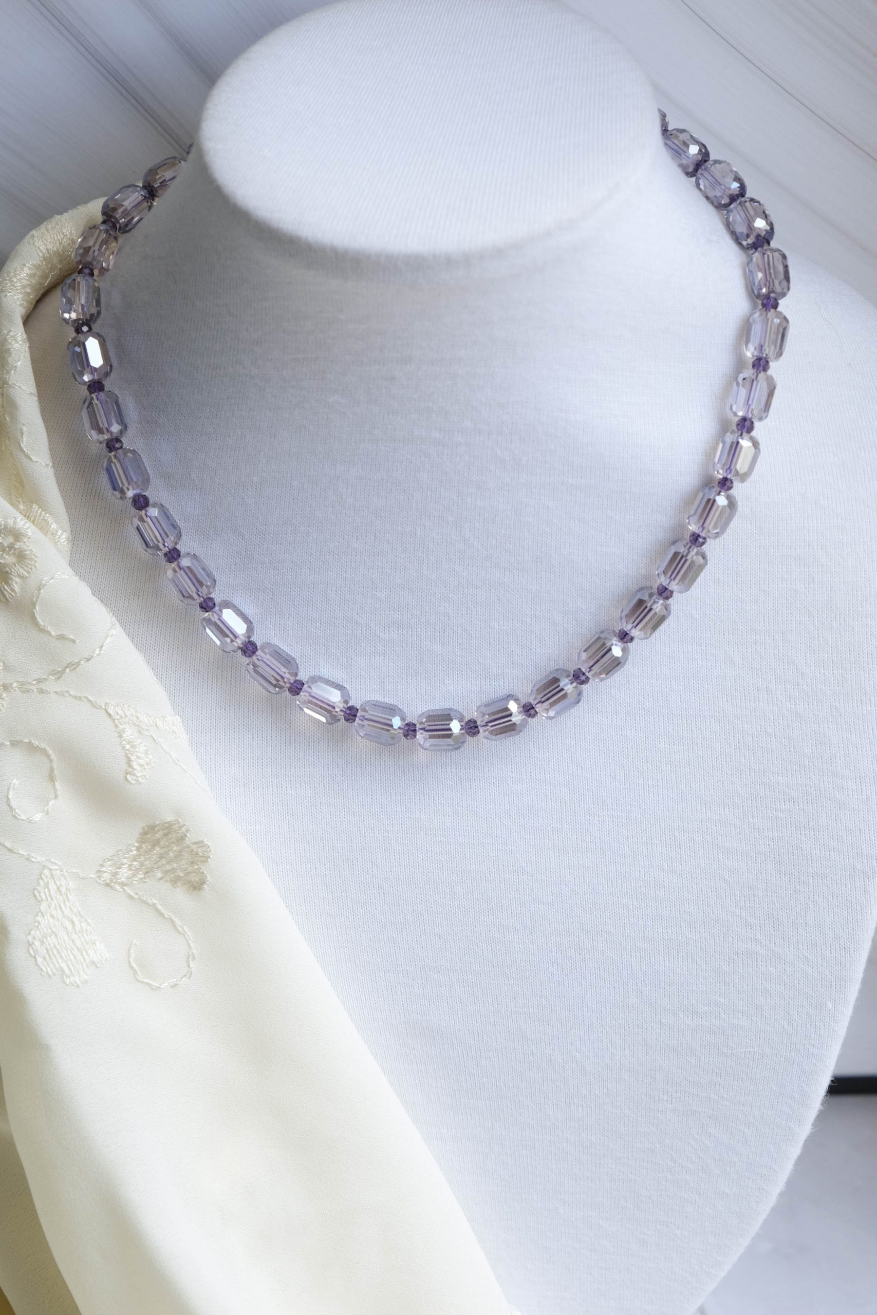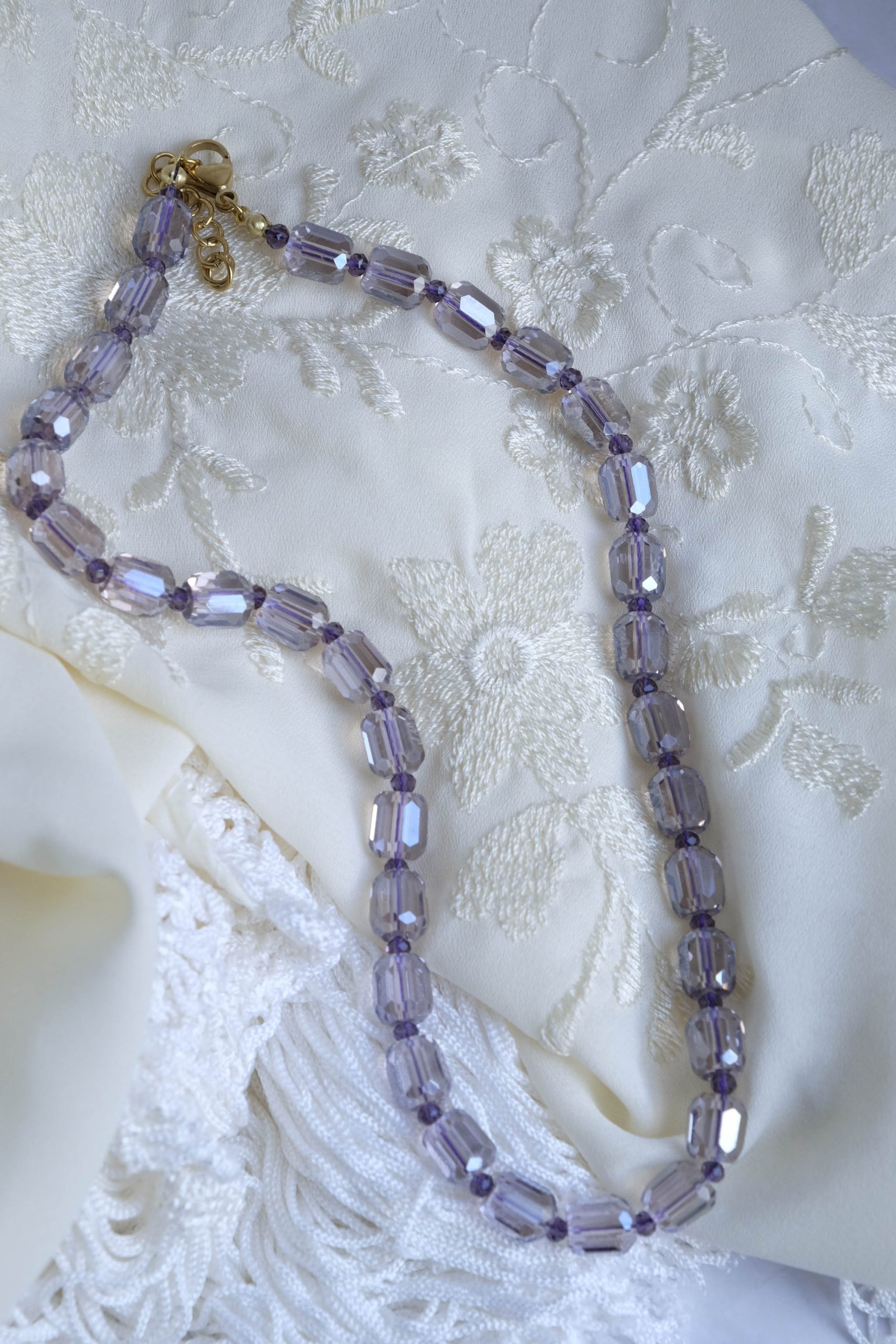 Lavender Drops Necklace Lilac Crystals Steel