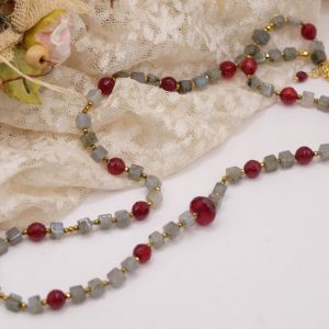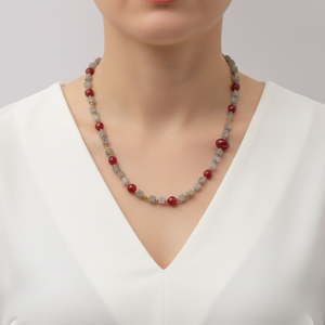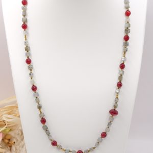 Long Necklace Labradorite Jade Burgundy Hematite Silver