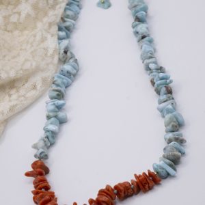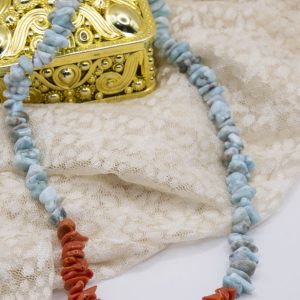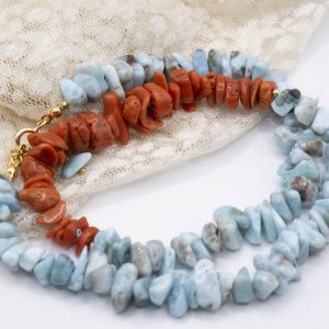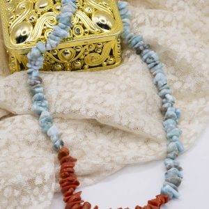 Larimar Necklace Mediterranean Coral Gold Plated Silver V9