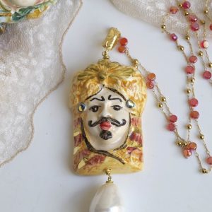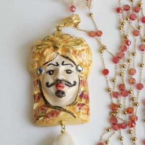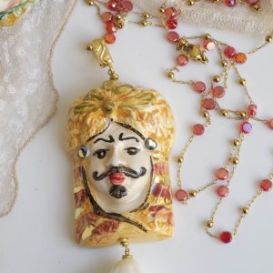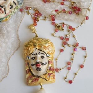 Long Necklace Moor's Head Ceramic Caltagirone Yellow