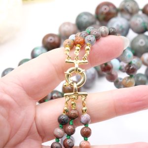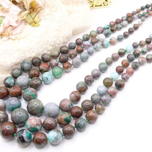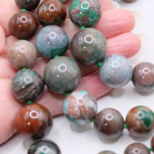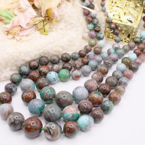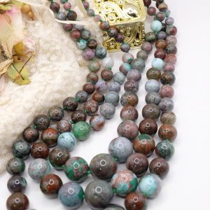 Precious and elegant handcrafted multi-strand necklace (3 strands) in magnificent chrysocolla with unique and incomparable shades in spheres ranging from 20 to 7 mm