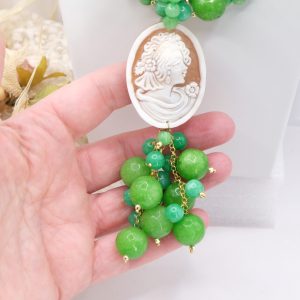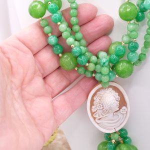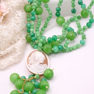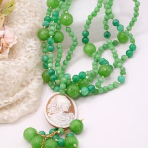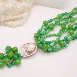 Collana Multifilo Giada Verde Cammeo di Torre del Greco