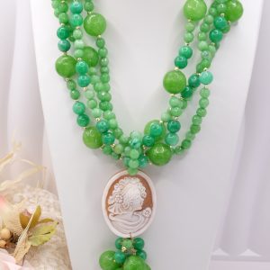Collana Multifilo Giada Verde Cammeo di Torre del Greco