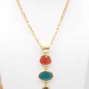 Gold-Plated Brass Necklace with Detachable Cat's Eye Pendant