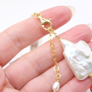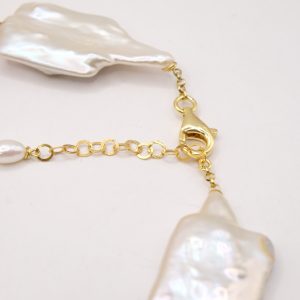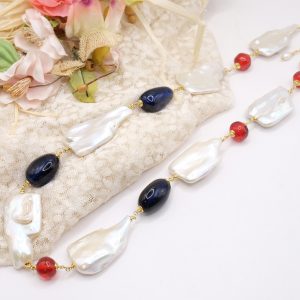 Large Natural Baroque Pearl Necklace with Dominican Amber and 925 Silver