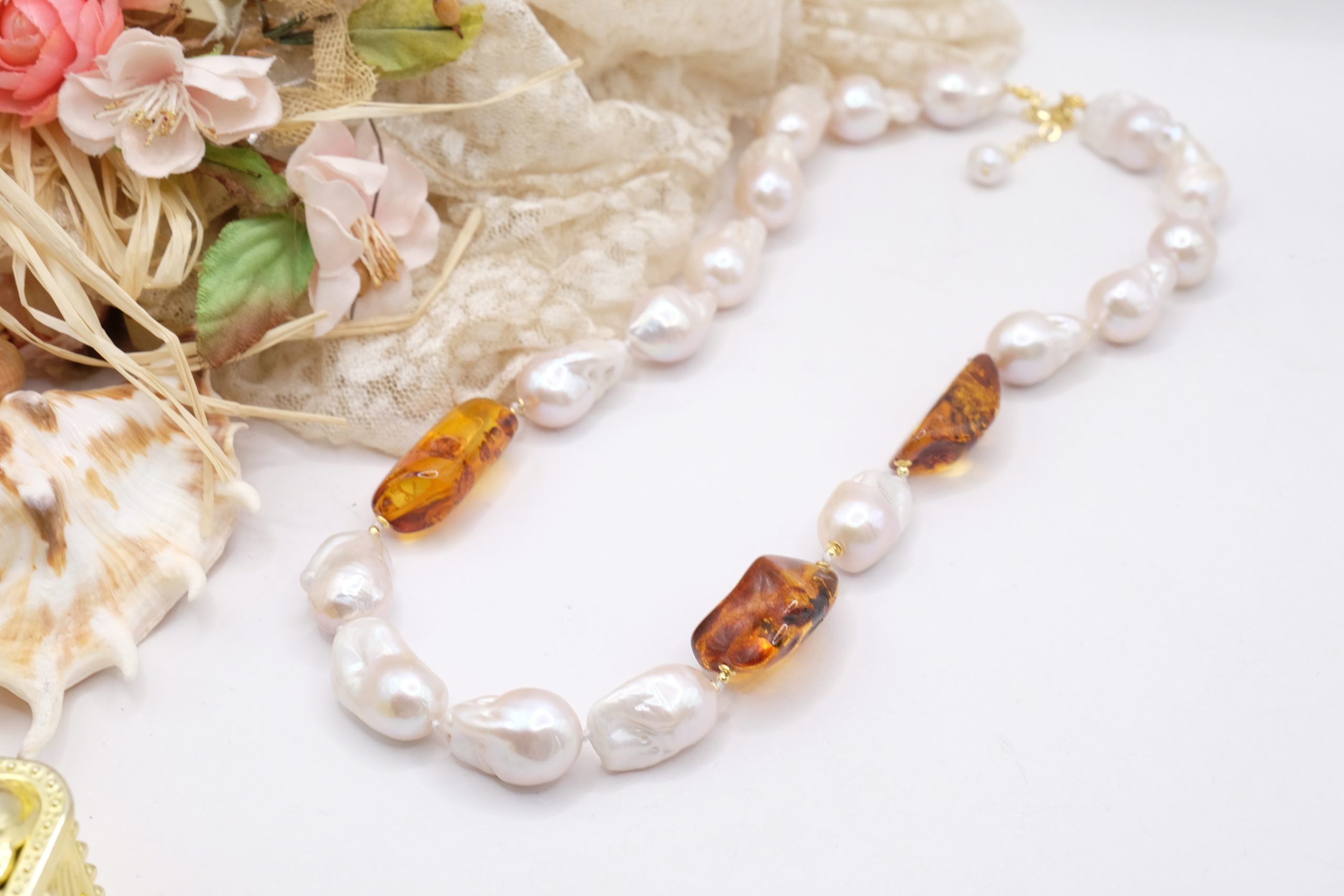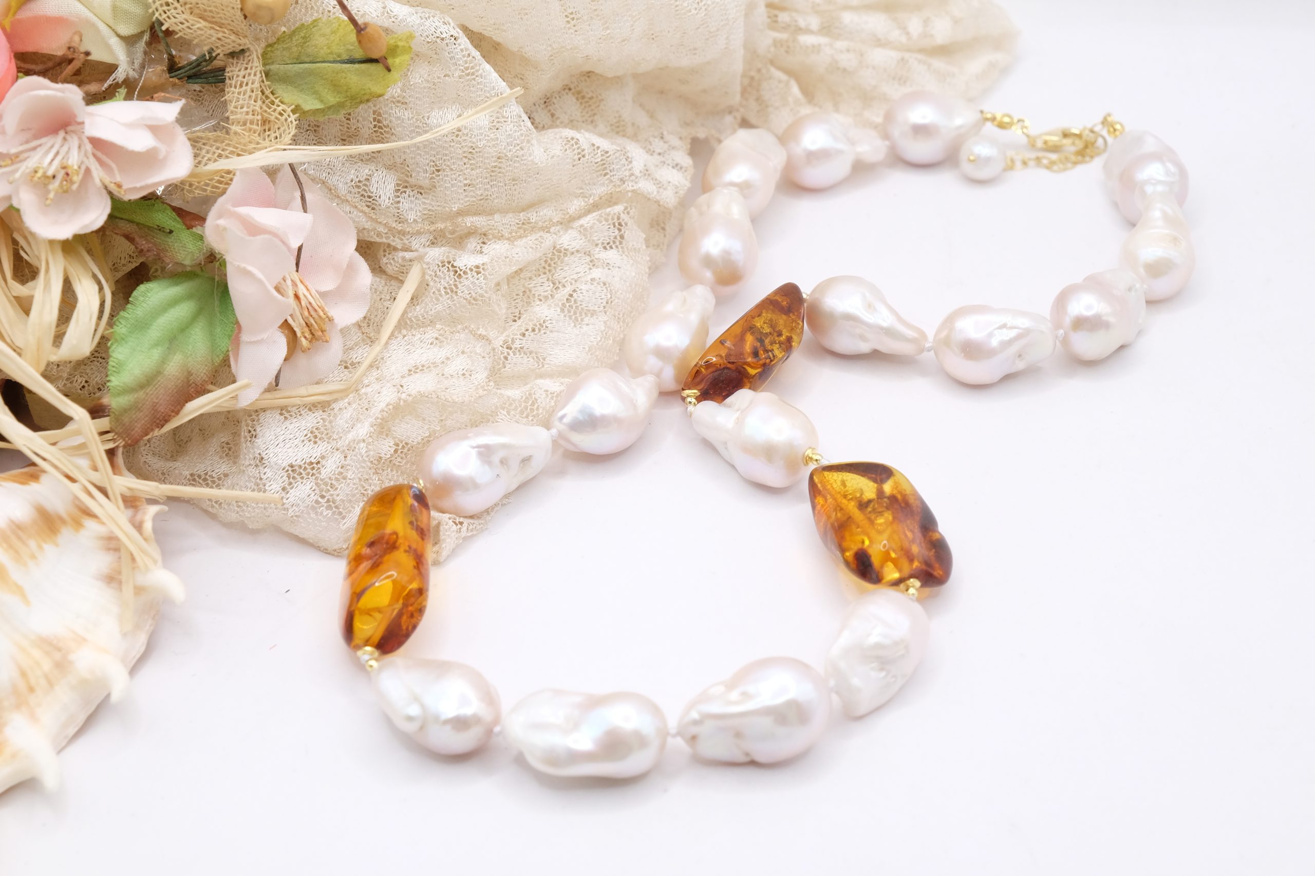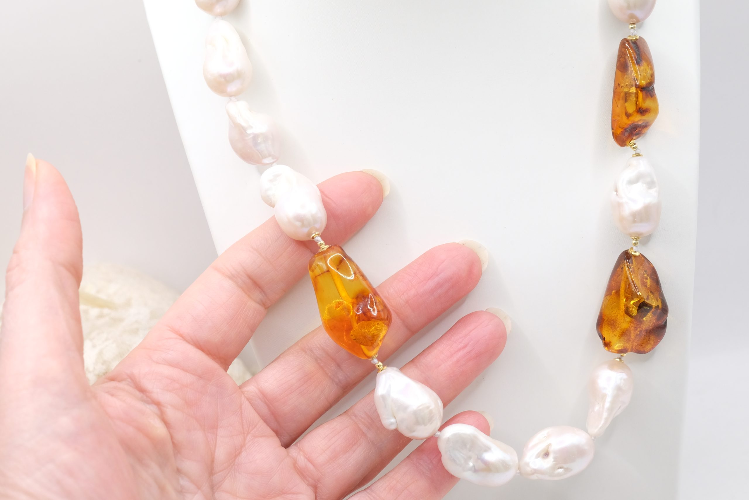 Material: Natural Pearls and Baltic Amber