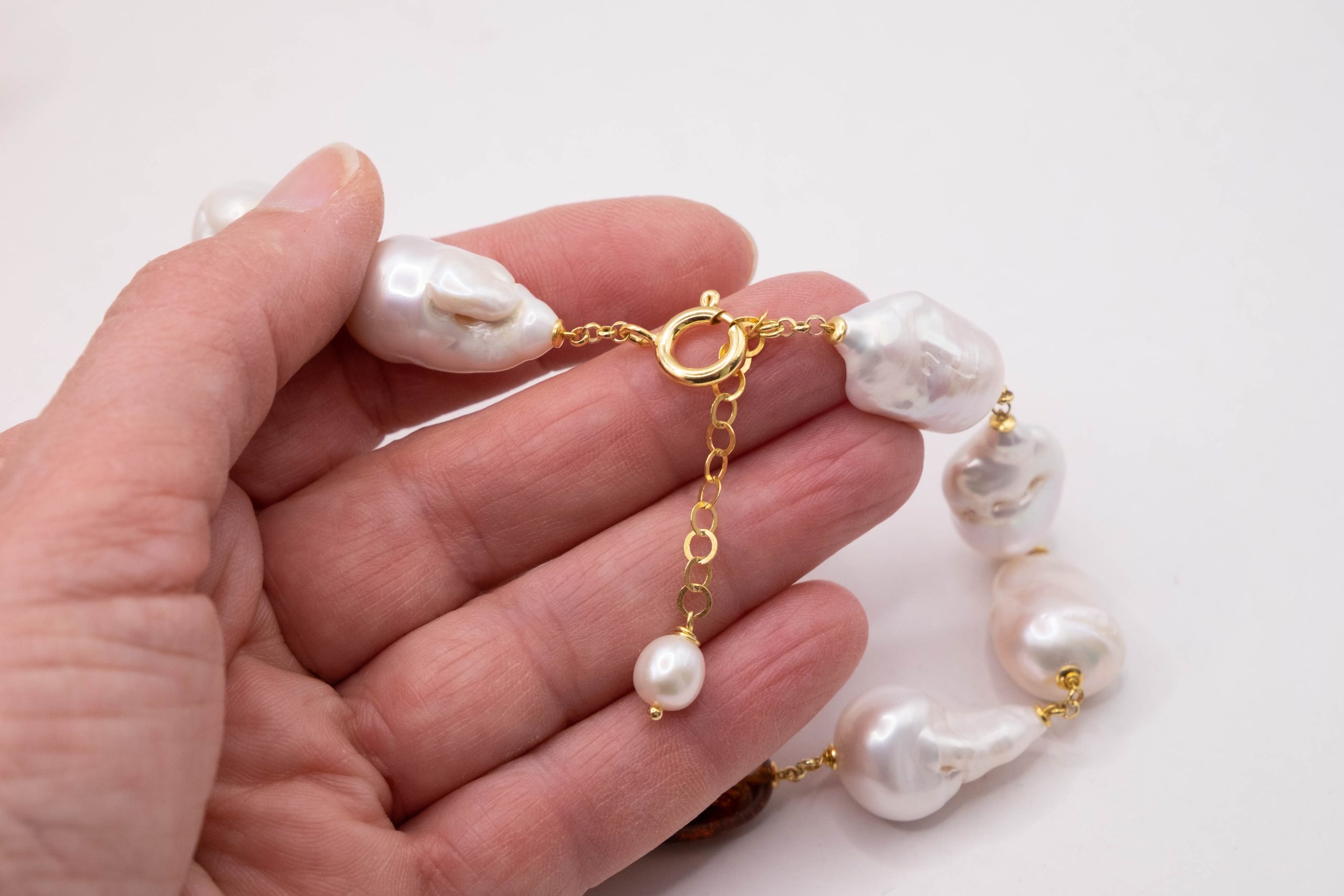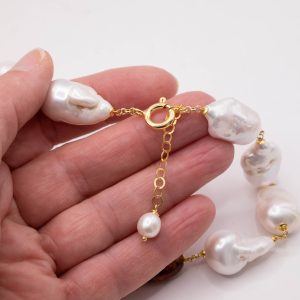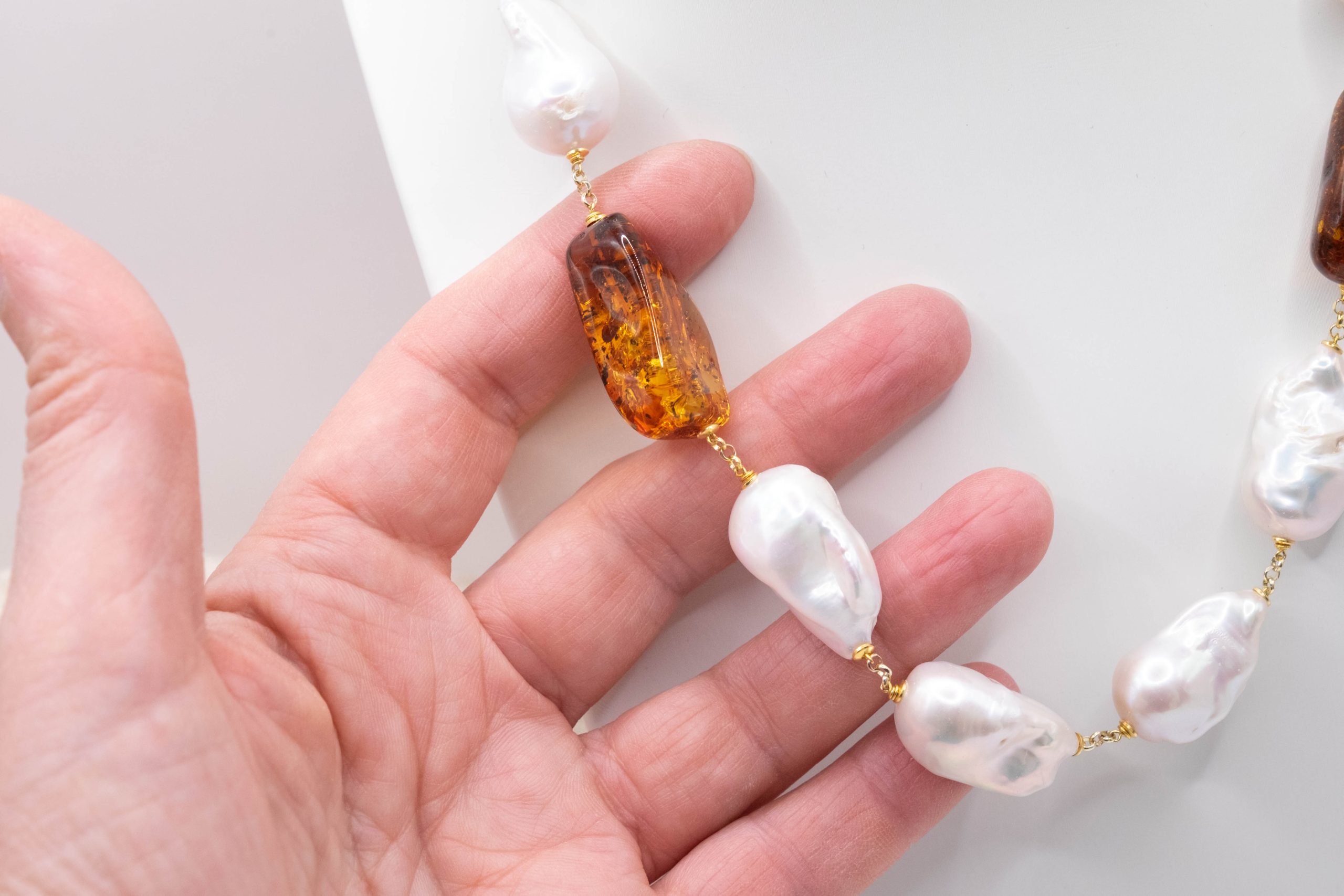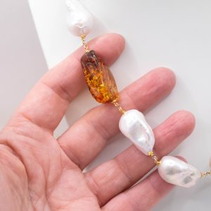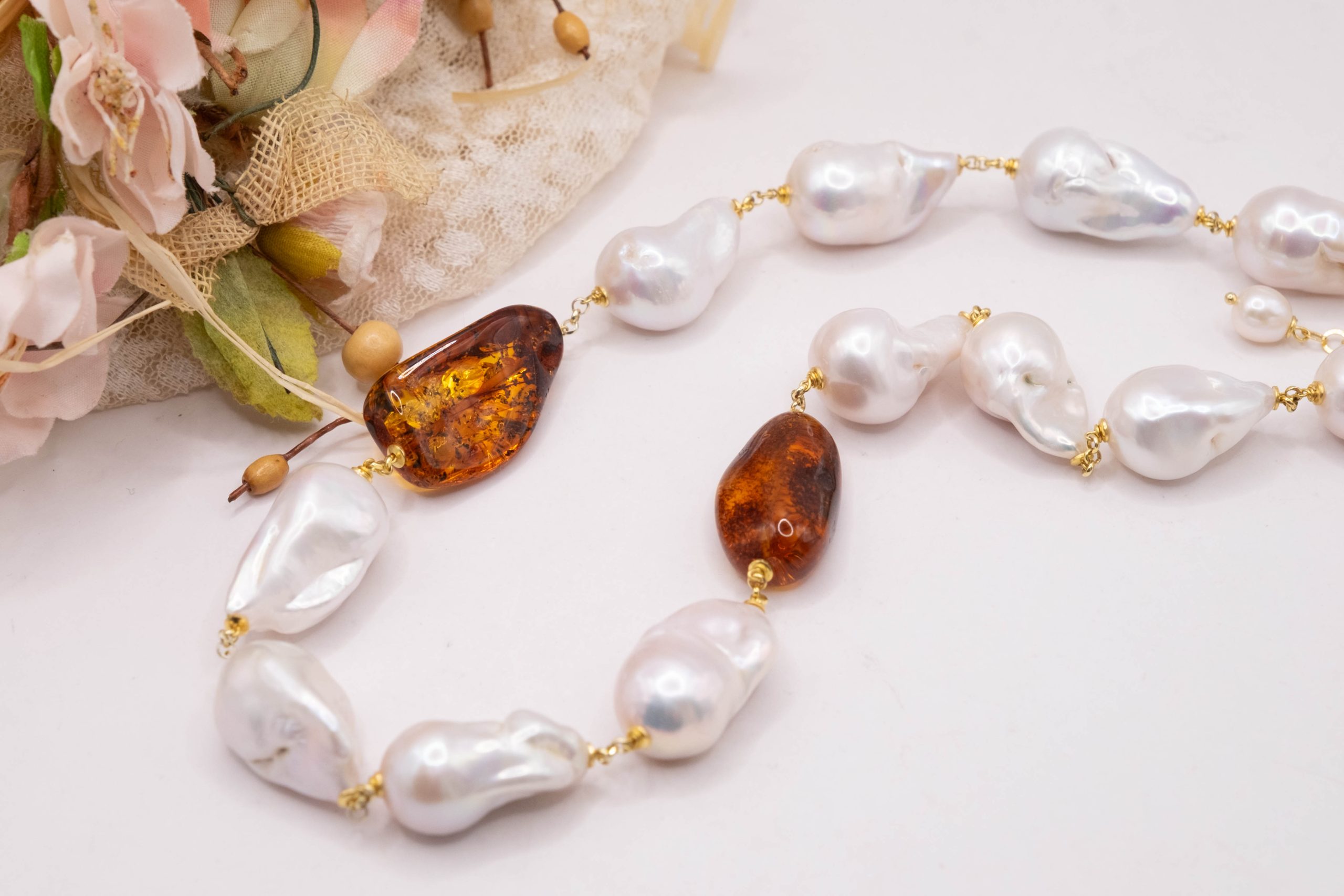 Natural Baroque Pearl Necklace with Baltic Amber and 925 Silver