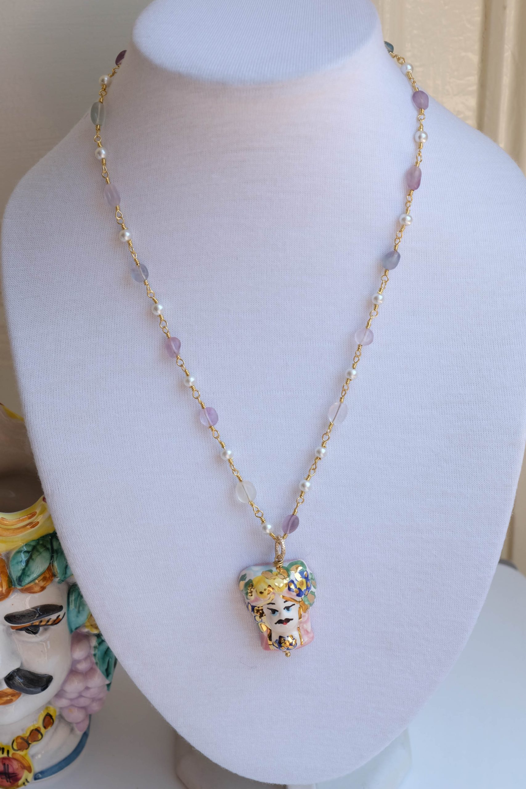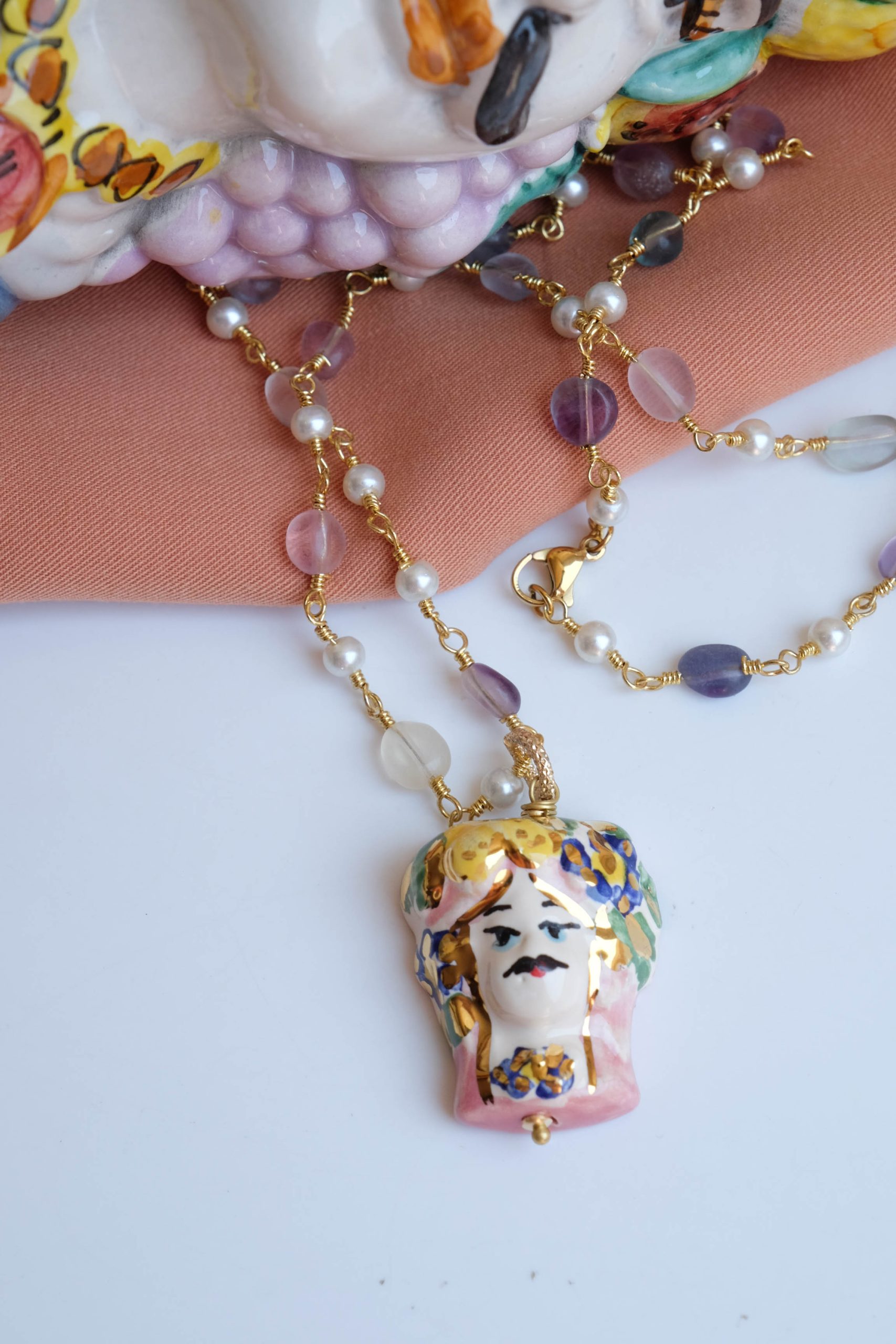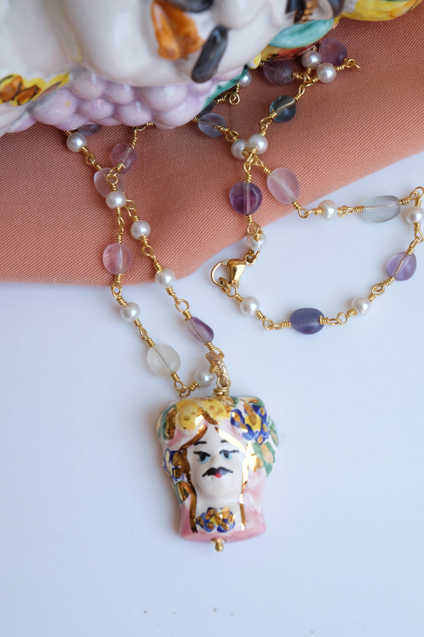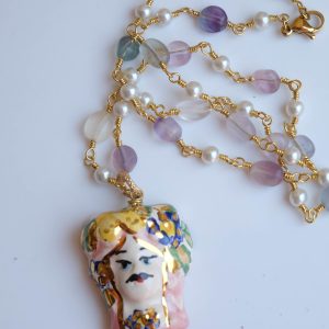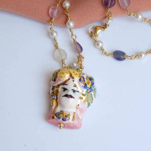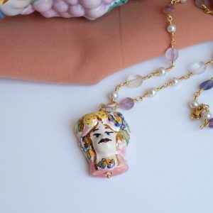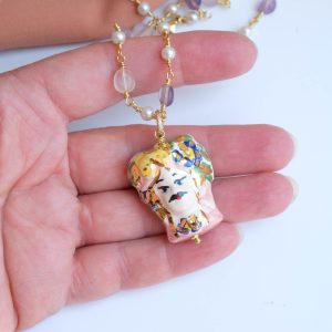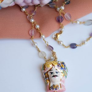 Caltagirone ceramic Testa di Moro rosary necklace