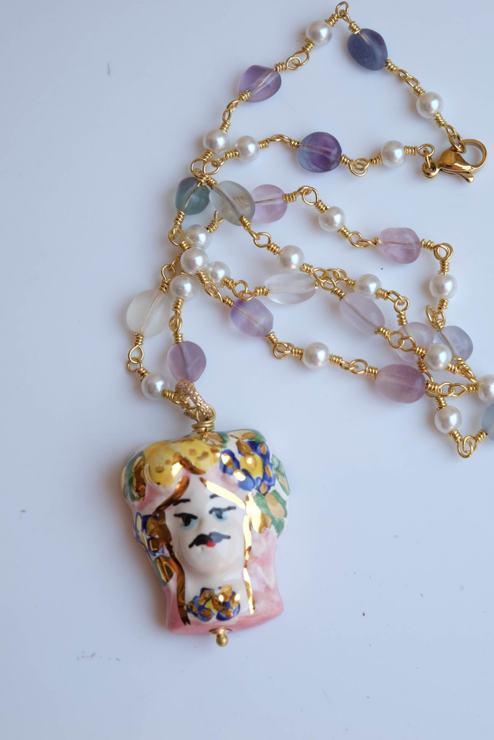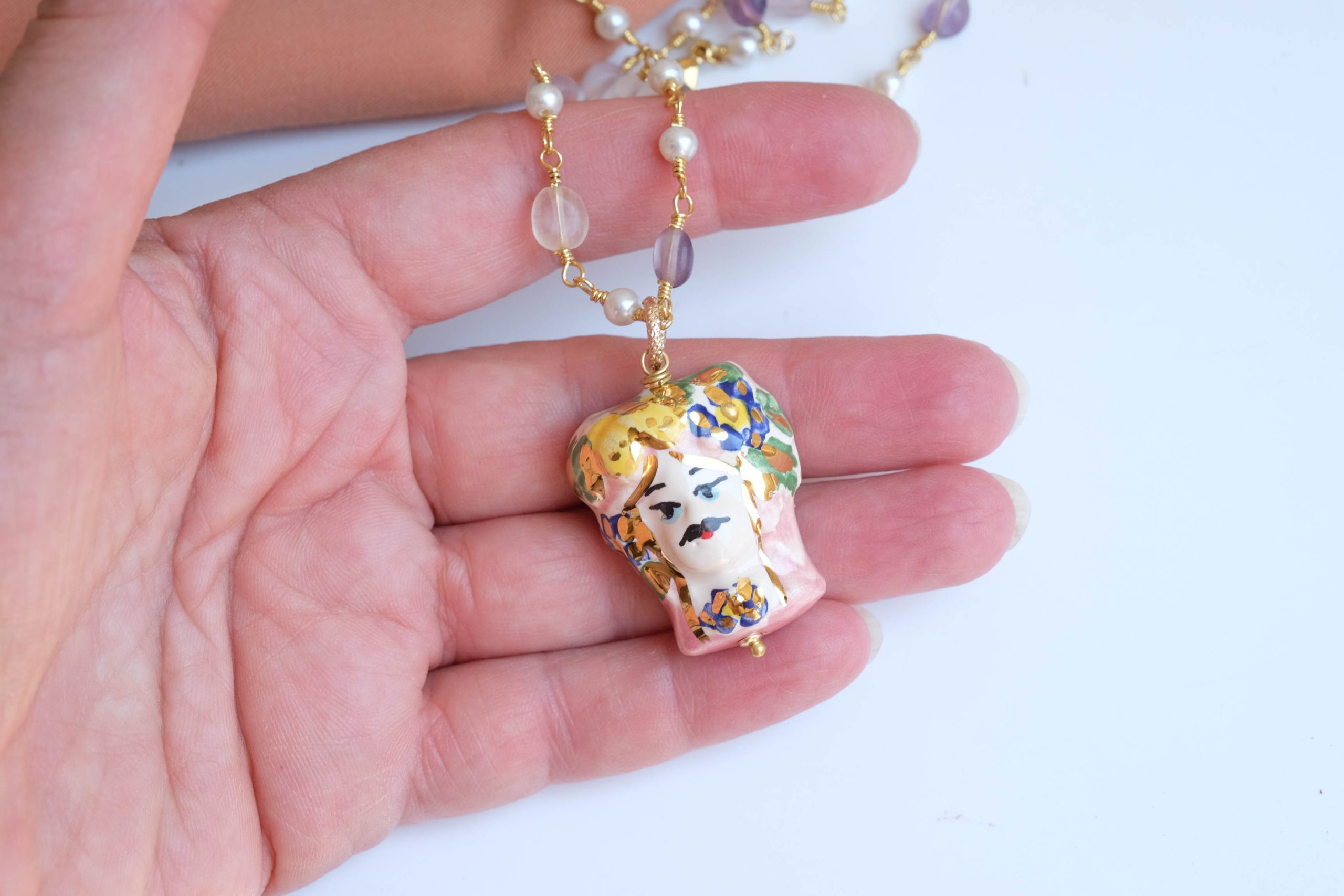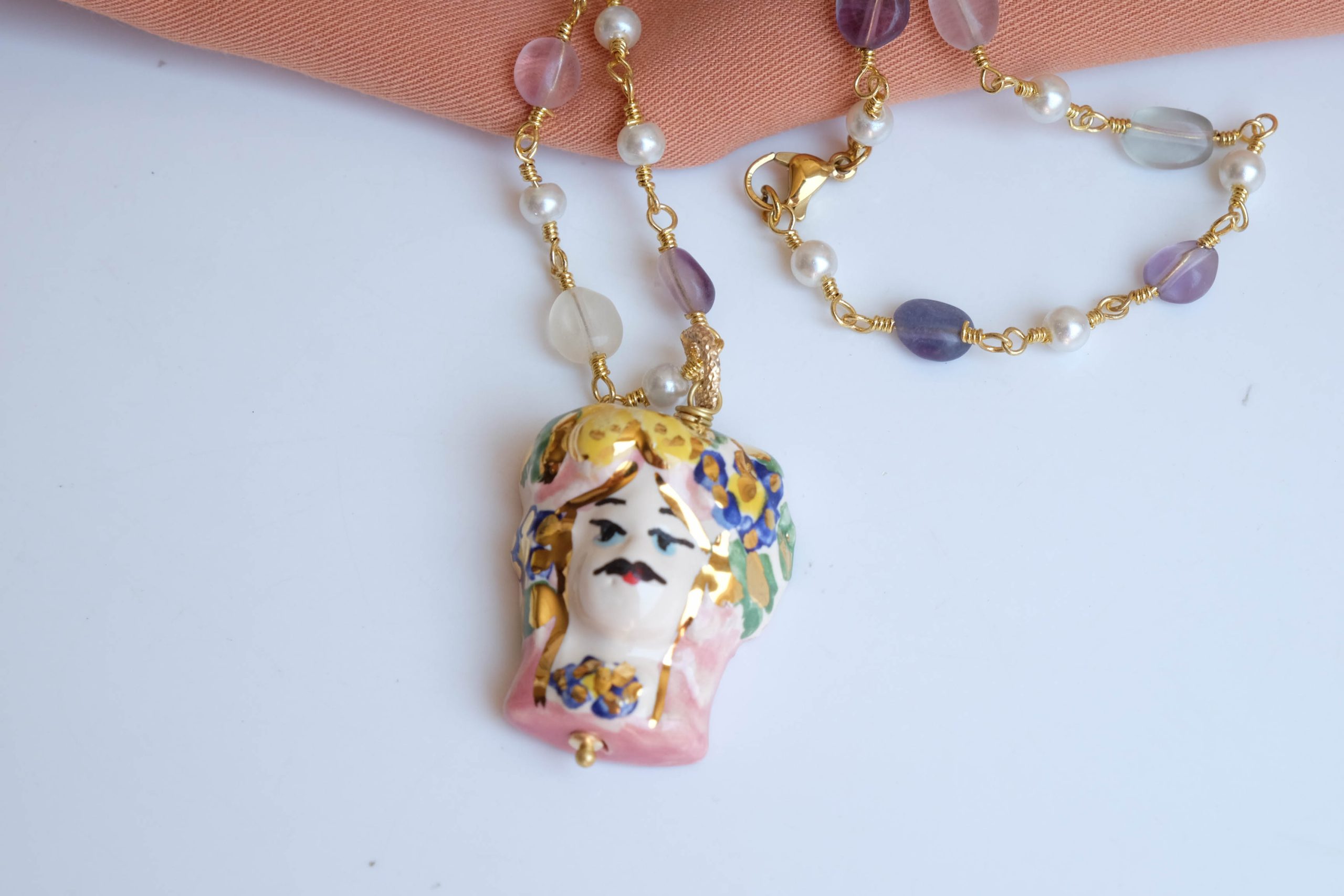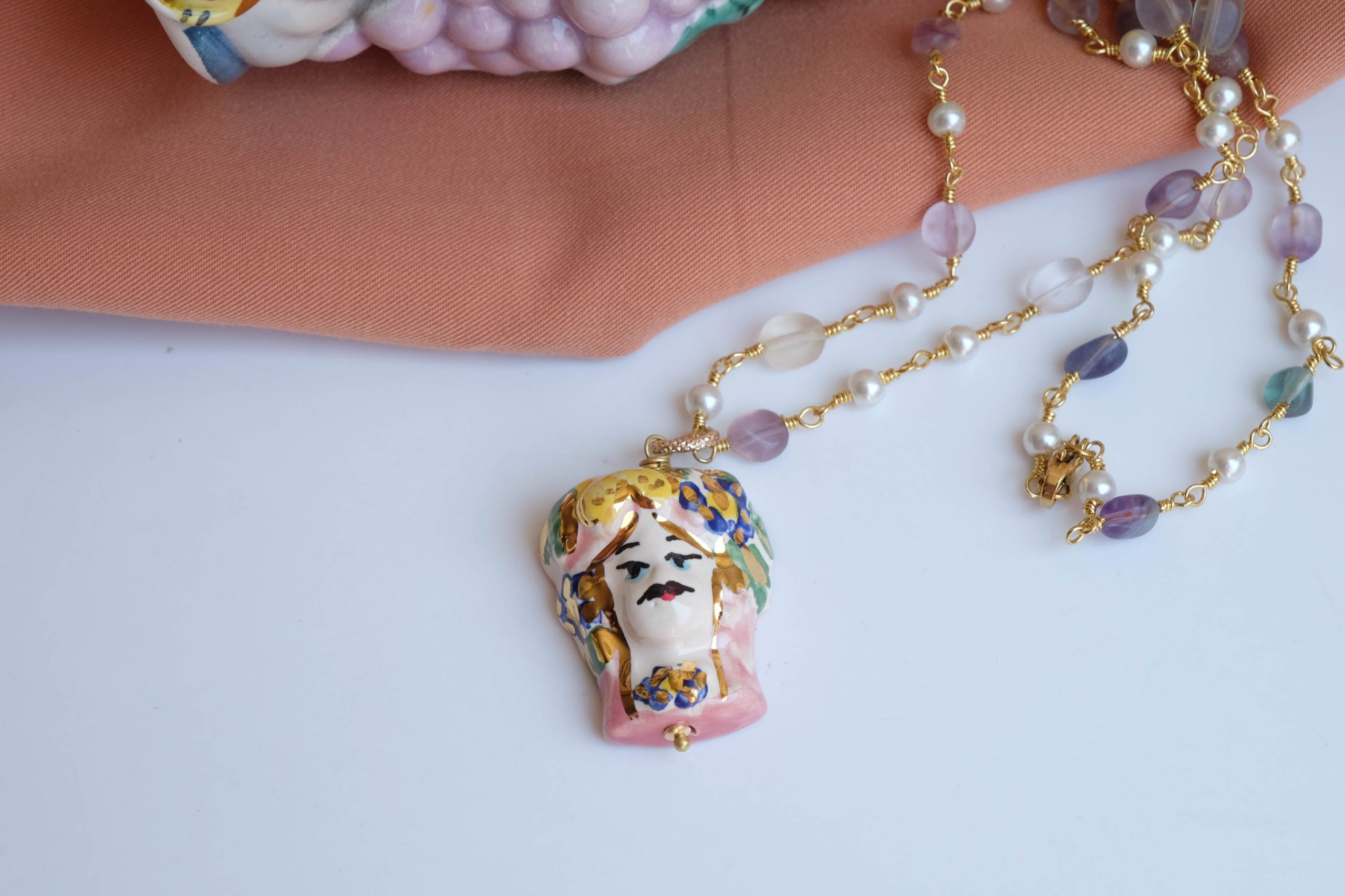 Caltagirone ceramic Testa di Moro rosary necklace