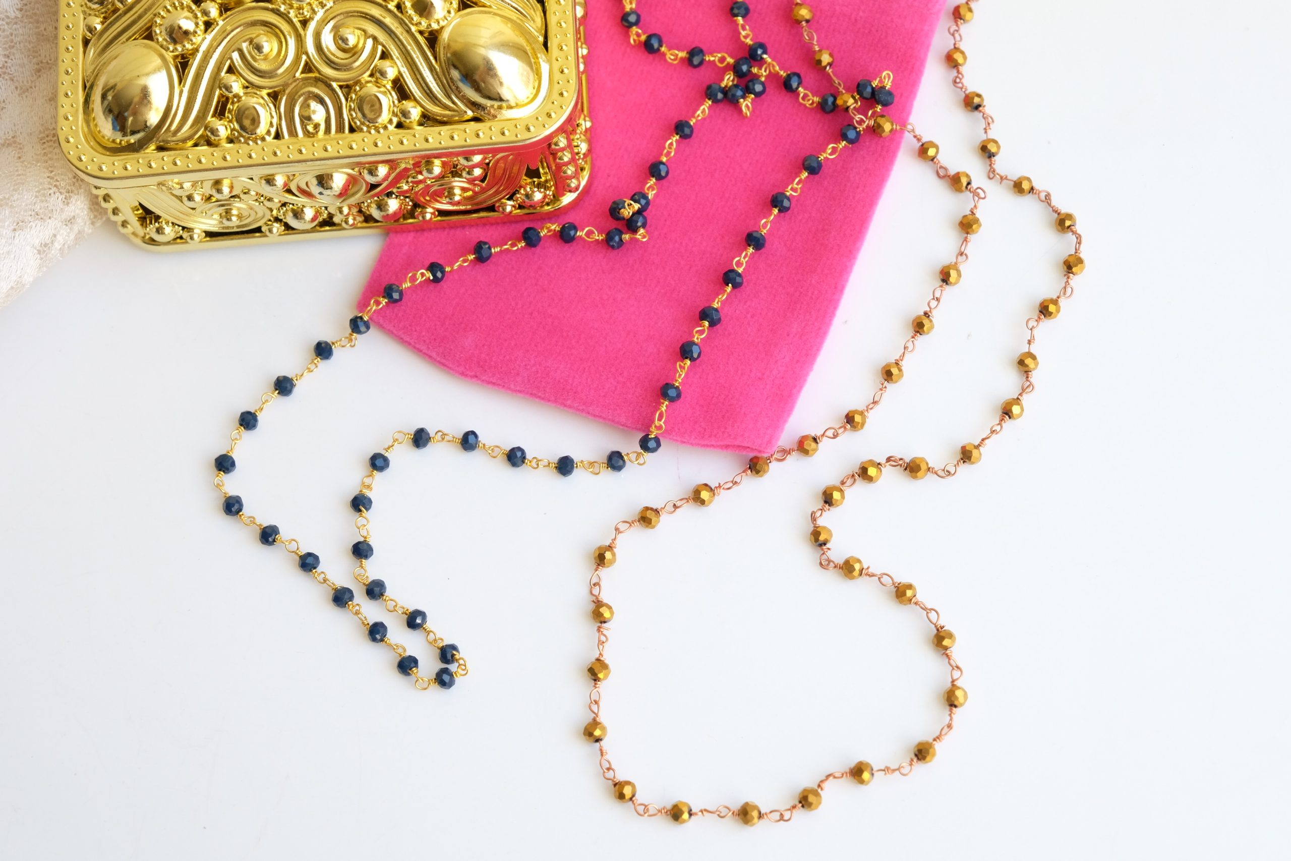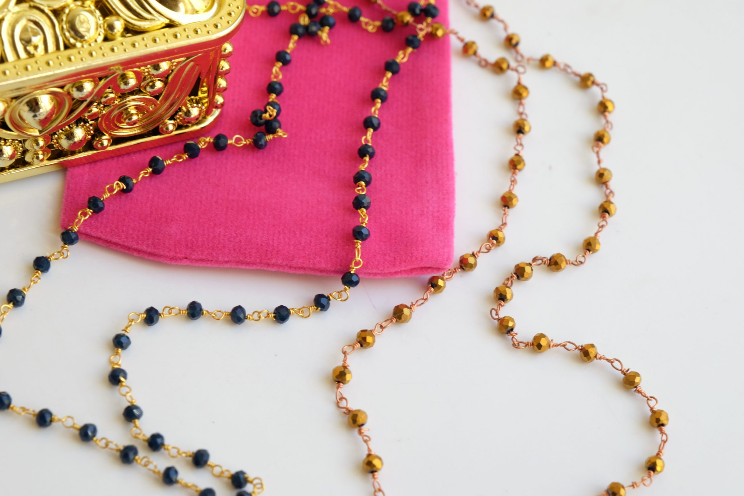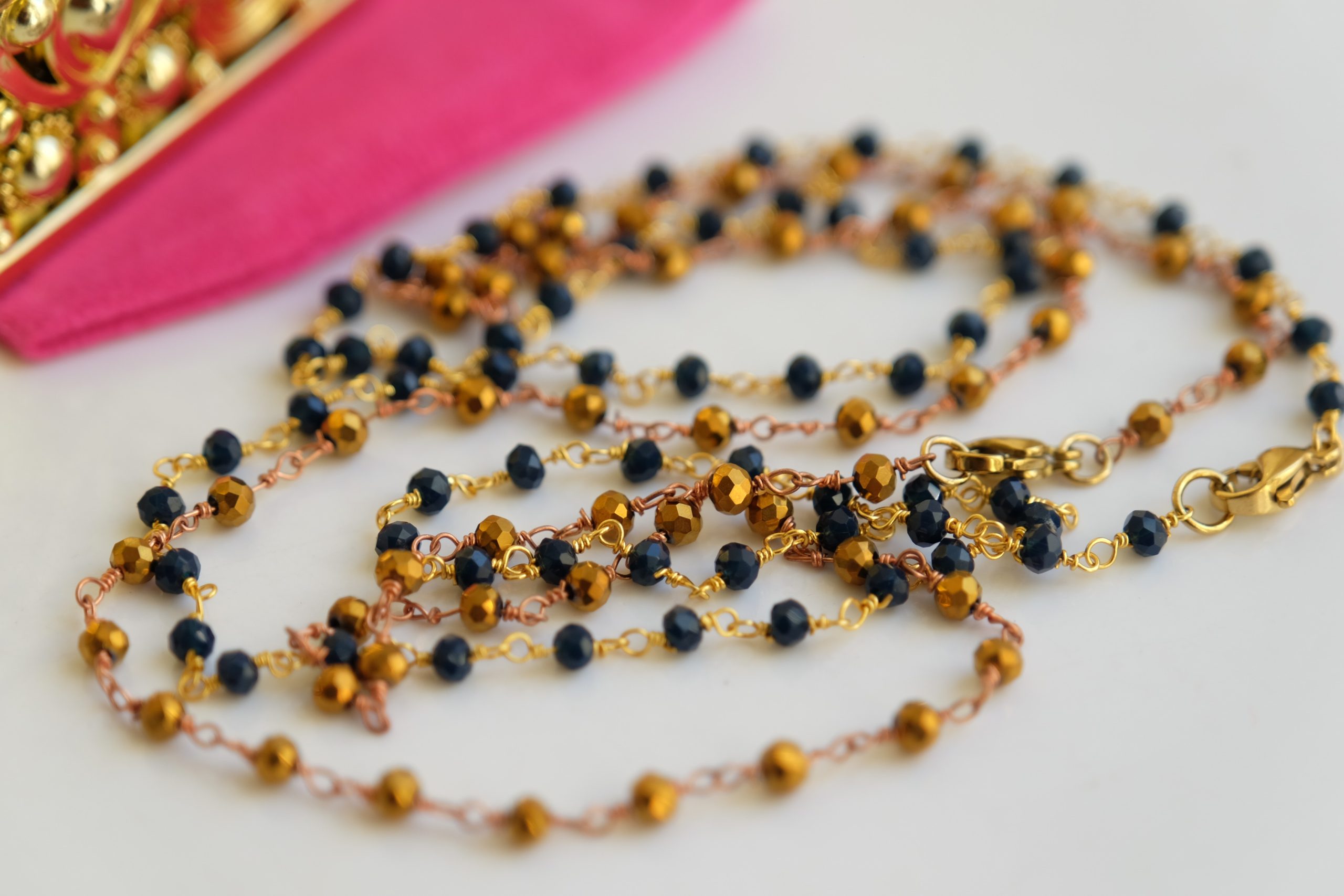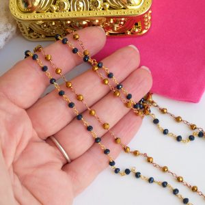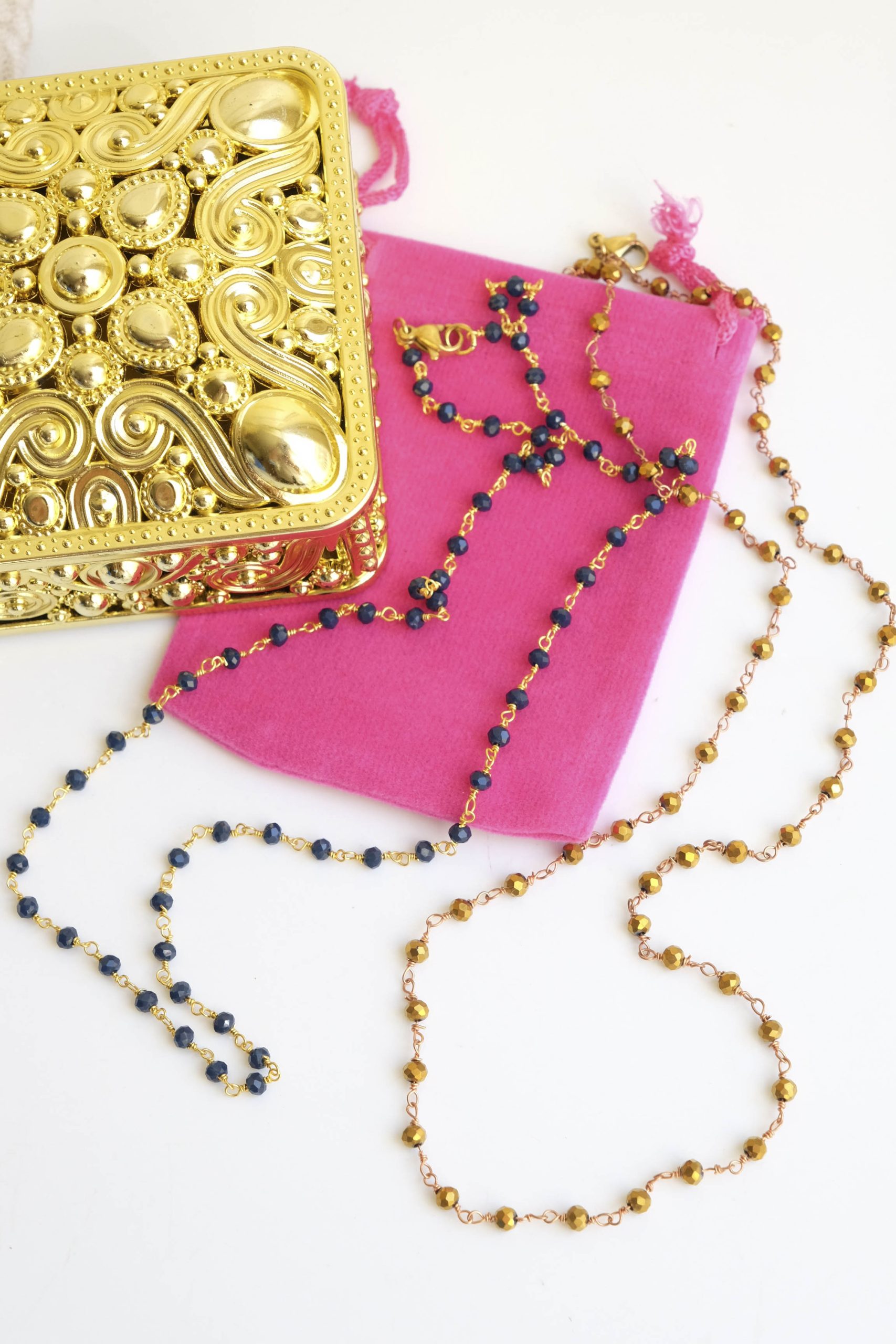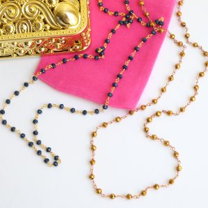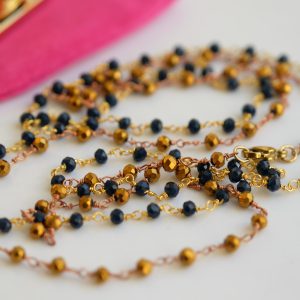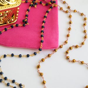 Unisex Rosary Necklace Blue or Gold Crystals