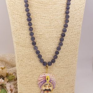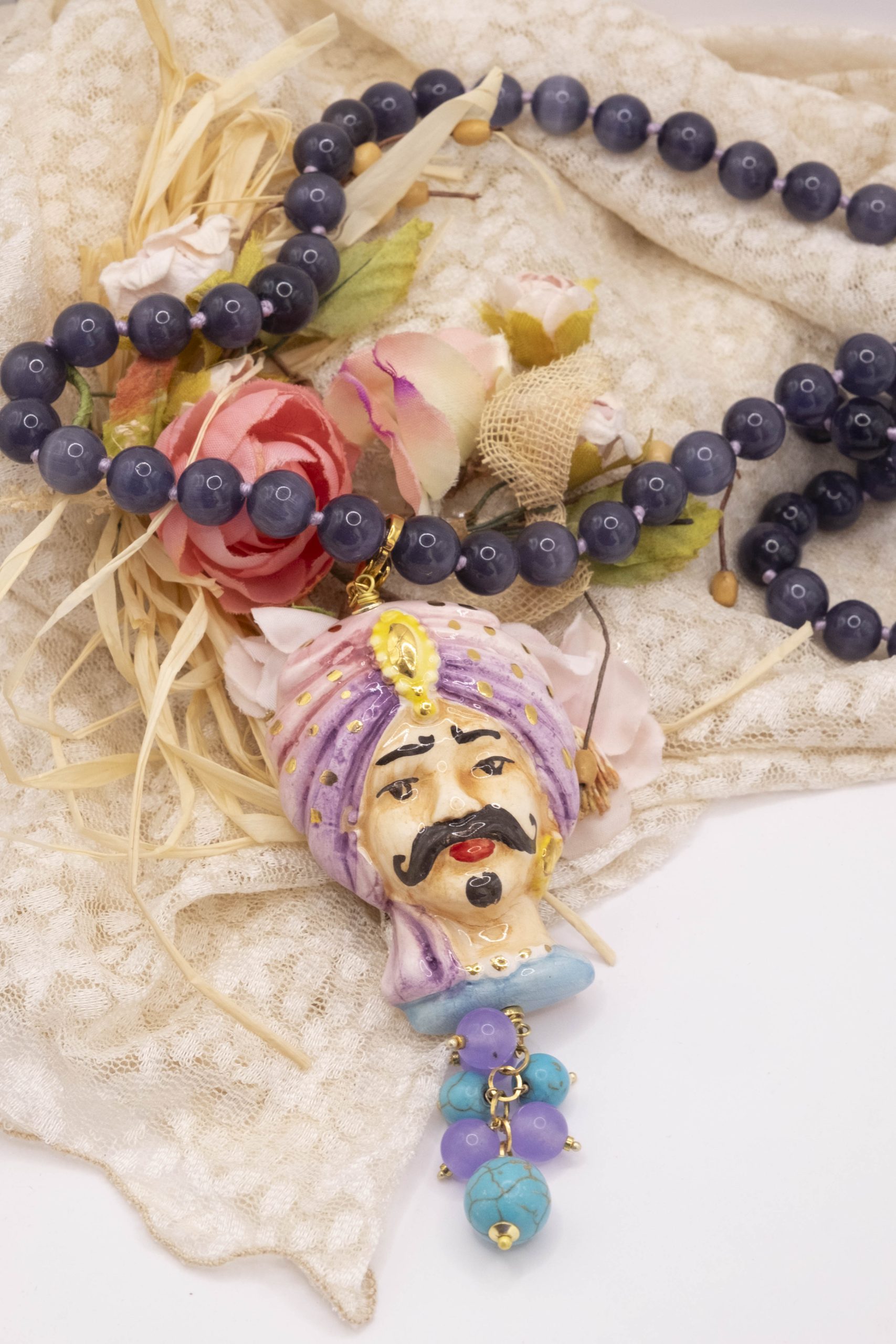Moor's Head Necklace in Ceramic with Purple Cat's Eye