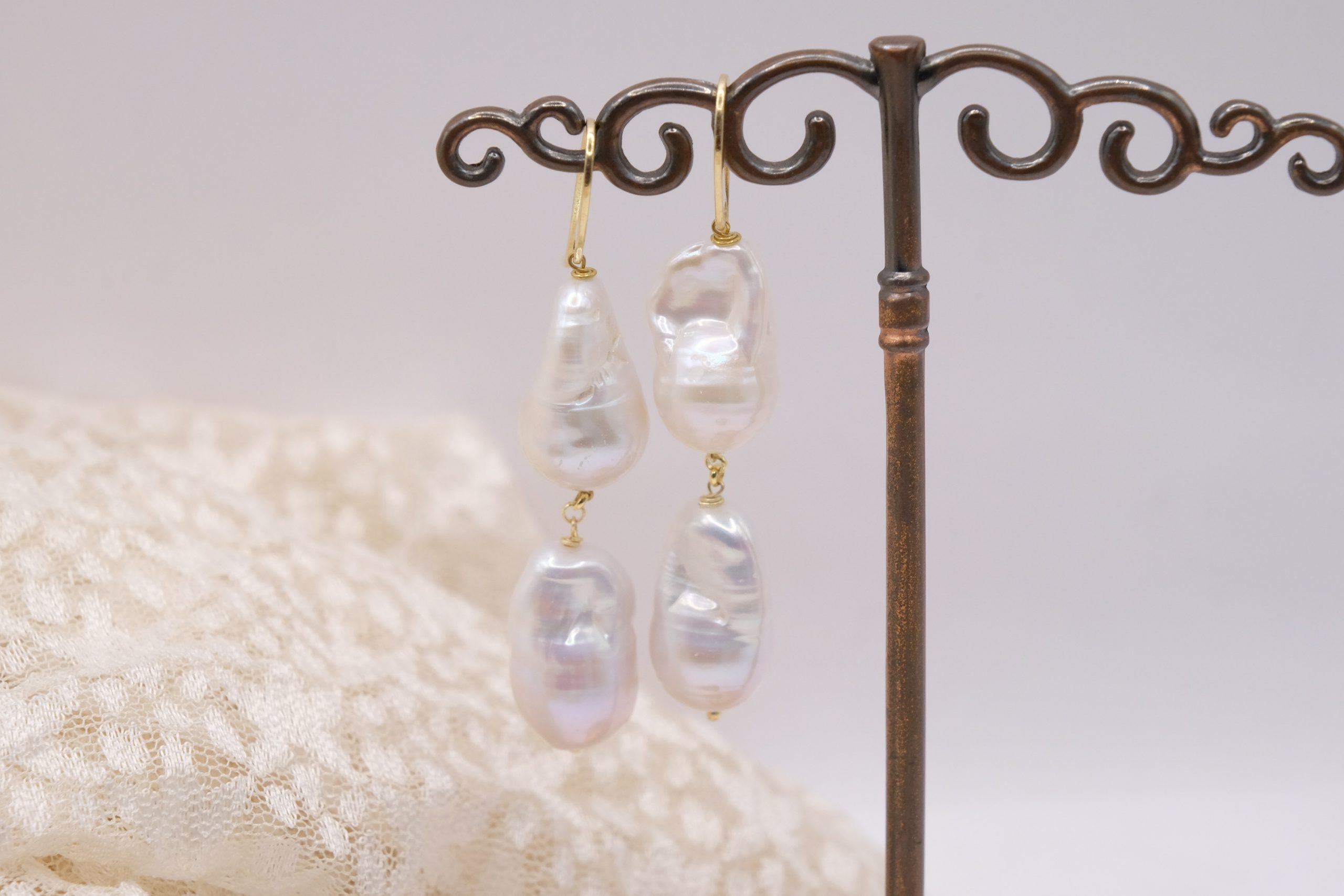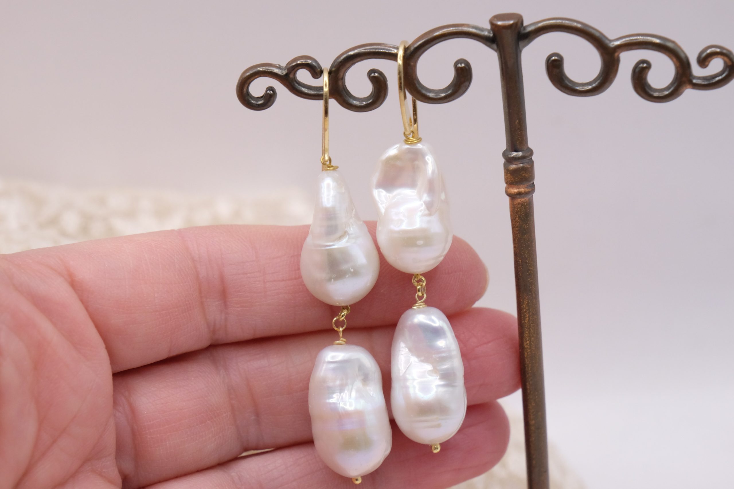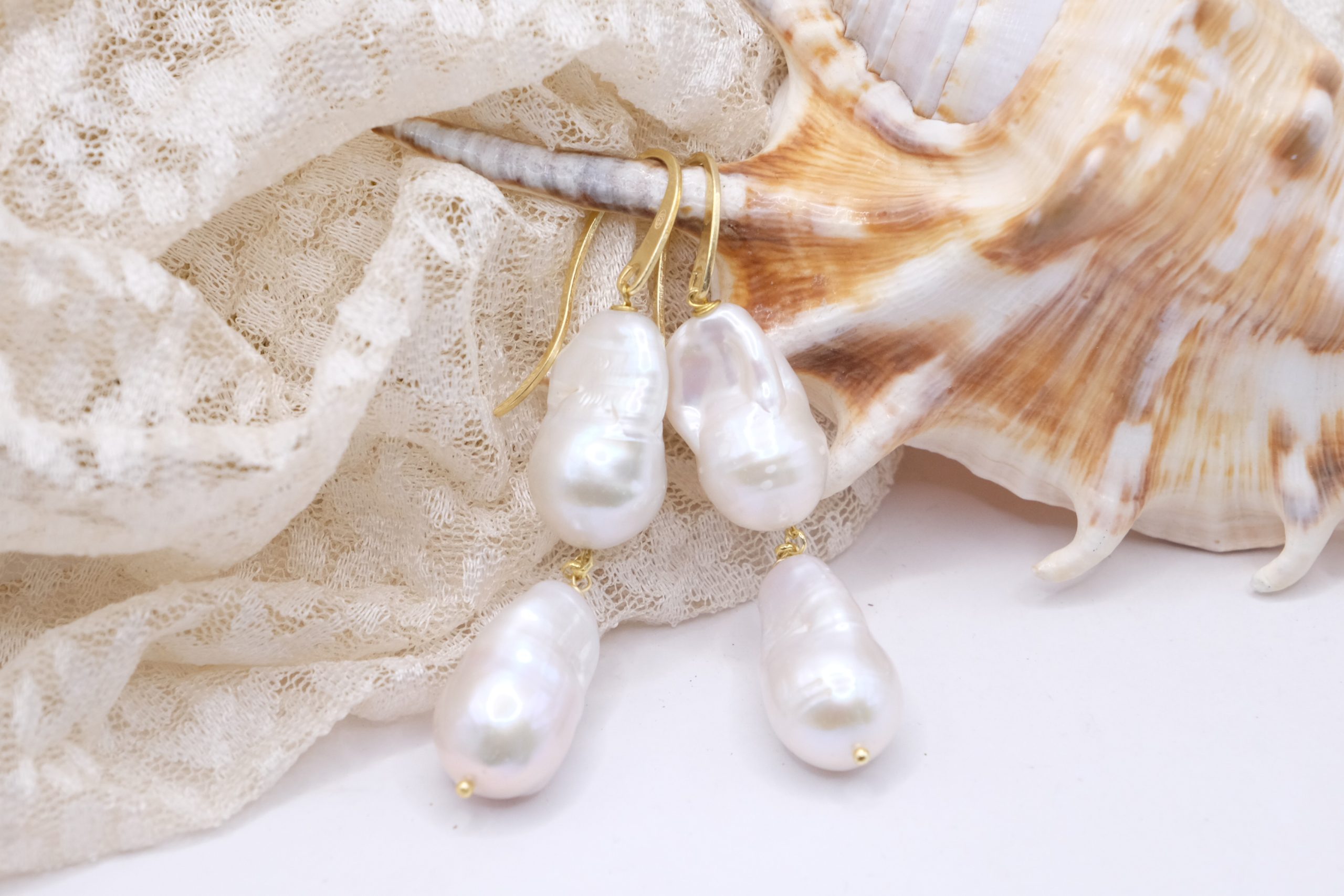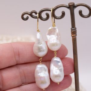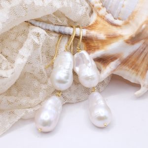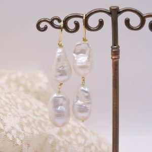 Earrings with large, smooth, and bright baroque pearls