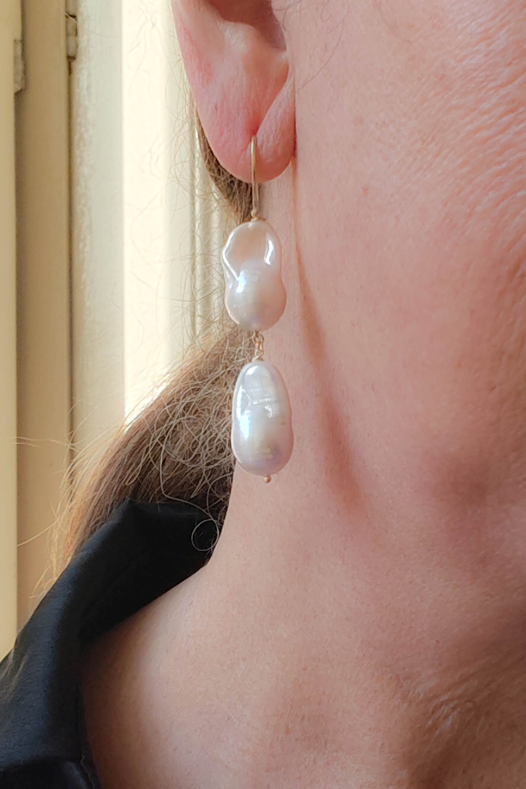 These earrings feature large smooth and naturally luminous baroque pearls, each with its own unique shape that enhances the femininity and character of the wearer 🤍✨