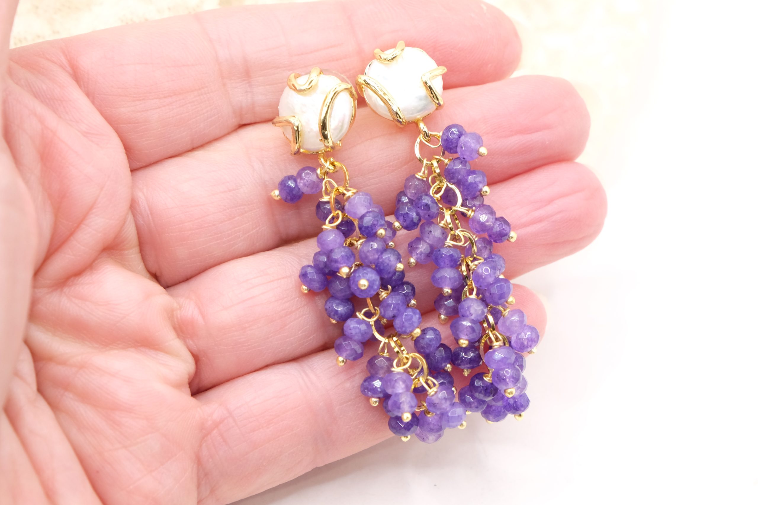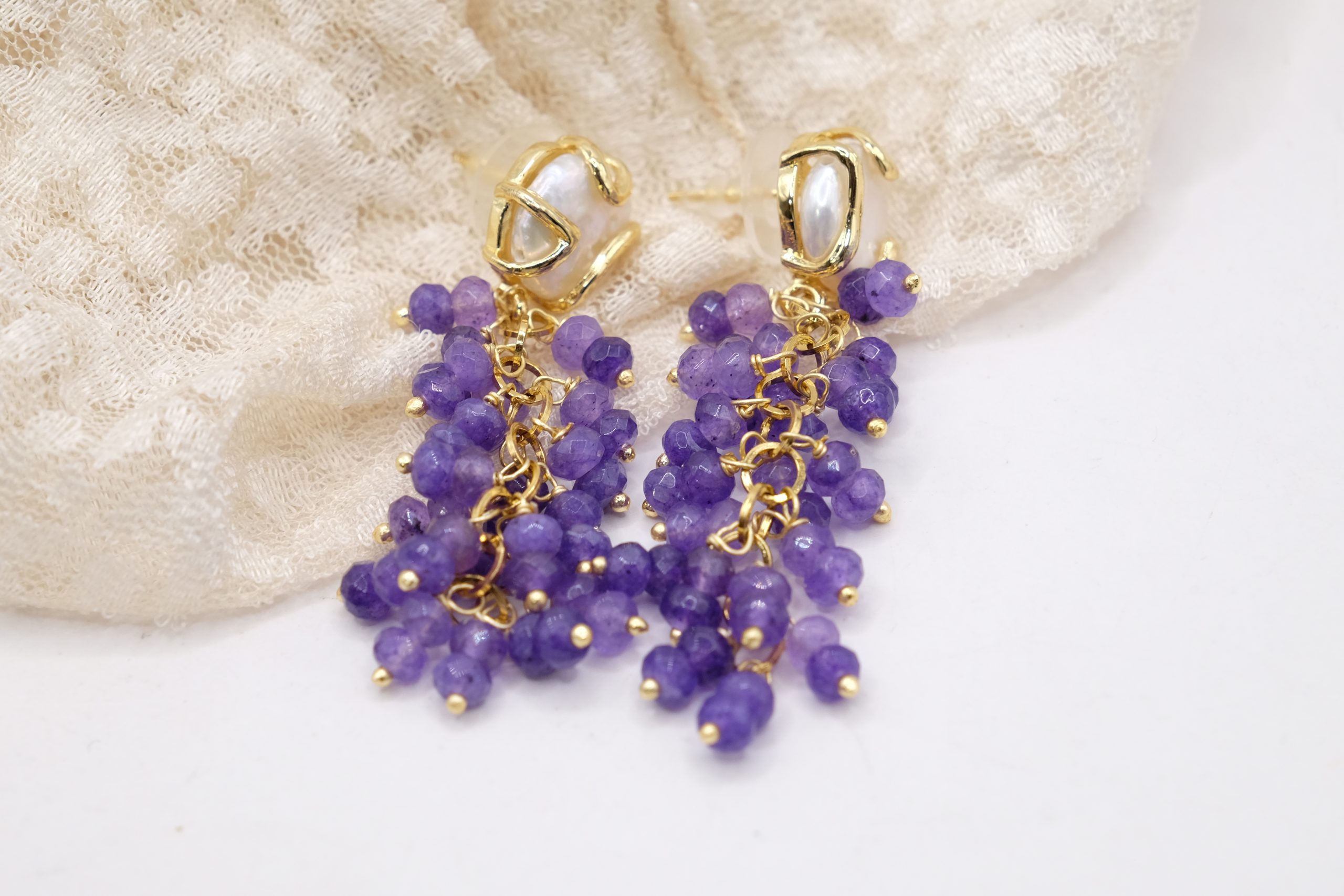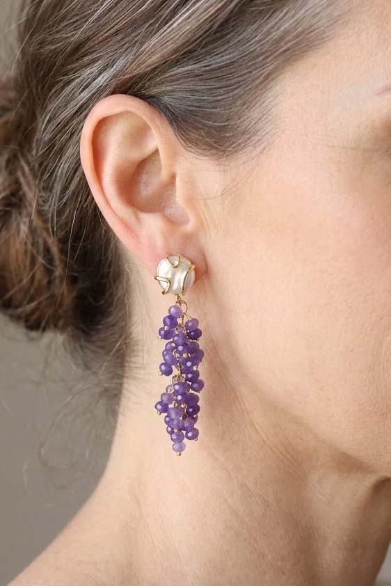 Handcrafted earrings with a refined charm, made with splendid bunches of amethyst with intense and luminous shades. 💜