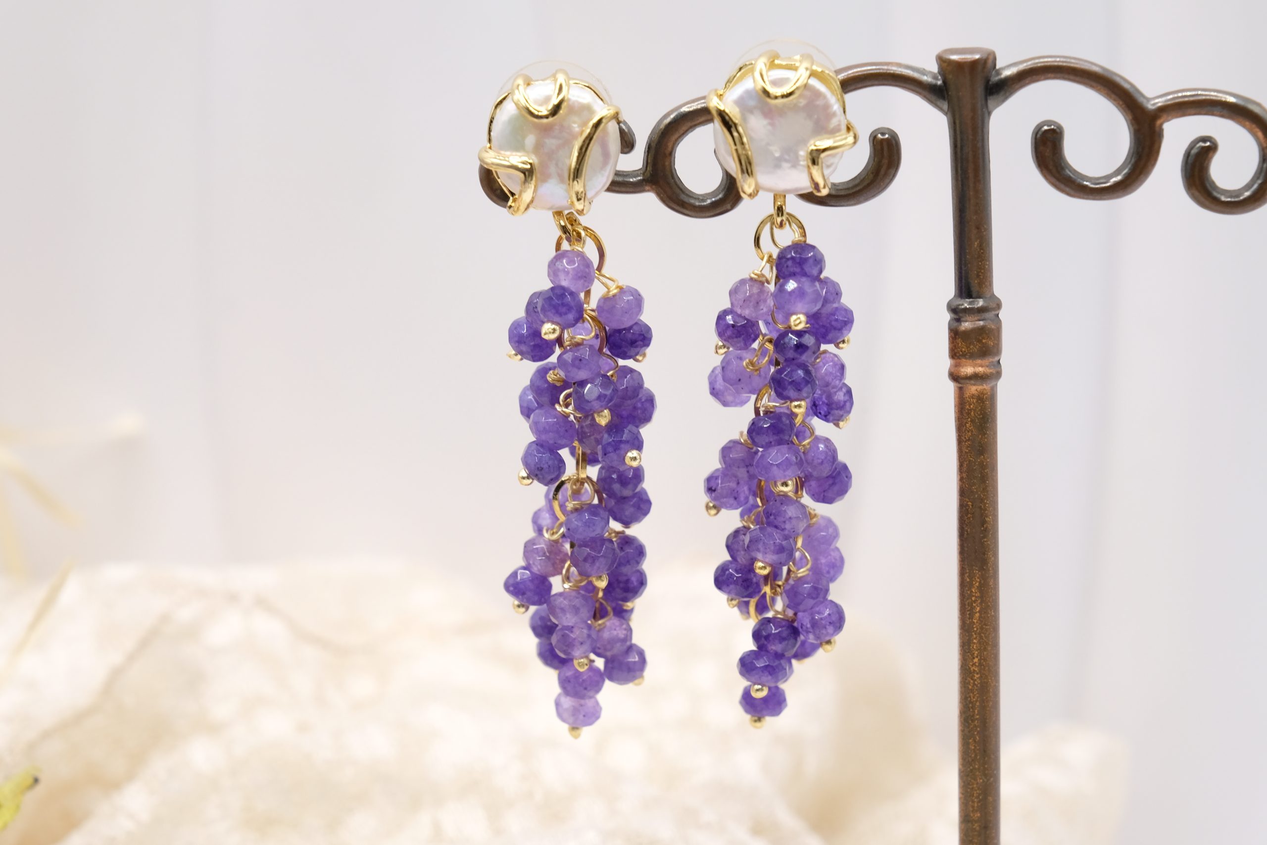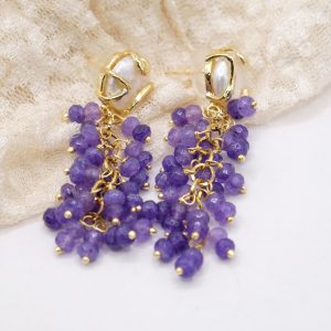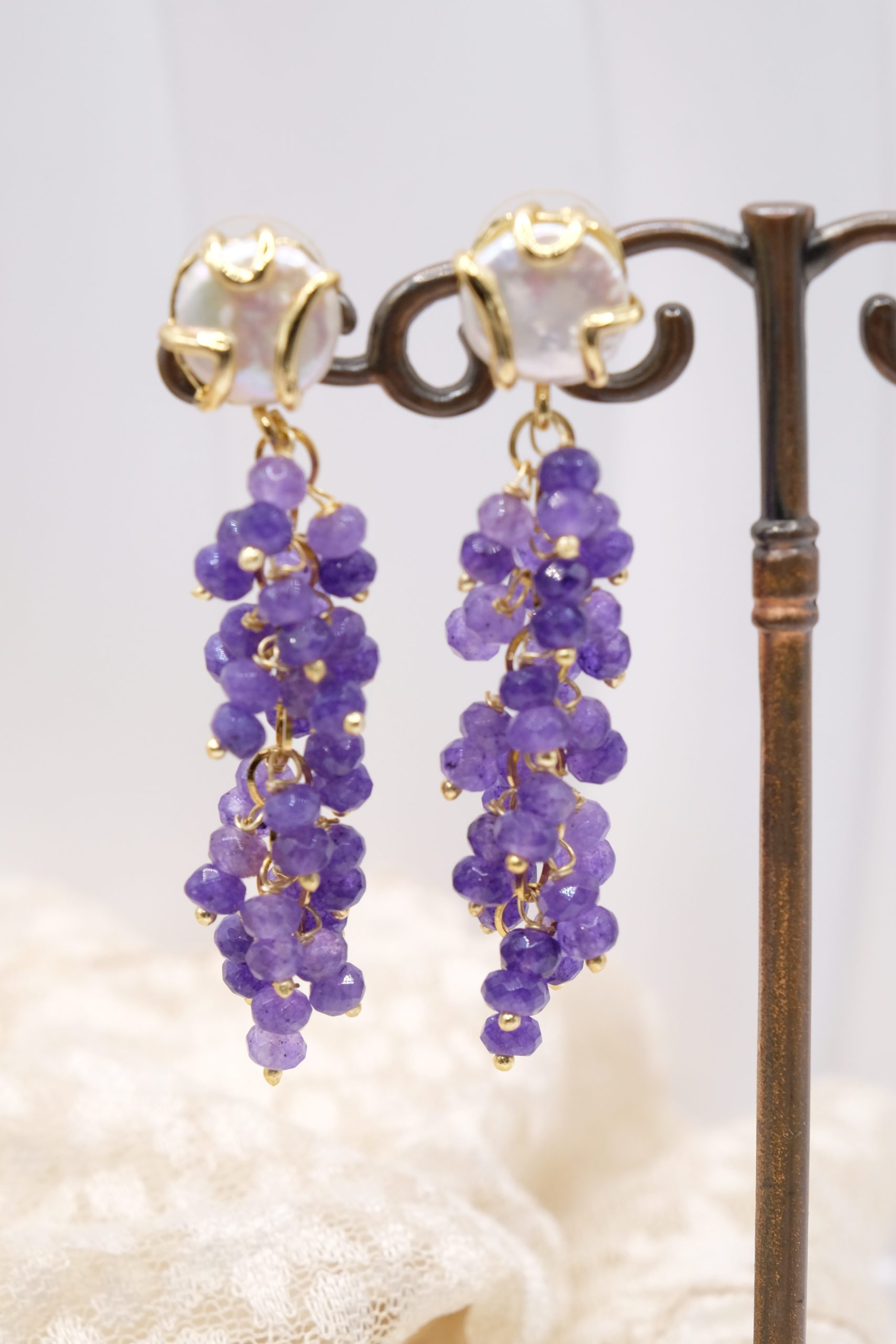 Handmade Amethyst Pearl Cluster Steel Earrings