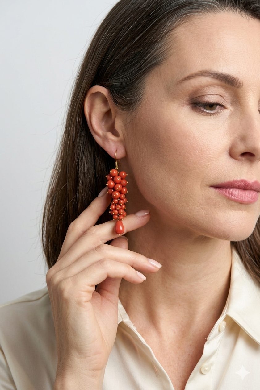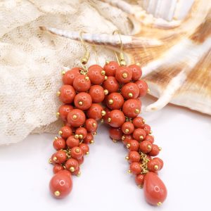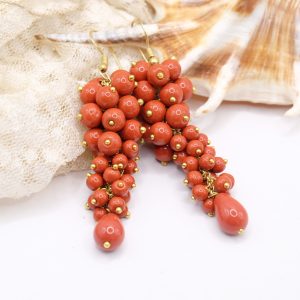Orecchini artigianali a grappolo con pasta di Corallo 💙✨