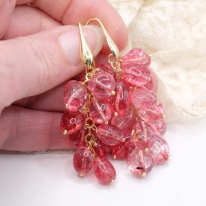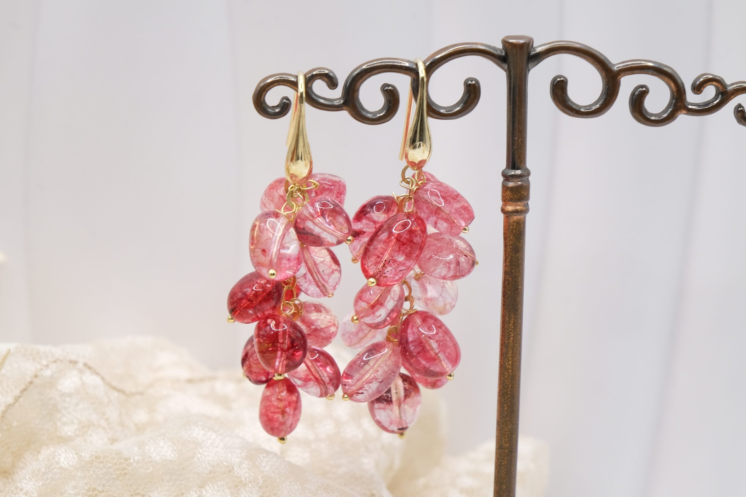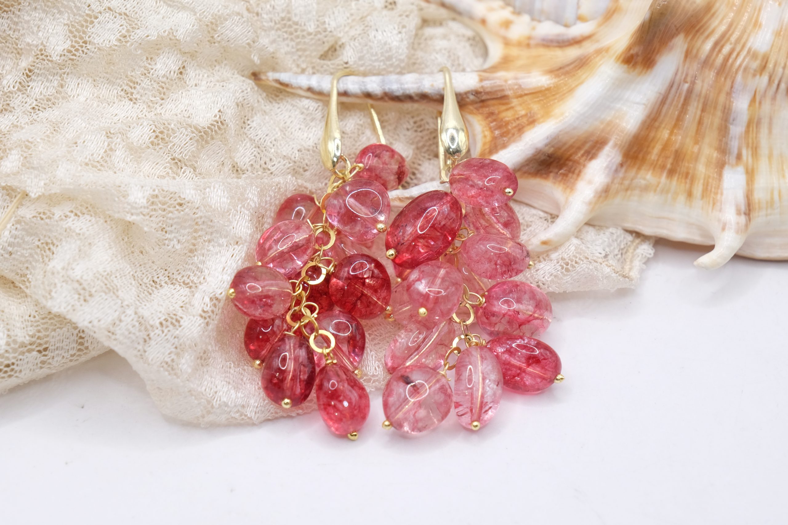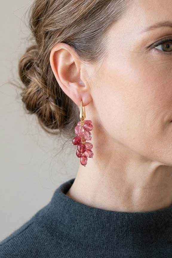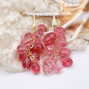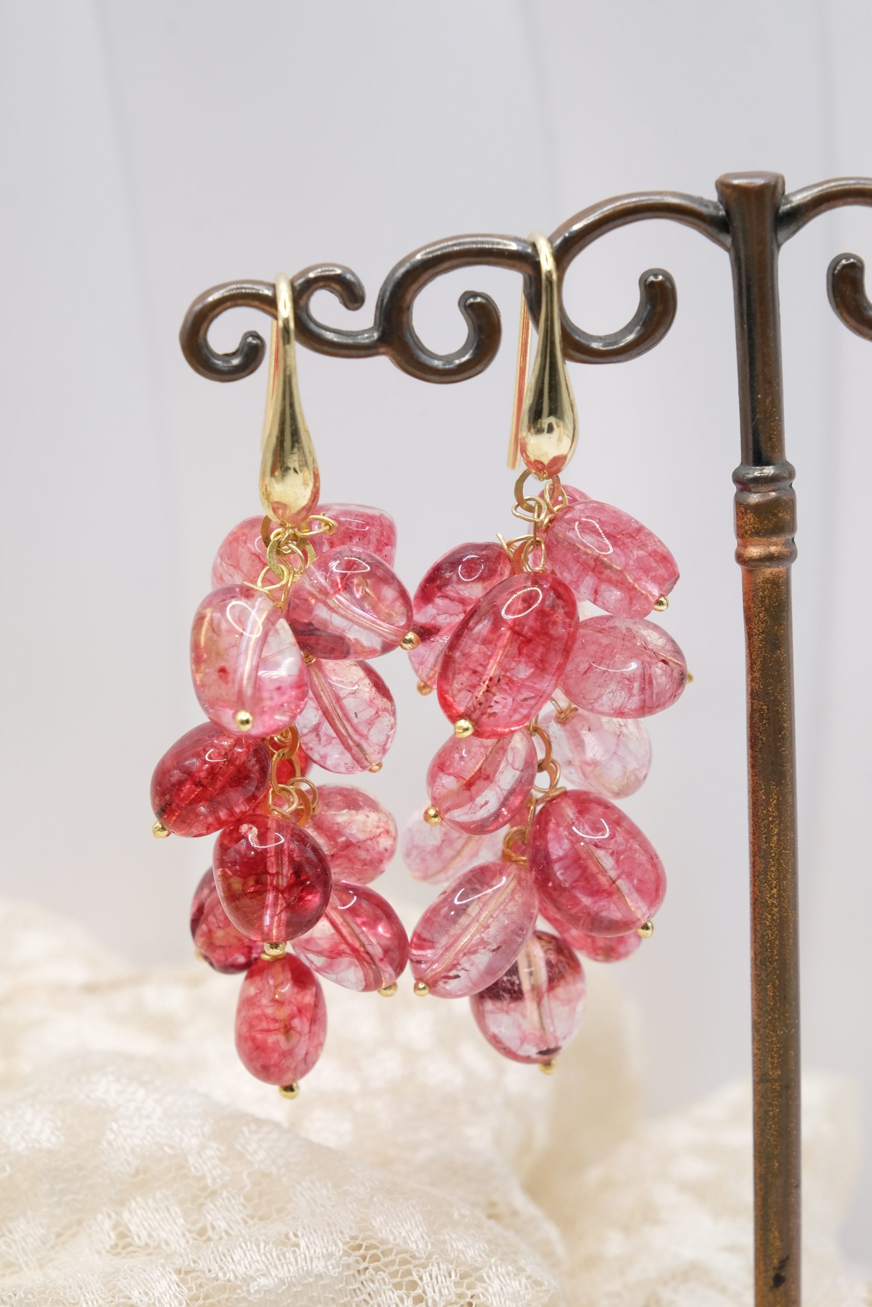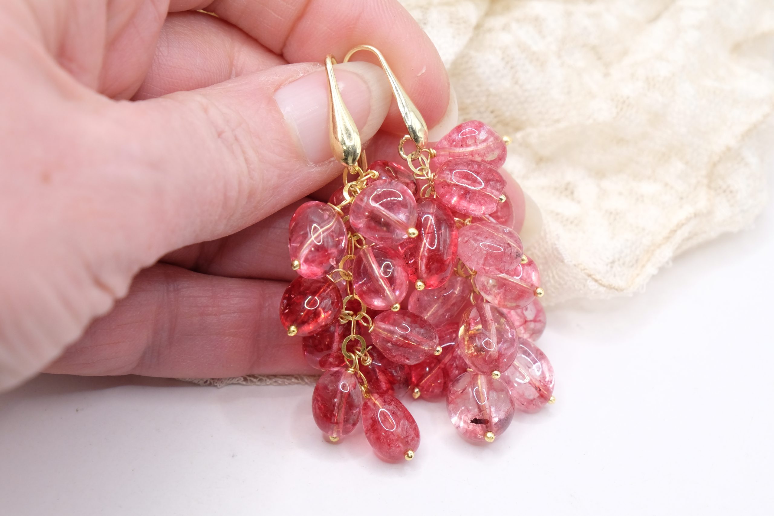 Handcrafted earrings with clusters of pink tourmalines, bright and full of character 💗