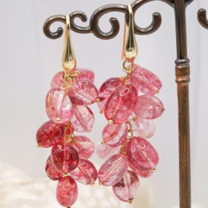 Handcrafted with natural tourmalines in delicate pink tones, which together create an elegant cluster effect, full of light and movement. 925 silver gold plated nun adds a refined touch and makes them perfect for everyday wear or on special occasions ✨