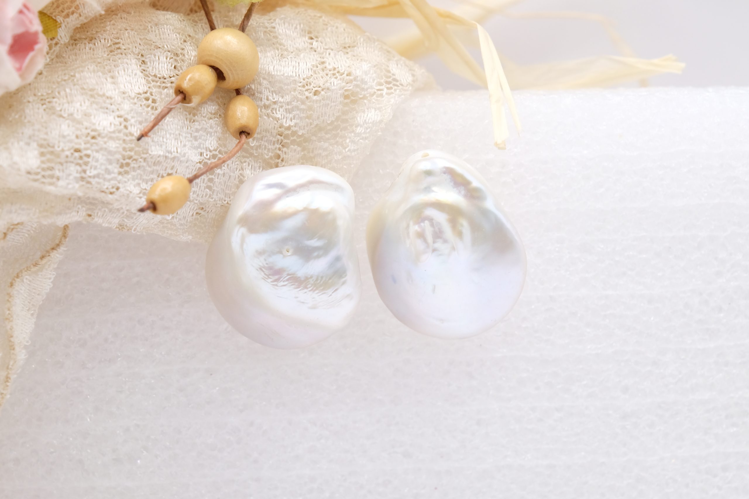 Gorgeous, flat, natural white baroque pearls, perfect for brightening your smile 🌸.