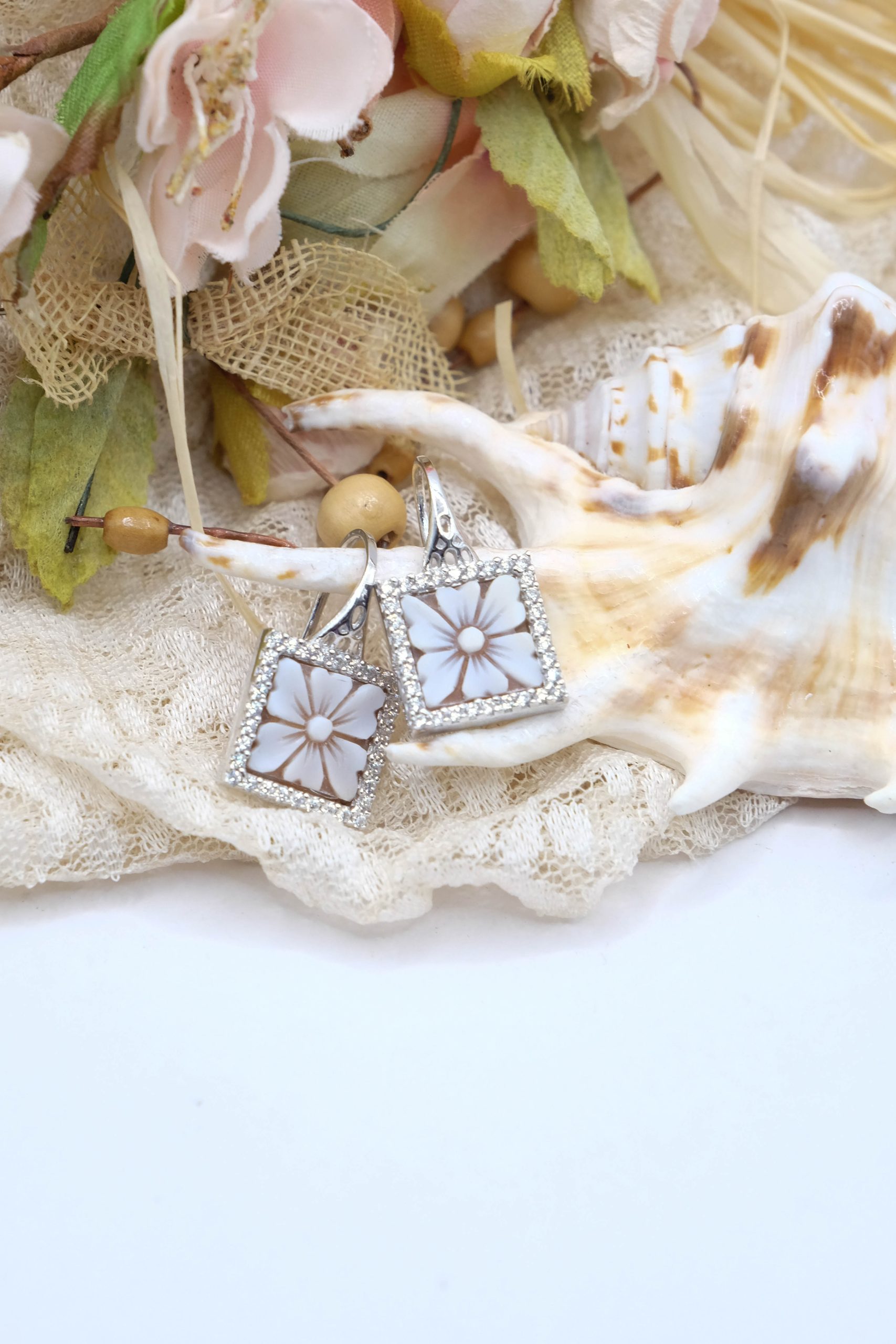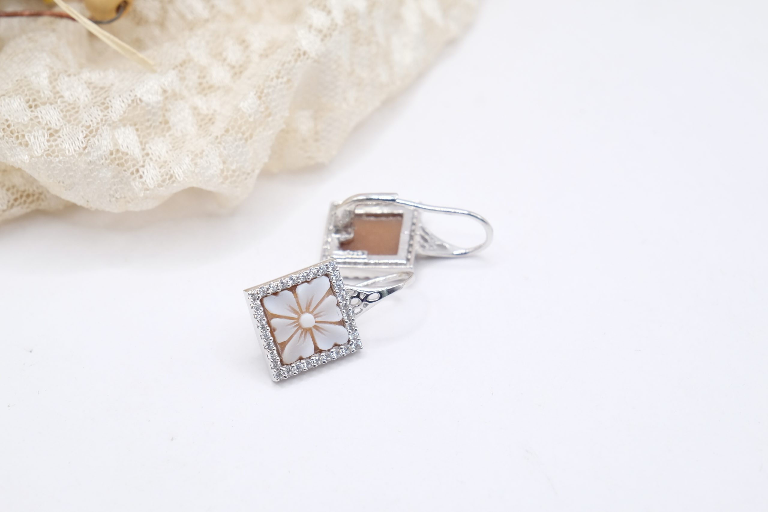 Refined and precious pair of square earrings, inspired by the romantic jewels of the 19th century, handmade