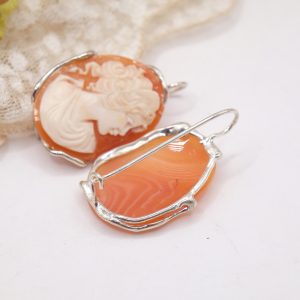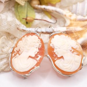 Earrings with genuine antique-style sardonyx shell cameos, hand-engraved by the master goldsmiths of Torre del Greco with a Donna motif