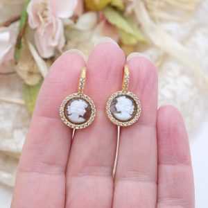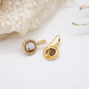 Torre del Greco Sardonic Cameo Earrings for Women with Zircons and Silver