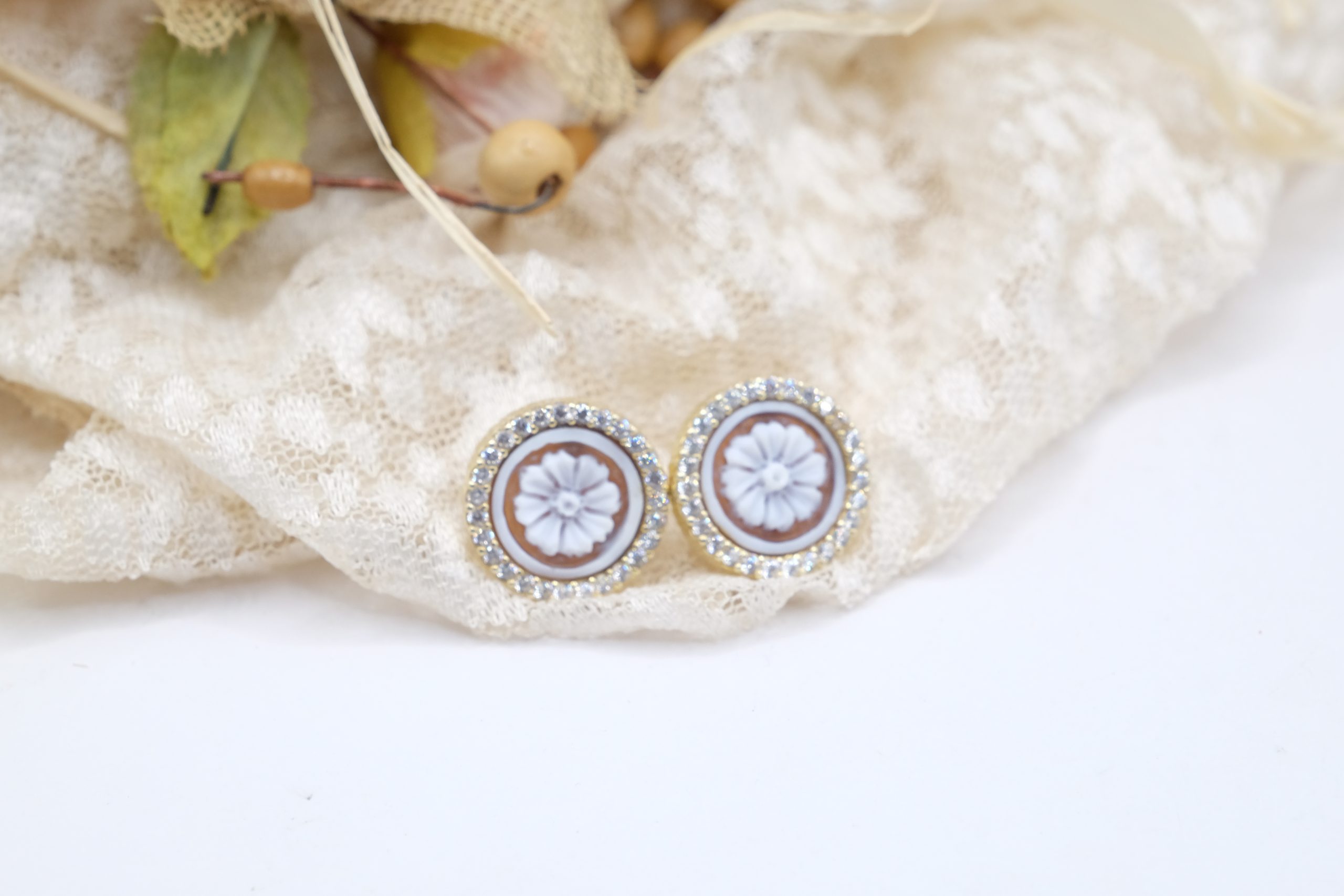 Torre del Greco Cameo Earrings Zirconia Dalia