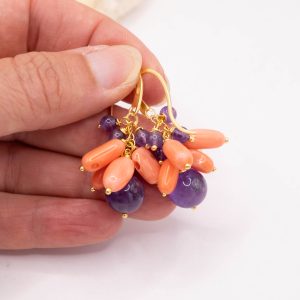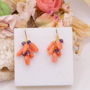 Coral Bamboo Salmon Amethyst Earrings 2 Variations