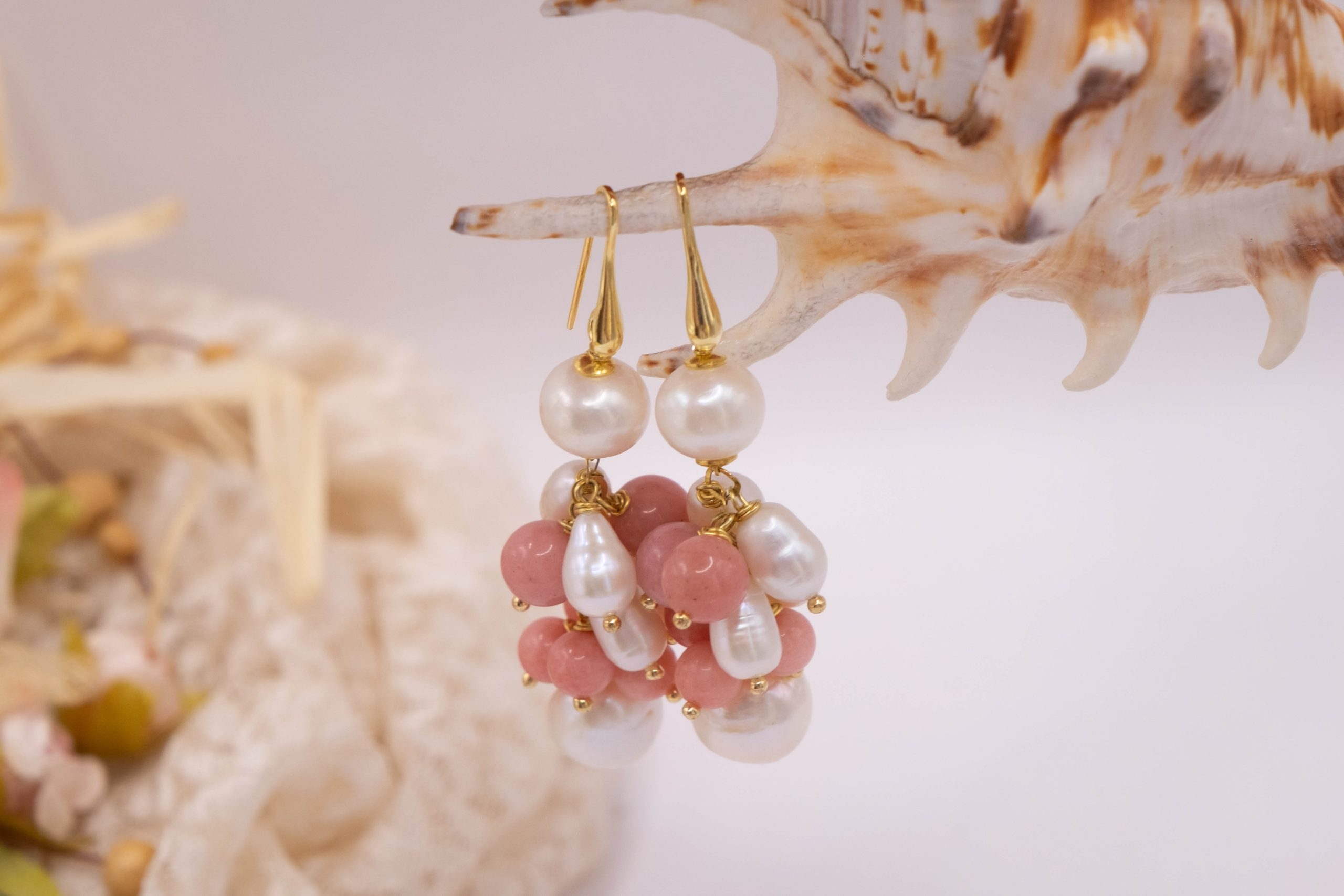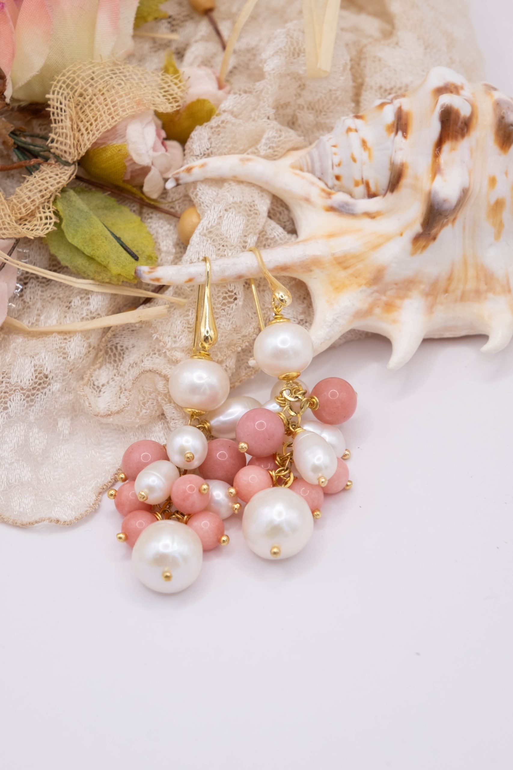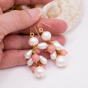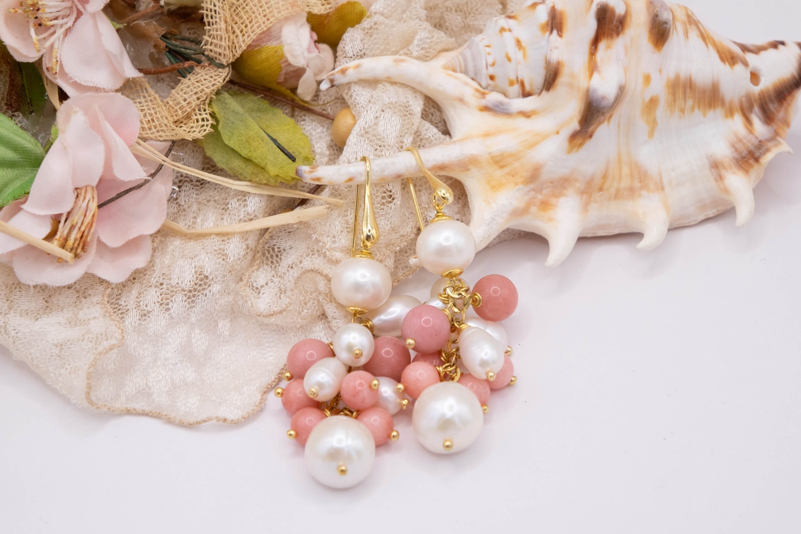 Refresh your style with these exquisite and elegant Pink Jade and Natural Pearl earrings. The harmonious combination of classic pearls and the color combination creates a refined jewel that captures attention.