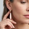 The elongated shape slims the face, while the cabochon recalls intense and natural shades, perfect for every season.