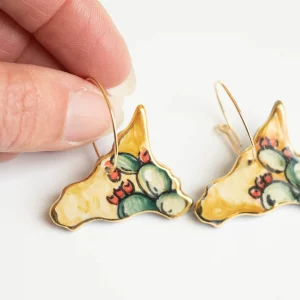 Ceramic earrings with prickly pears on a white or yellow background