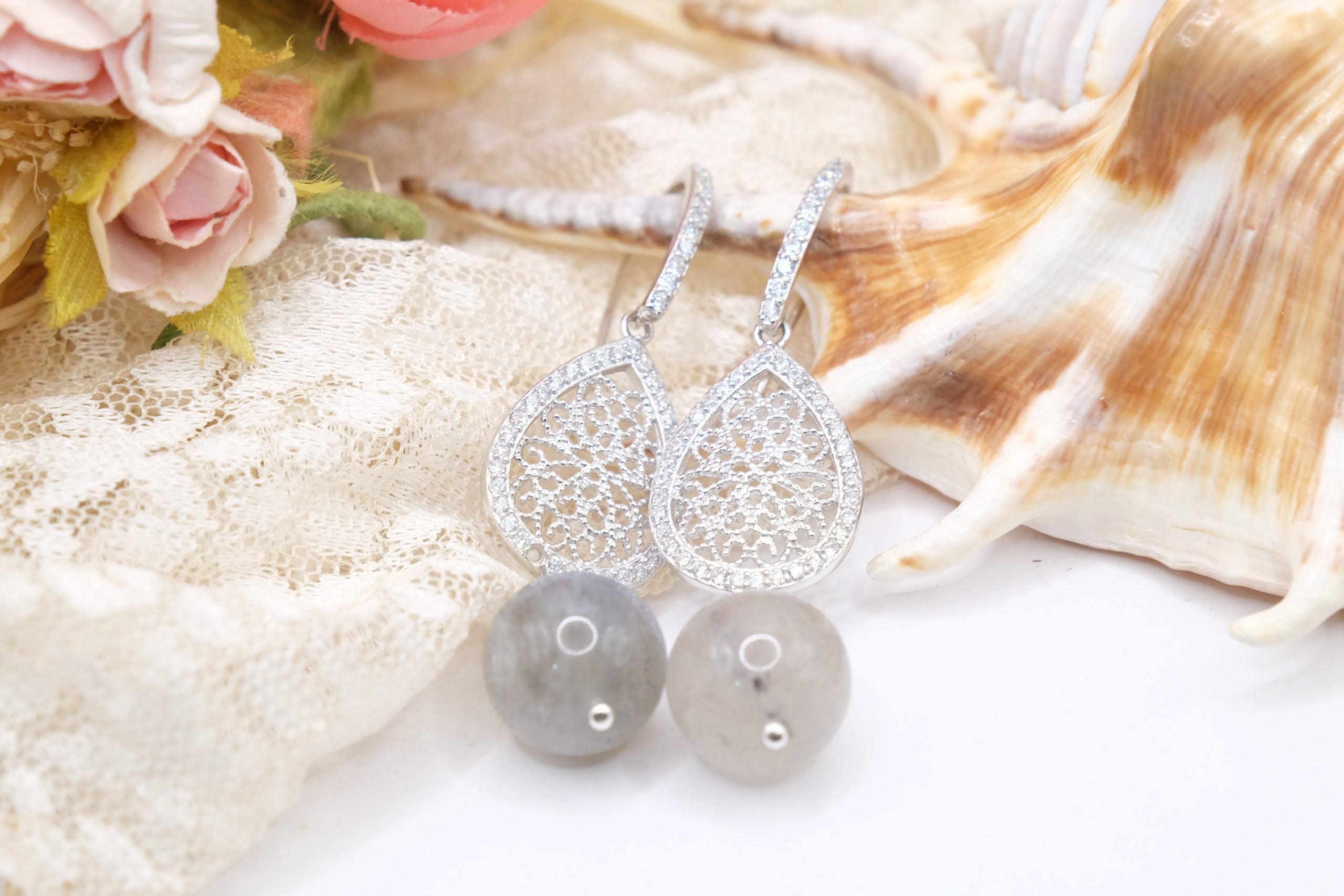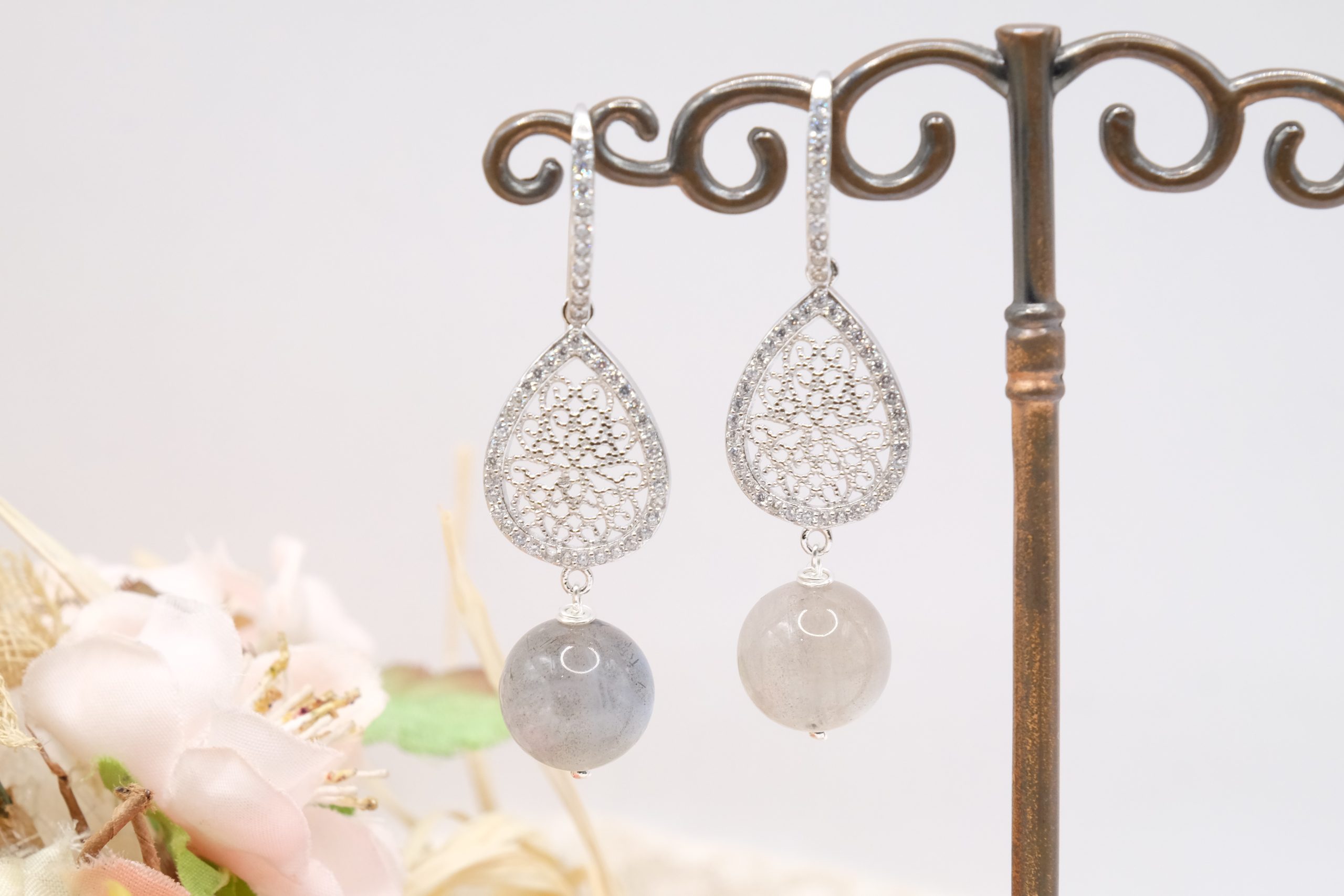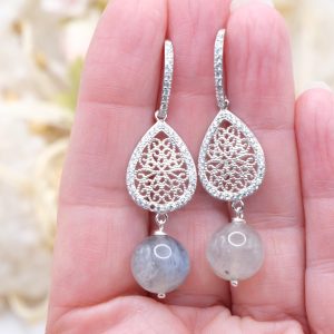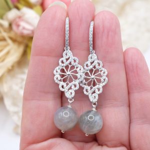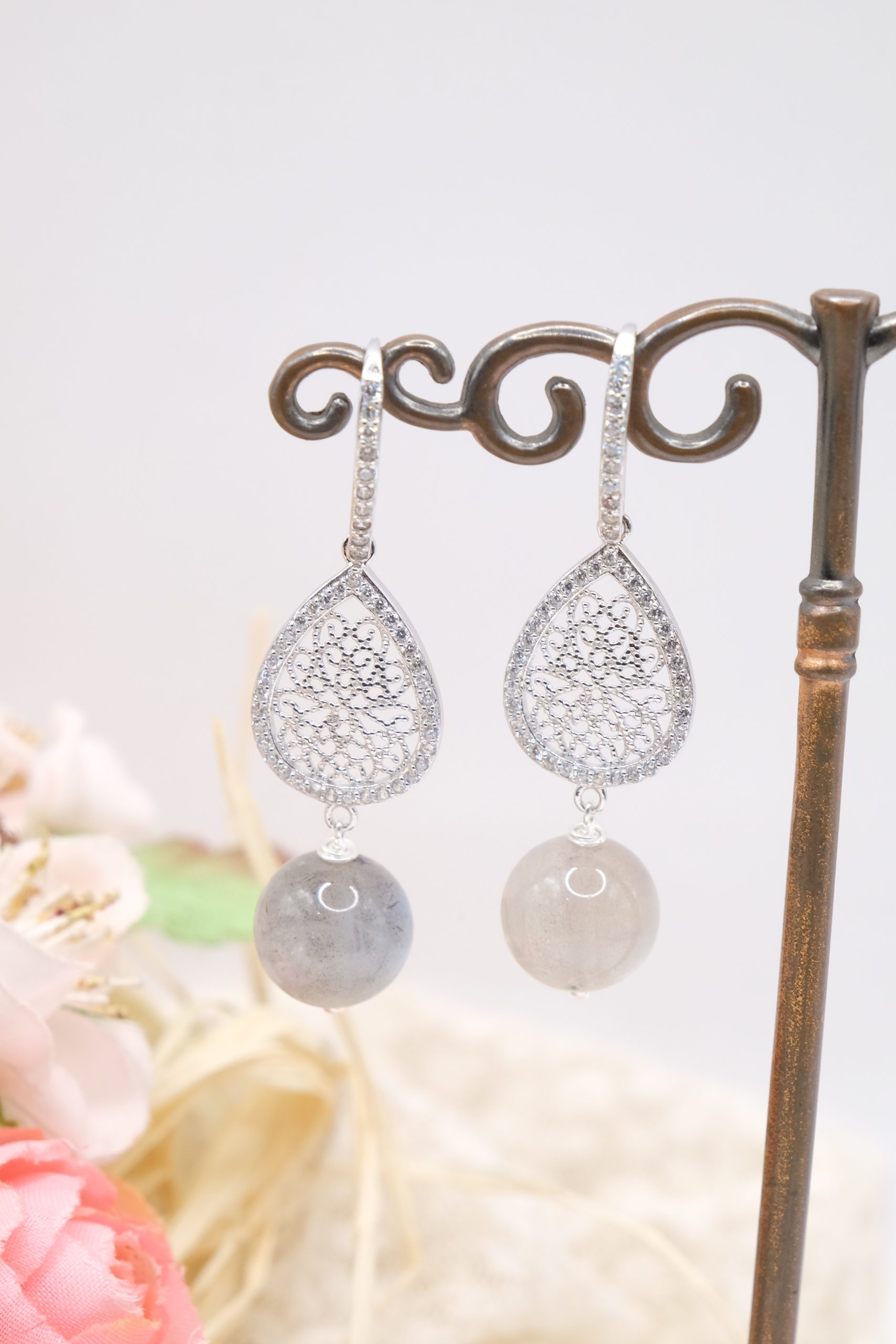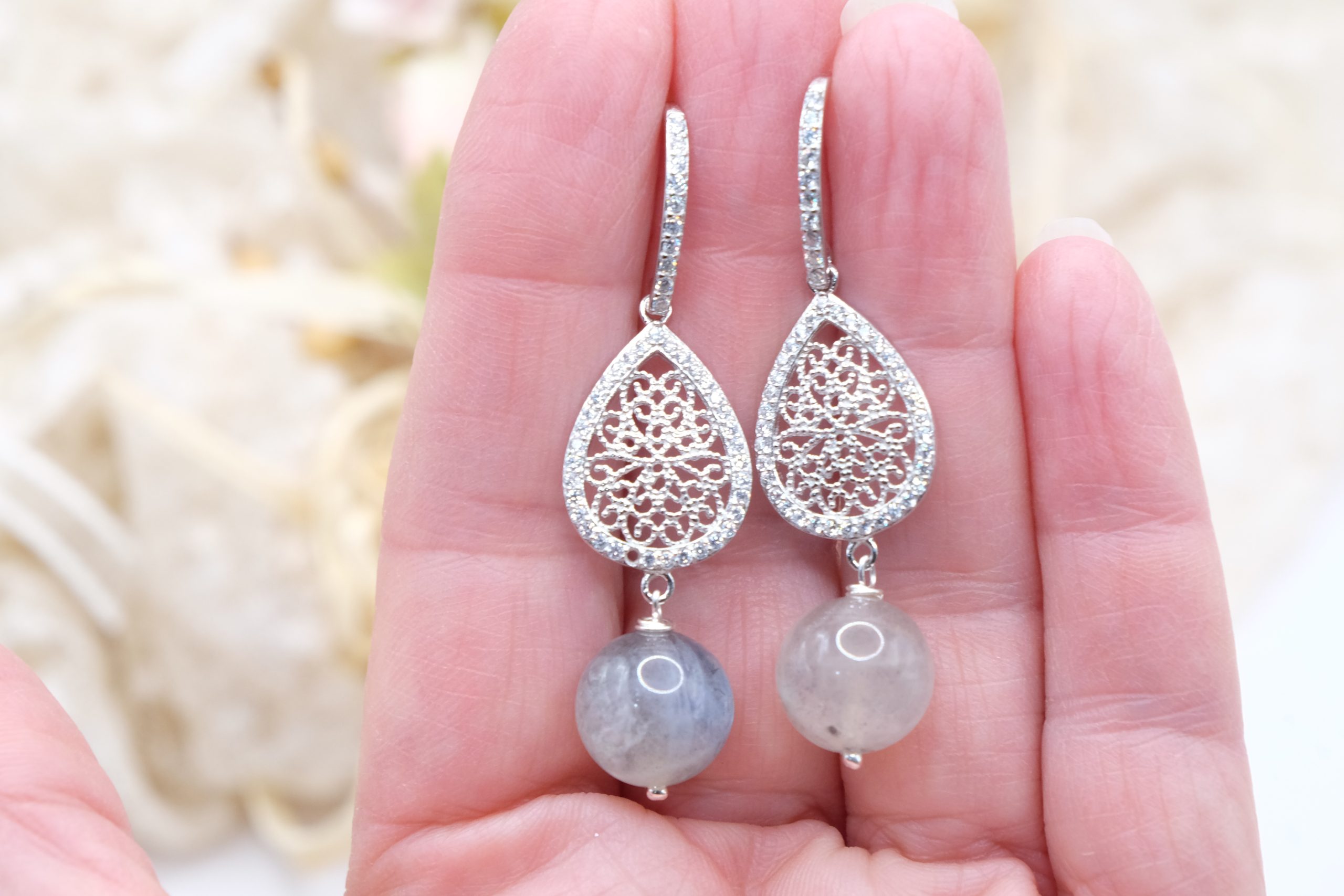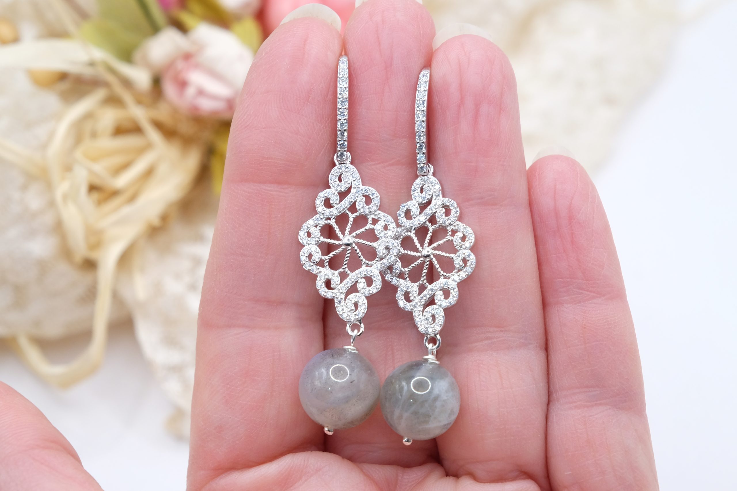 Labradorite Earrings 925 Silver Zircon Silver 2 Variants