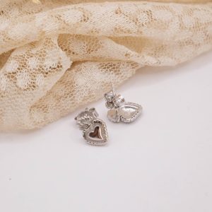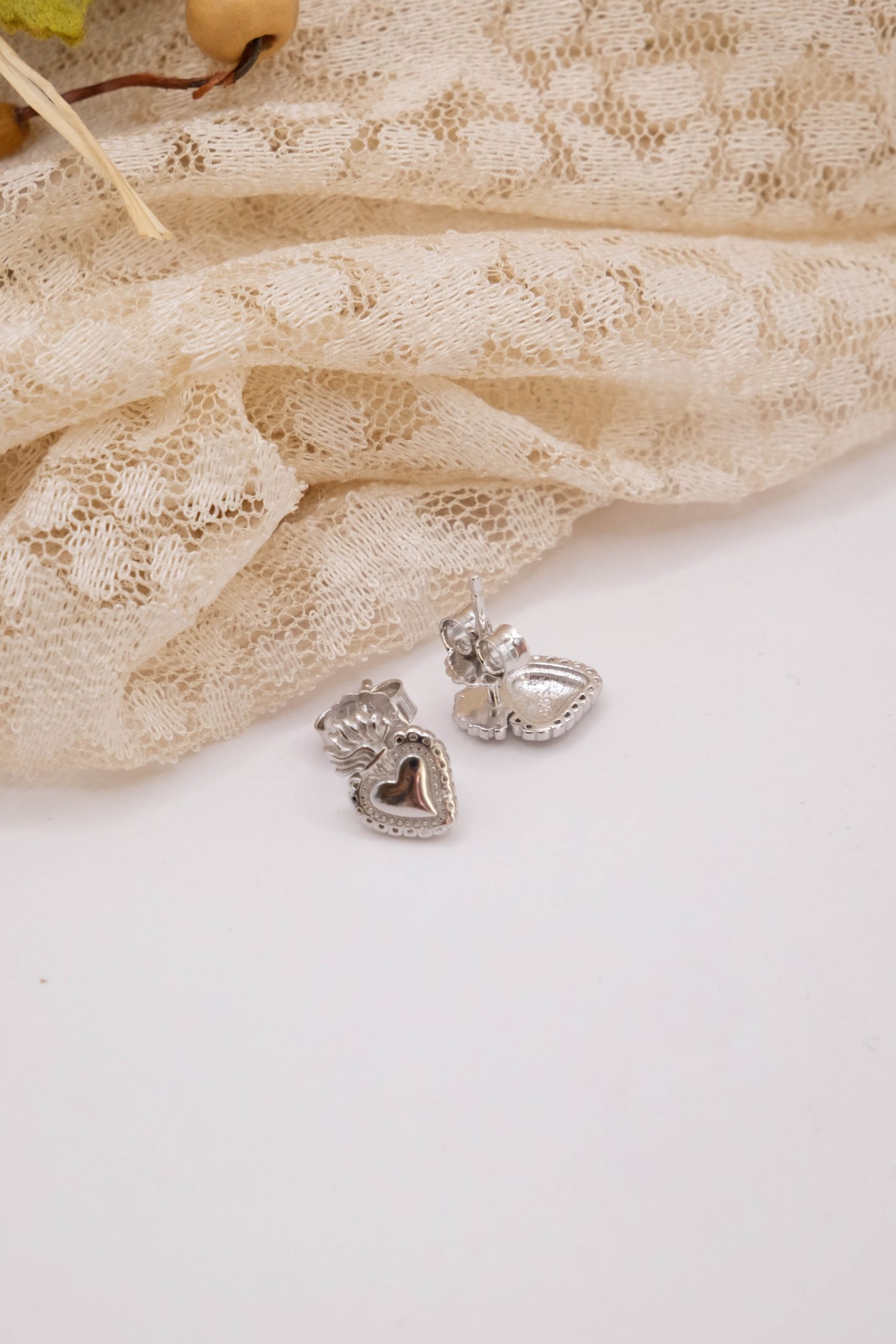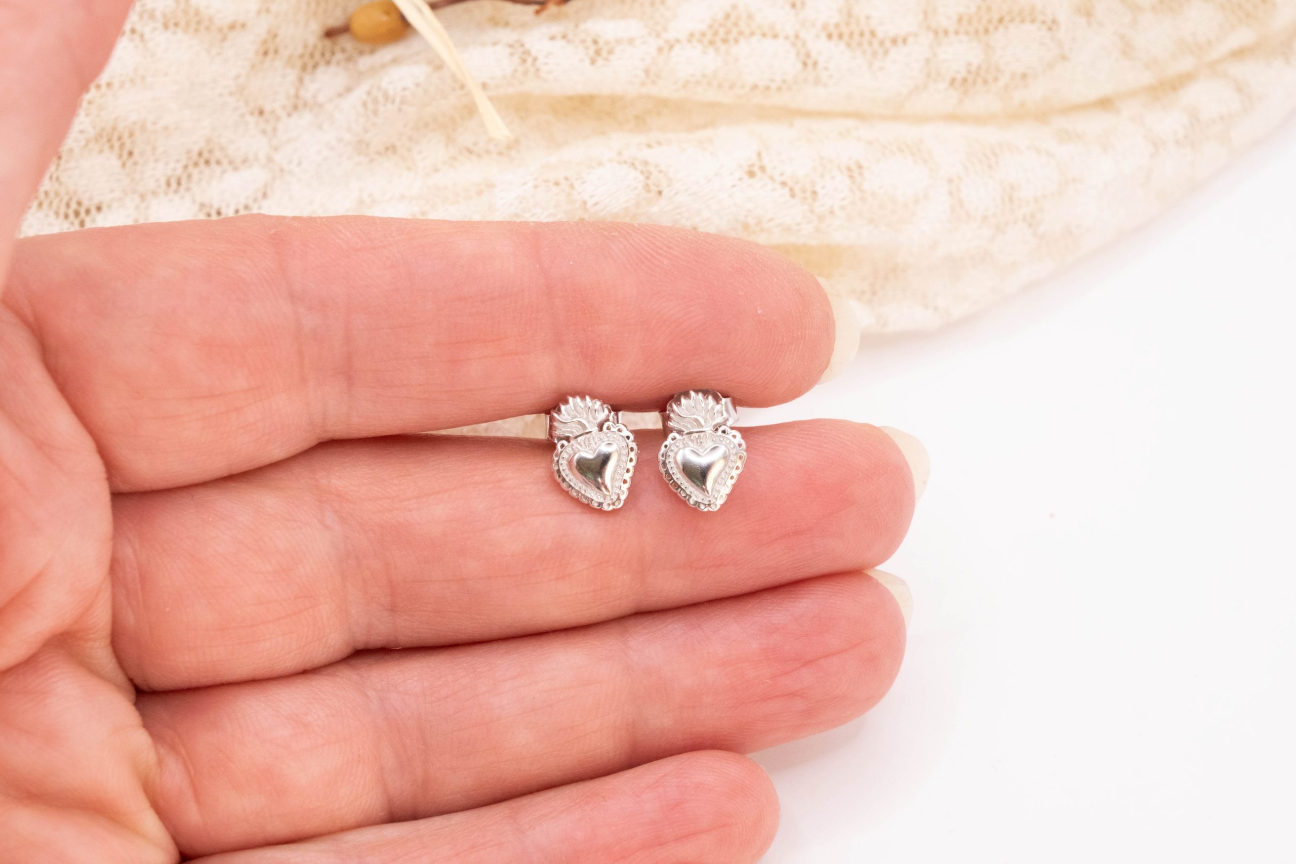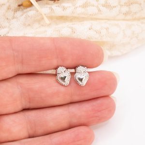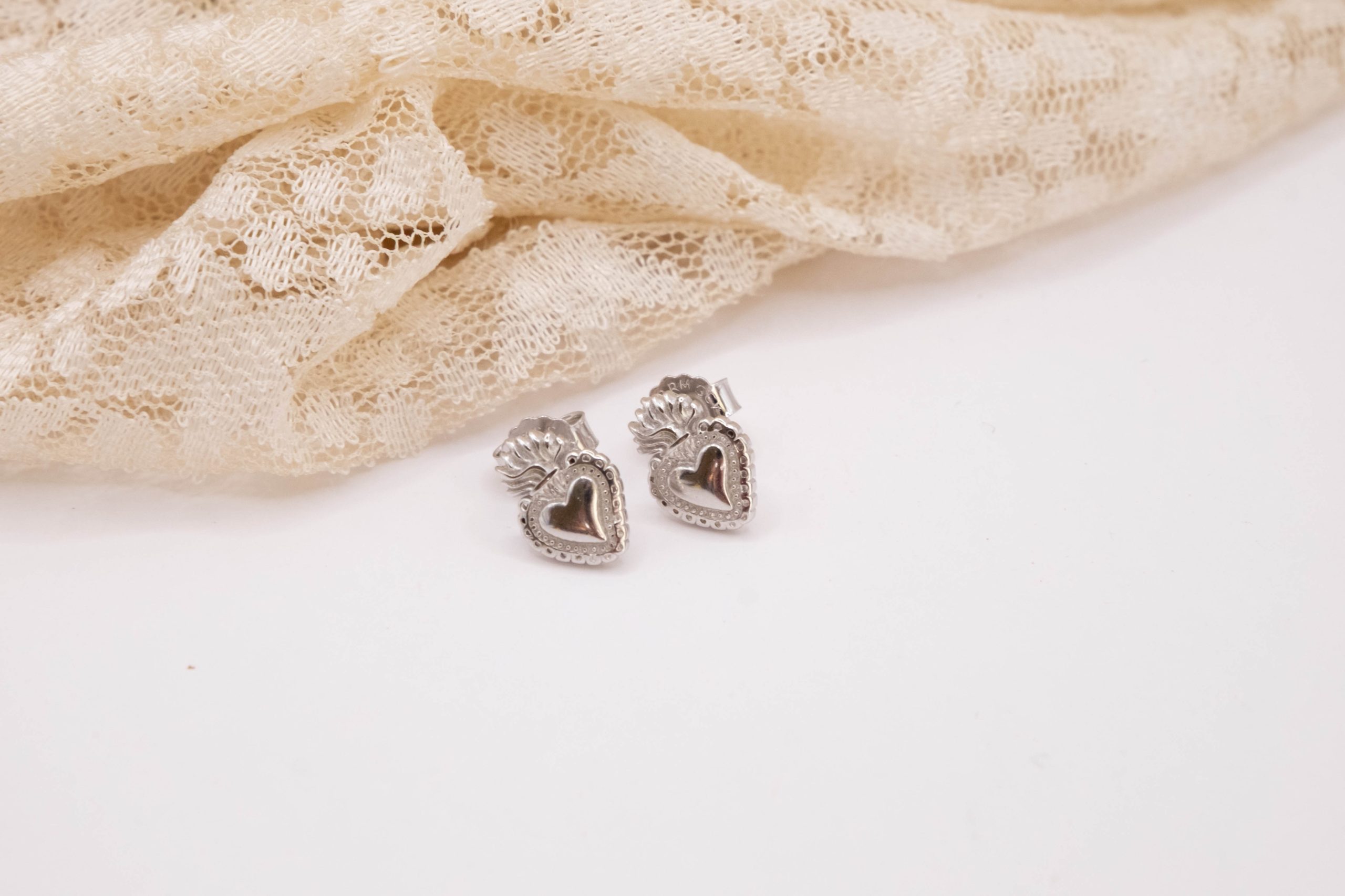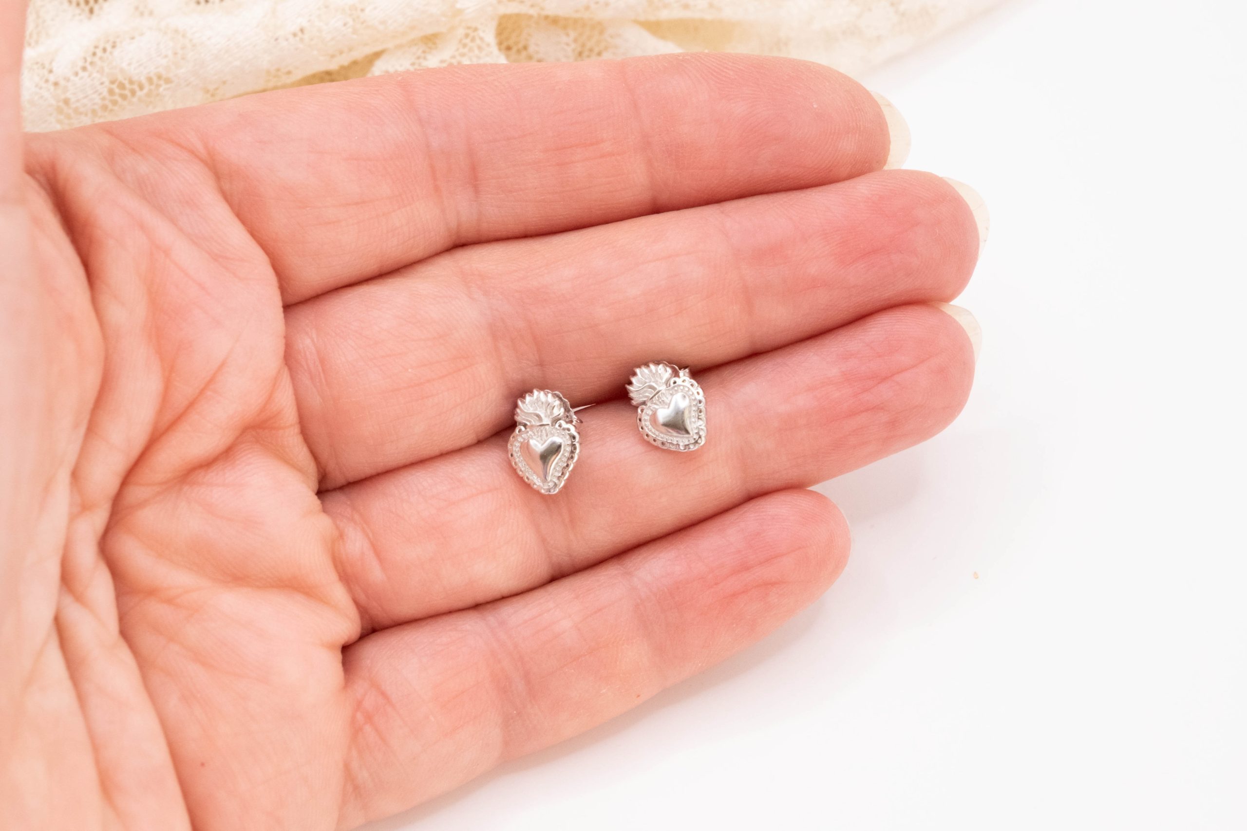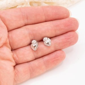 Mini Sacred Heart Earrings in Rhodium-Plated 925 Silver