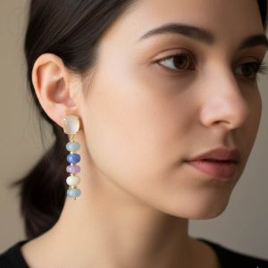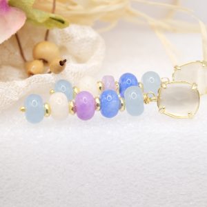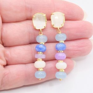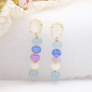 Earrings with white, aqua, blue and lavender jade discs