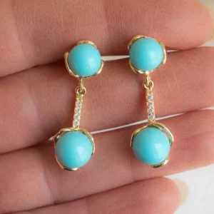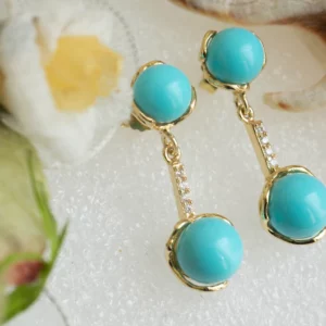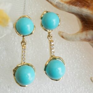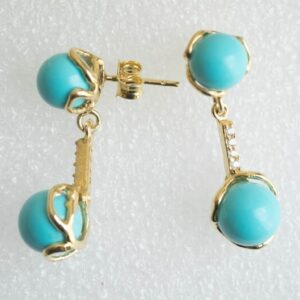 Pendant earrings with Torre del Greco turquoise paste pearls, on yellow gold plated 925 silver, with zirconia bar.