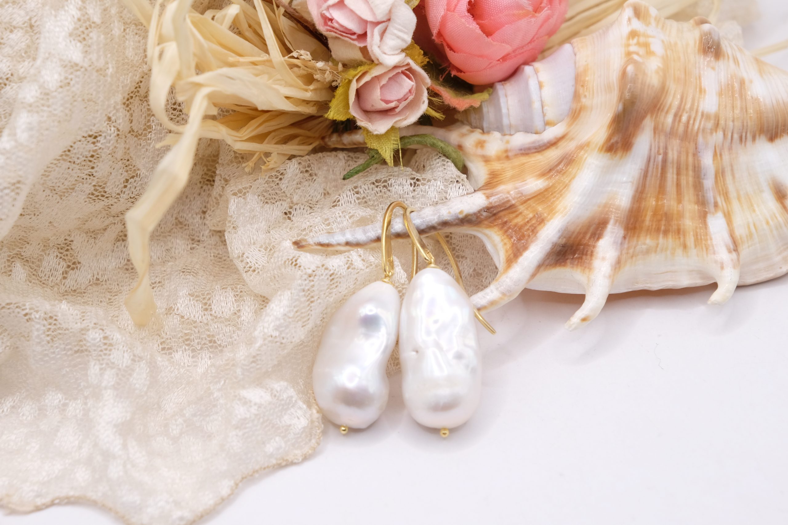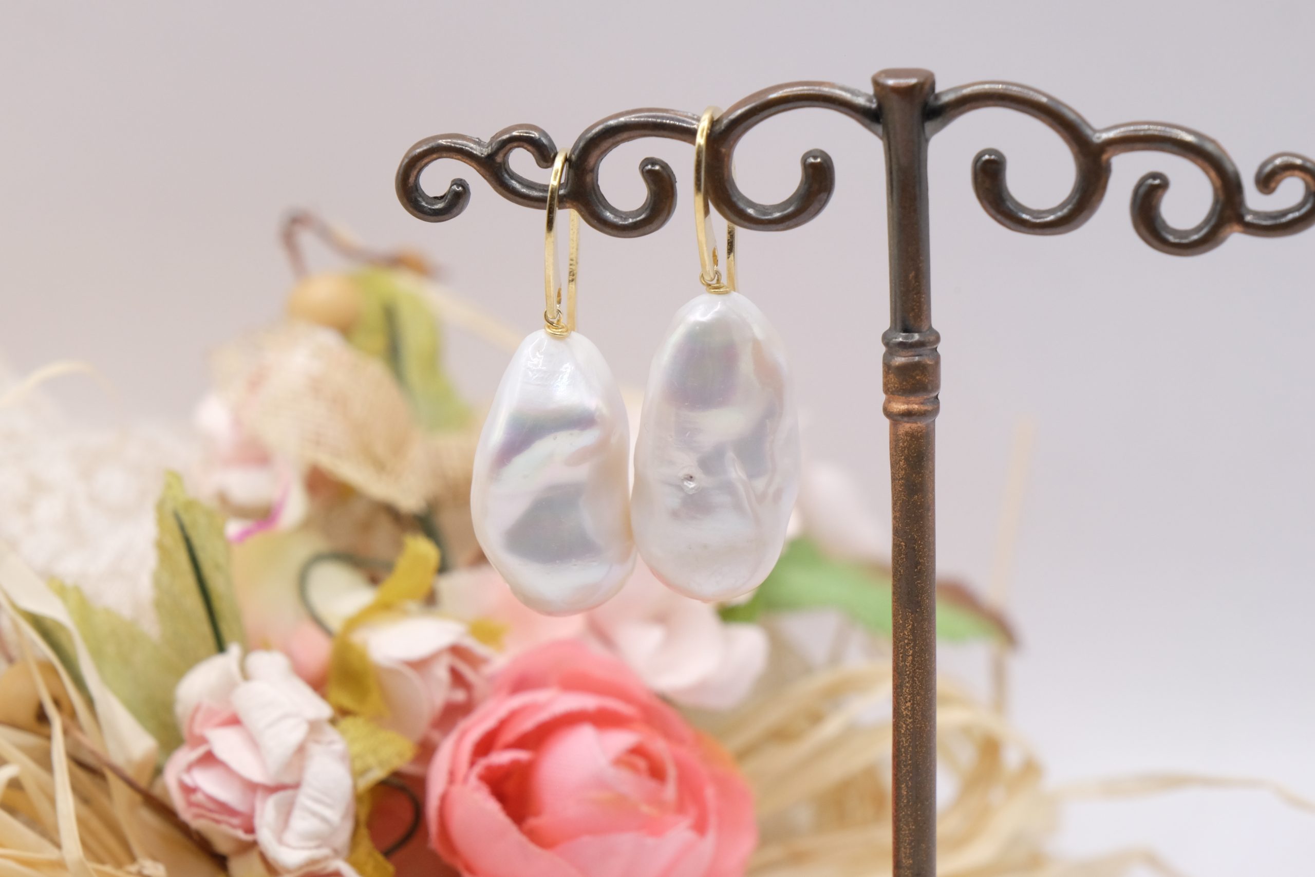These earrings feature large smooth and naturally luminous baroque pearls, each with its own unique shape that enhances the femininity and character of the wearer 🤍✨