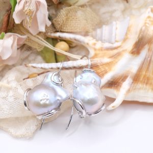 Gray Baroque Pearl Earrings in Rhodium-Plated Silver