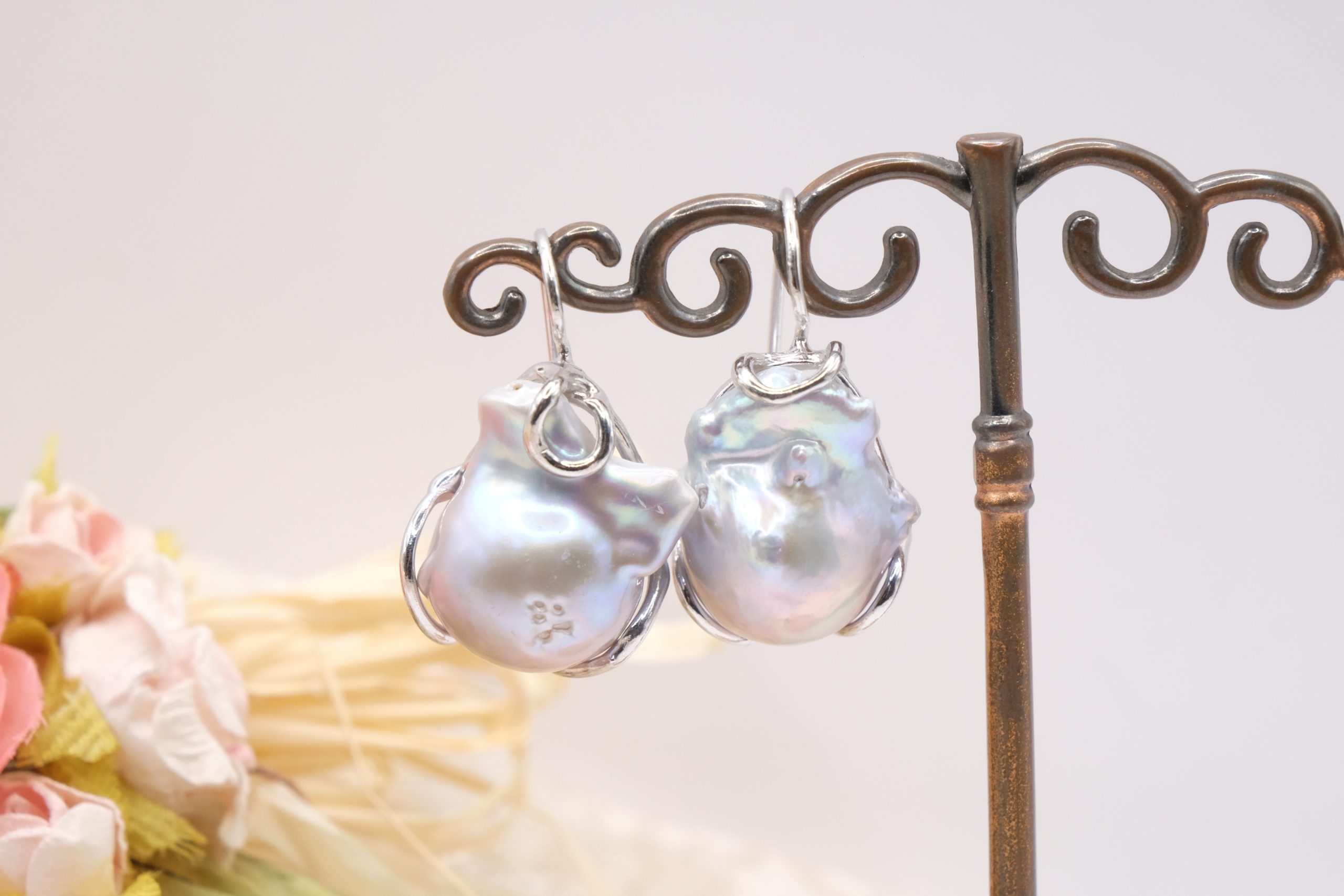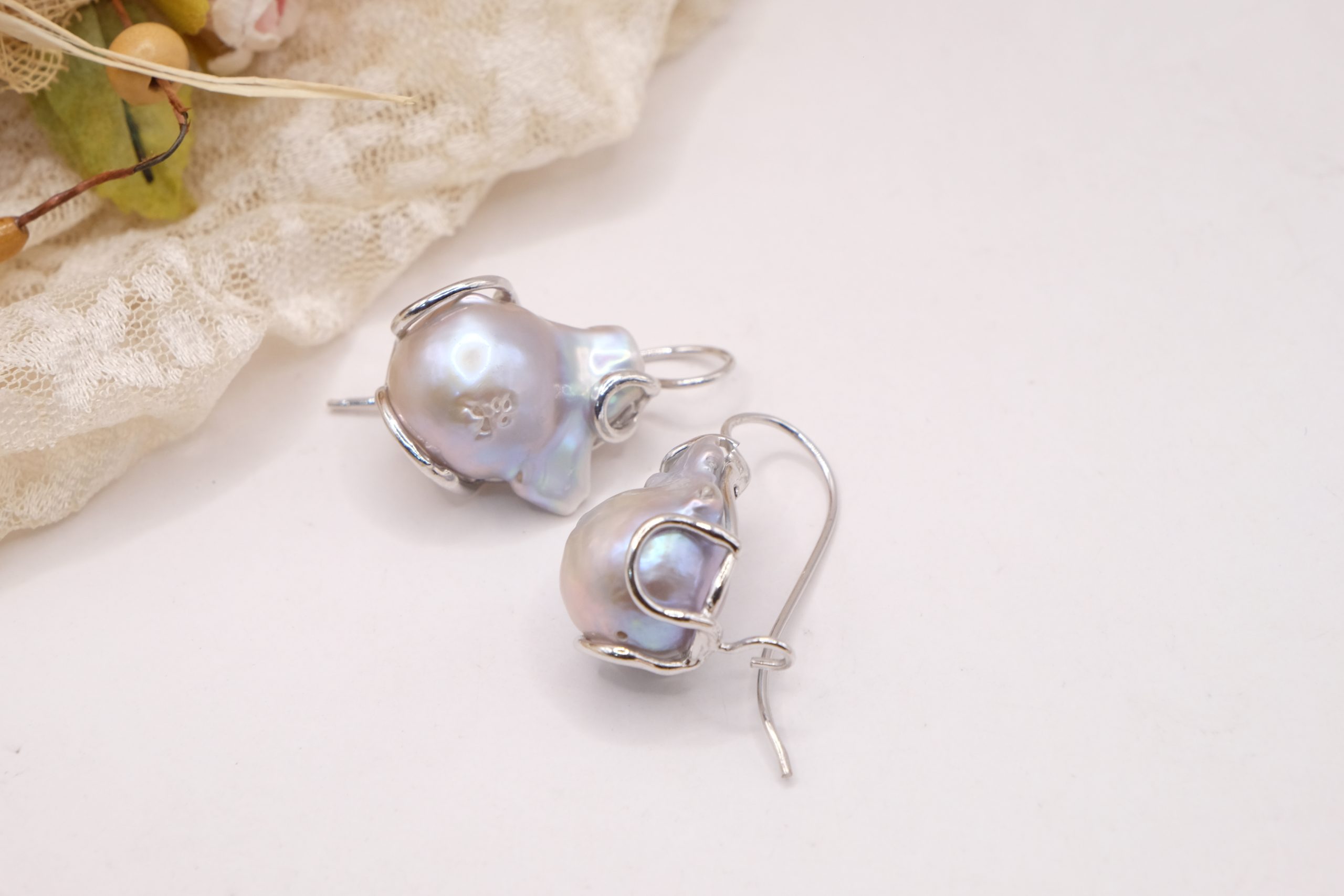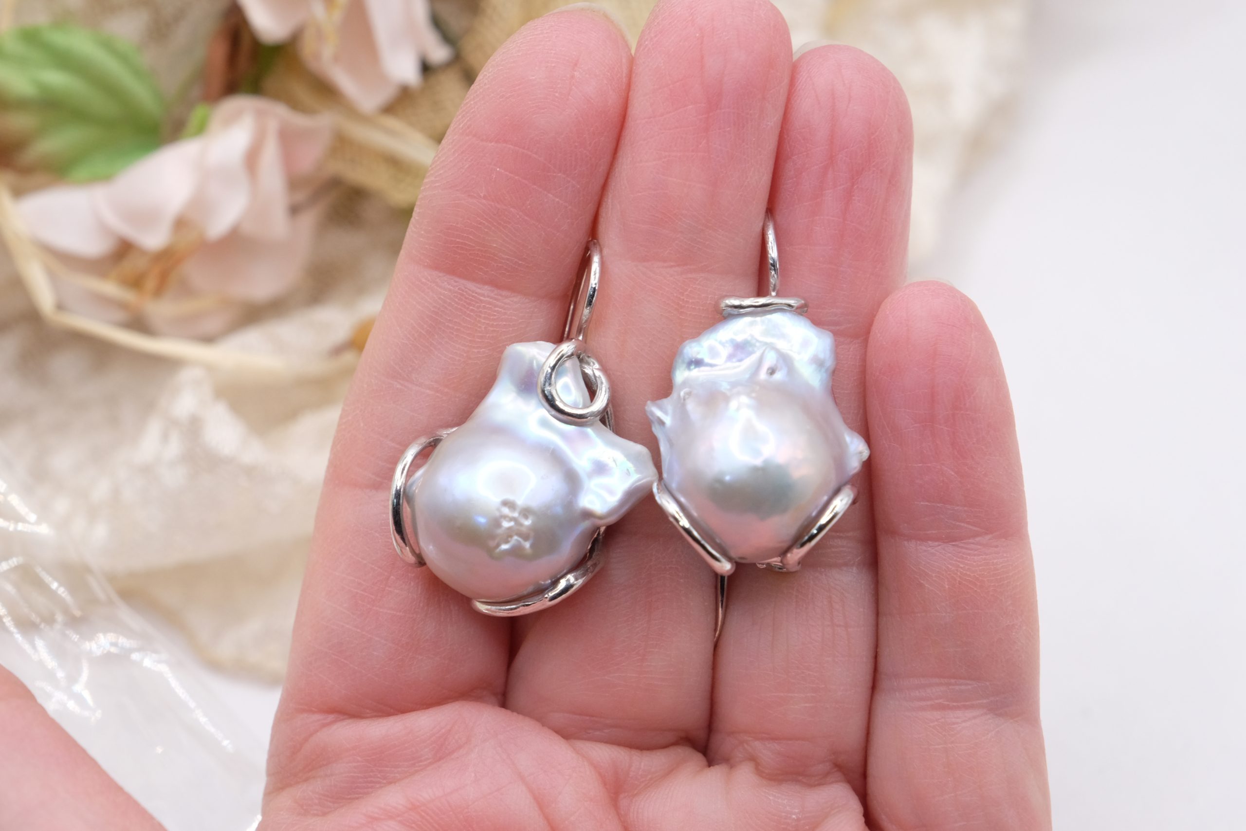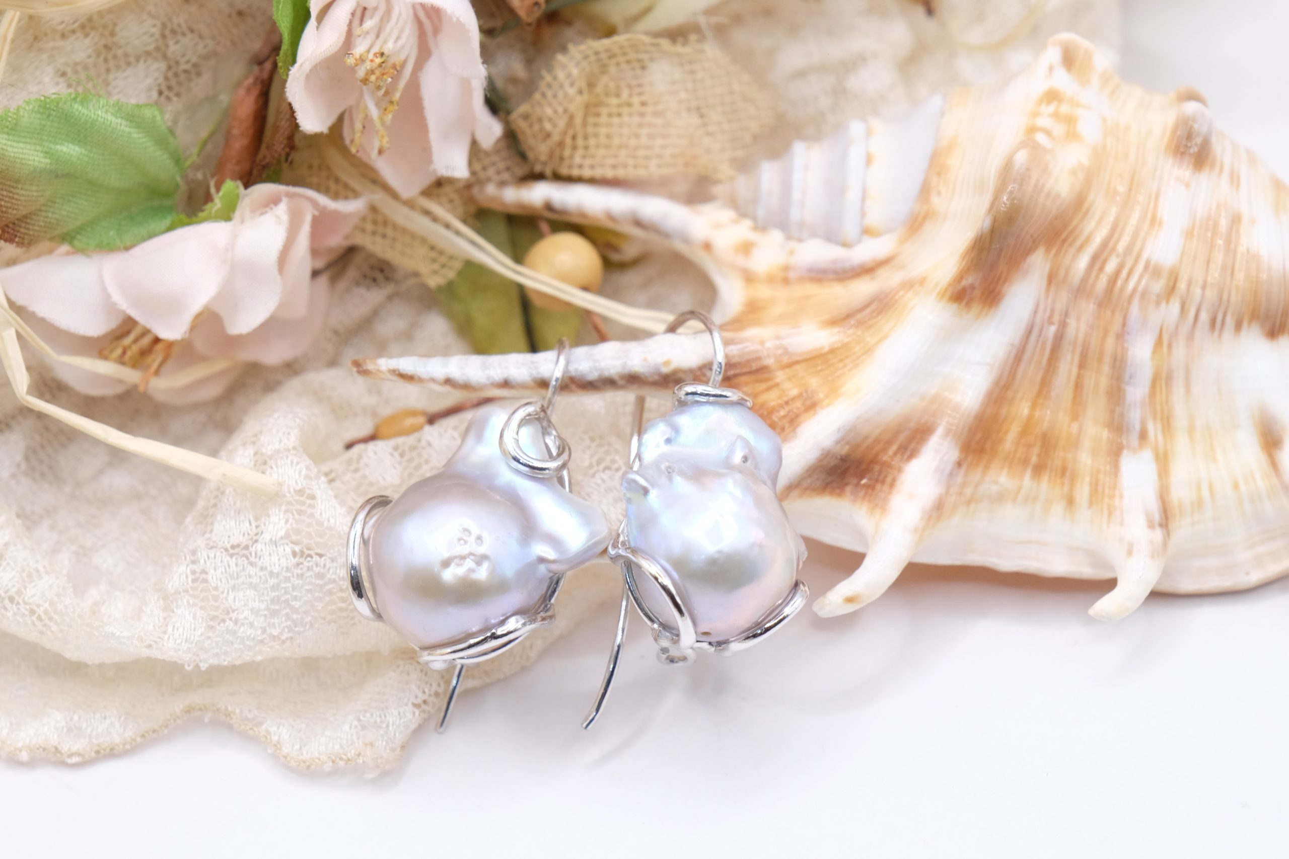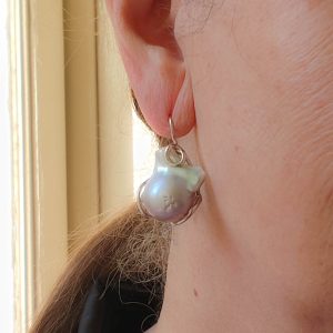 Drop earrings with gray baroque pearls, also beautiful for a bride.