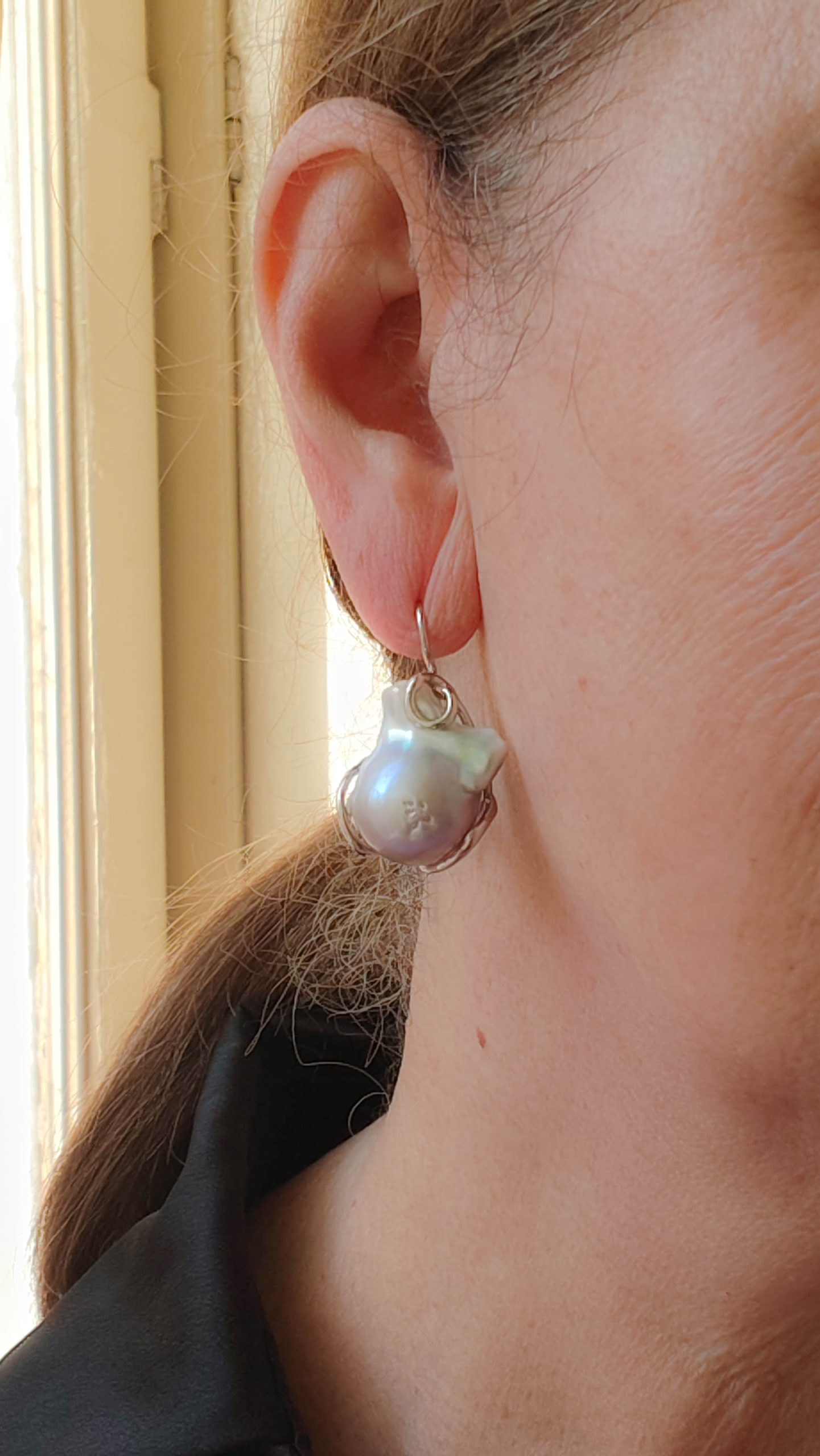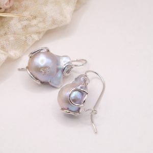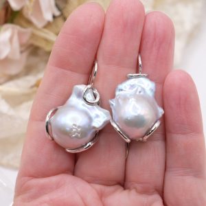 These drop earrings with gray baroque pearls enhance femininity with their unique and captivating shape. Perfect for adding a touch of class to any outfit, they're also ideal for a bride who wants to add a sophisticated and luminous detail to her look 💍🤍