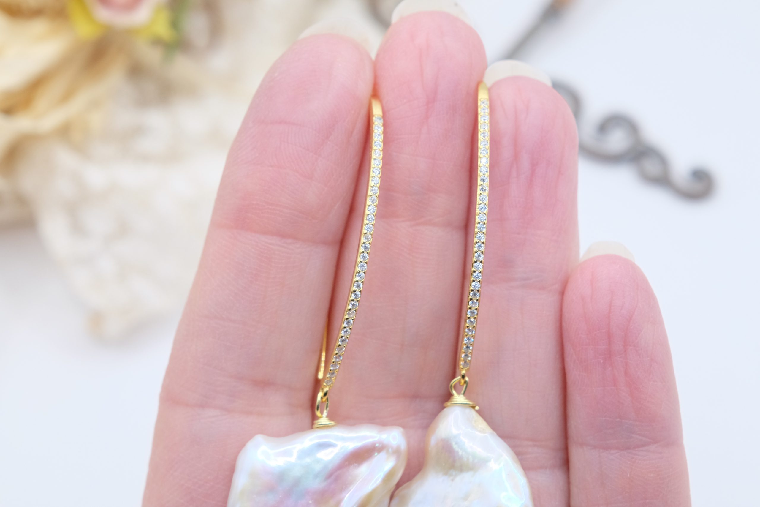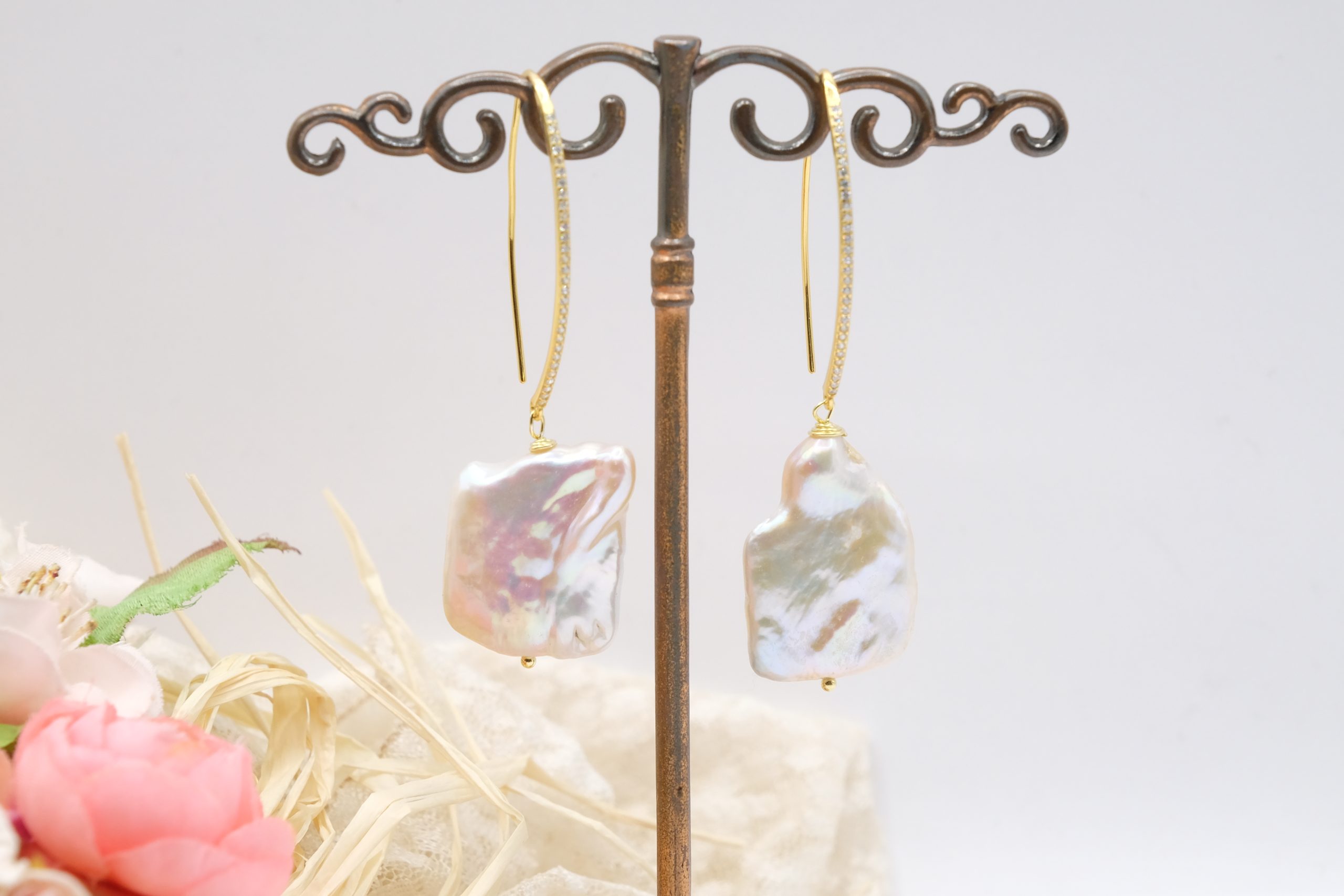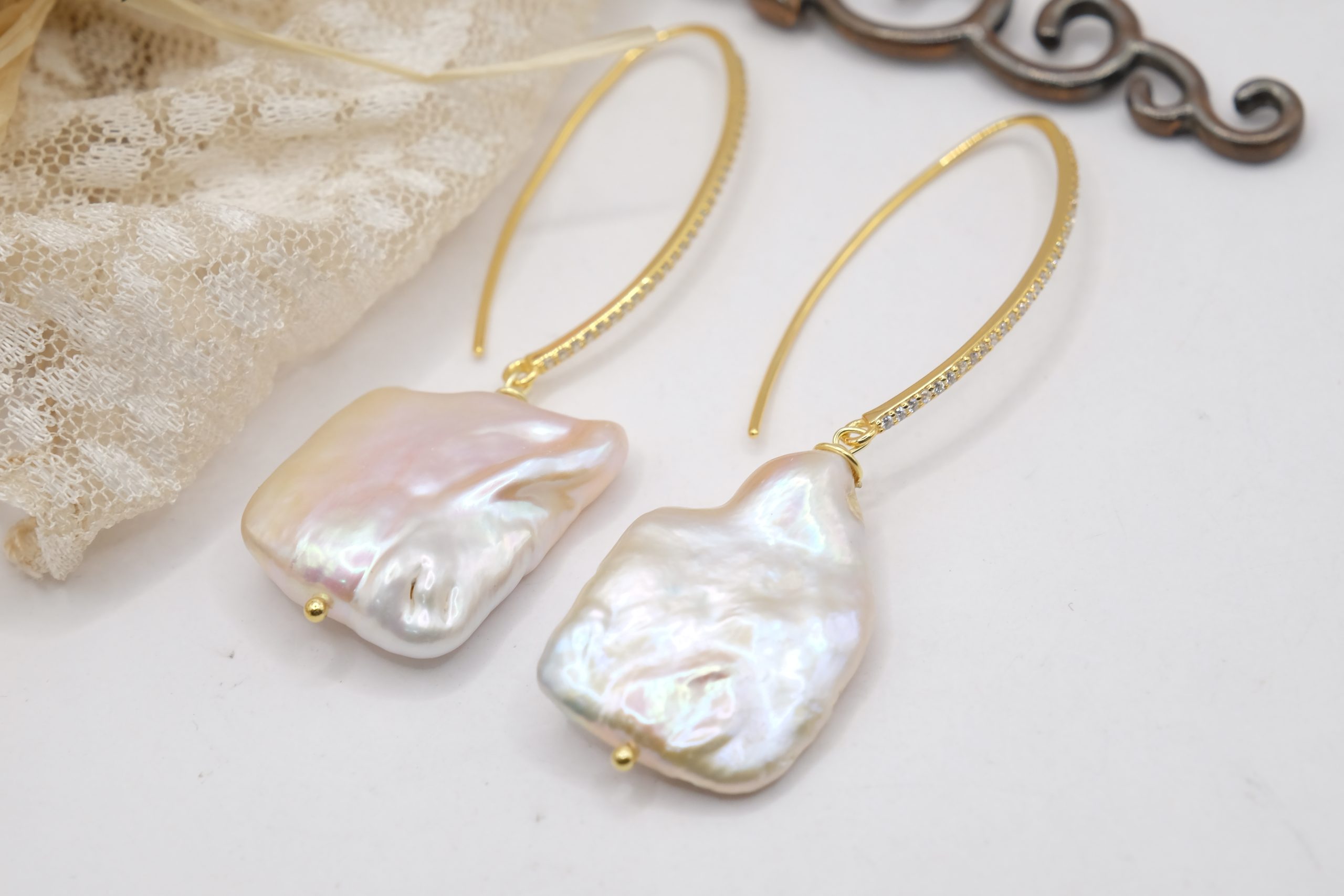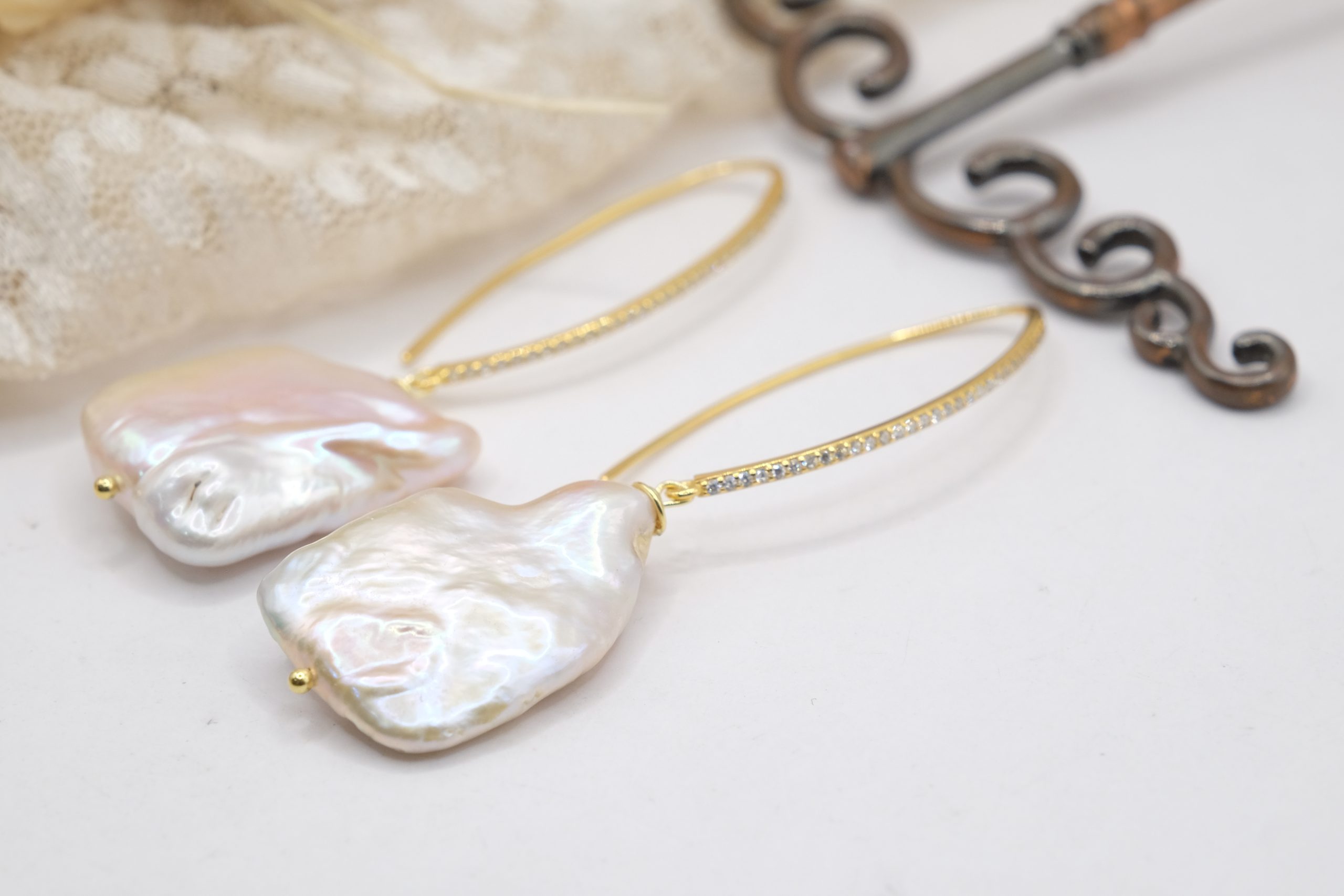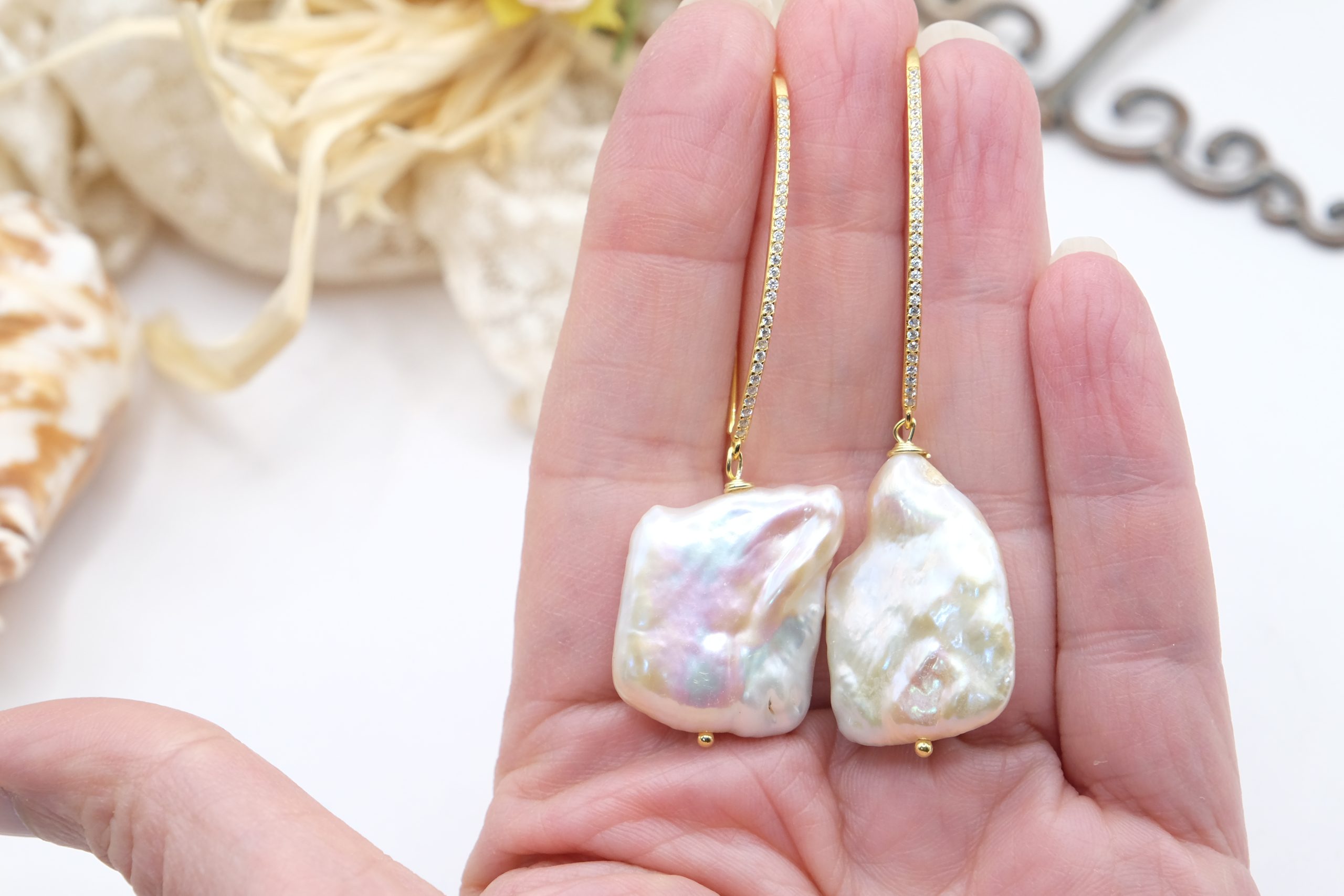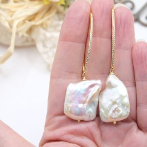 Earrings with a bold and refined character, embellished with large white baroque square-shaped pearls, each one unique 🌿