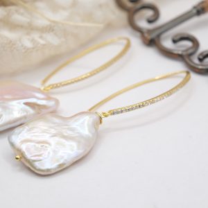 Square Baroque Pearl Earrings in 925 Silver with Gold Zircons
