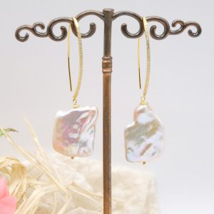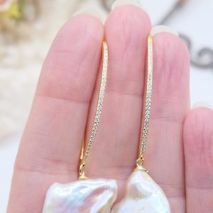 Square Baroque Pearl Earrings in 925 Gold Silver