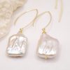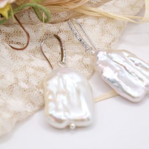 Very original earrings with bright and large square white baroque pearls