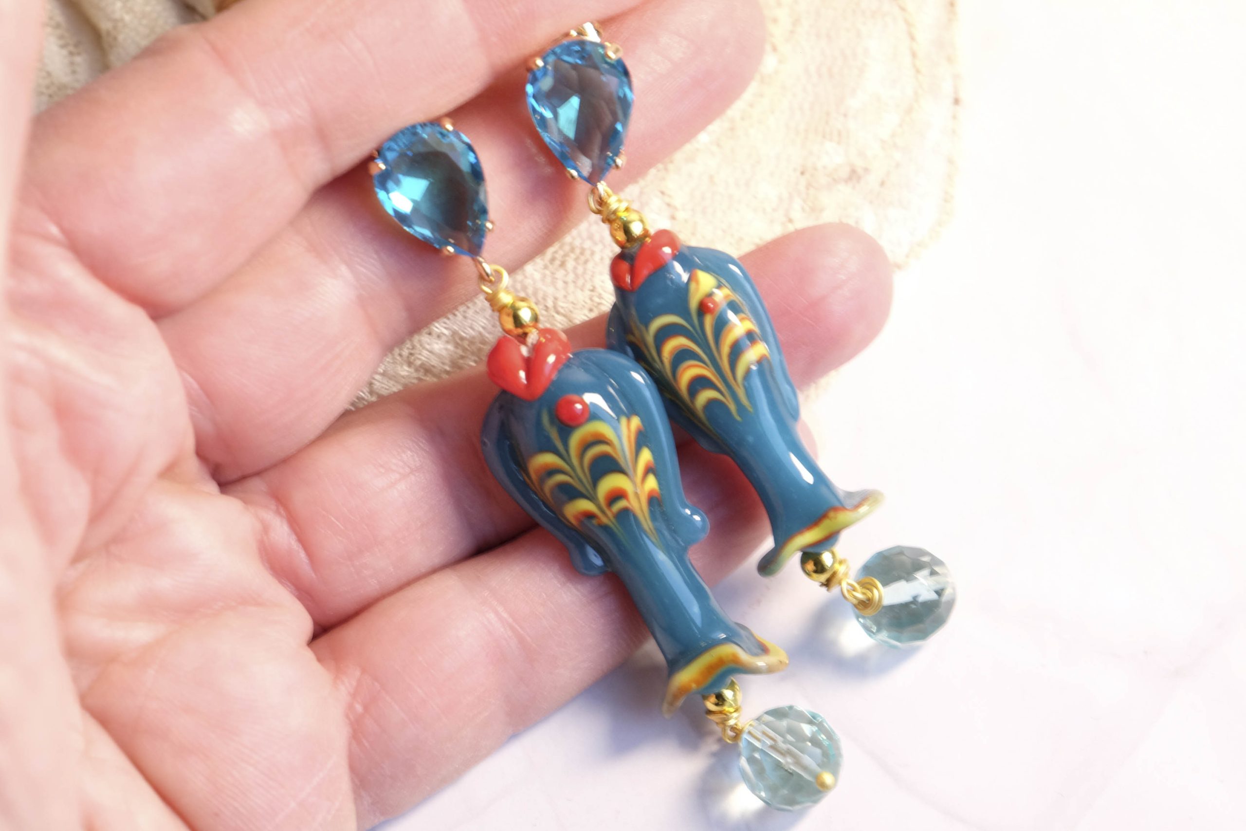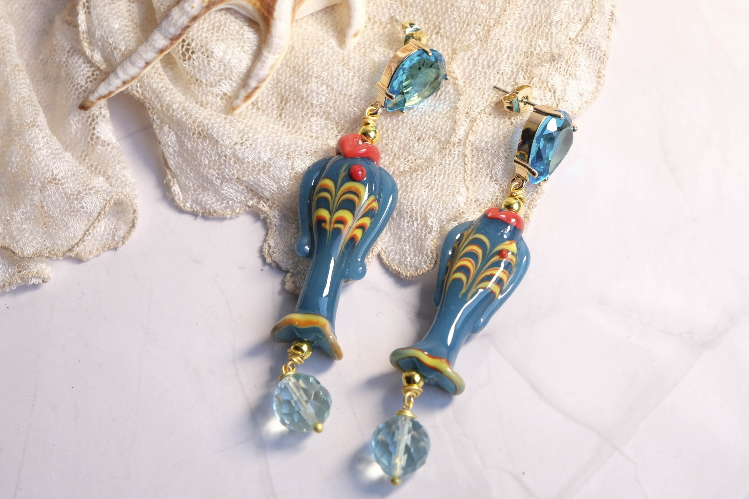Timeless elegance for those who love vintage charm! 🌿💛 These exclusive earrings, made with precious elements in blue Murano glass and embellished with bright crystals, evoke refinement and uniqueness. Perfect for adding an artistic and sophisticated touch to any outfit.
