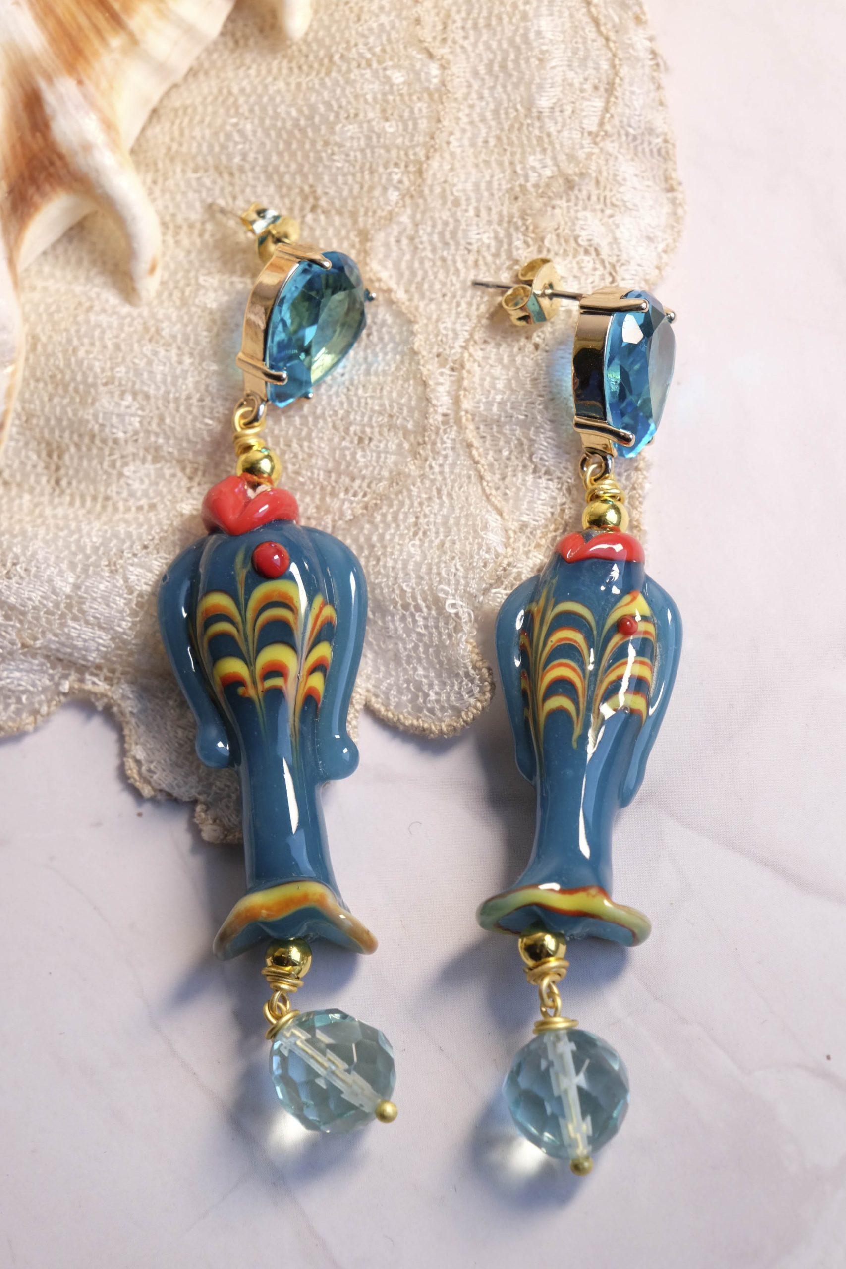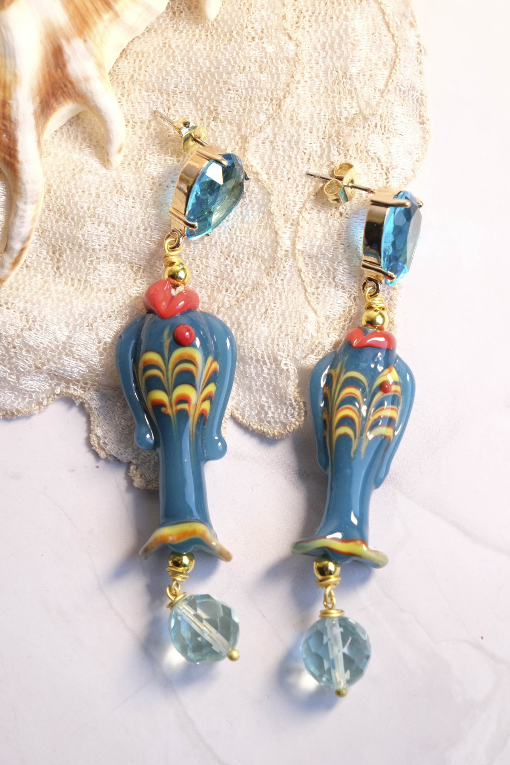 ✨ Murano Glass and Crystal Fish Earrings ✨