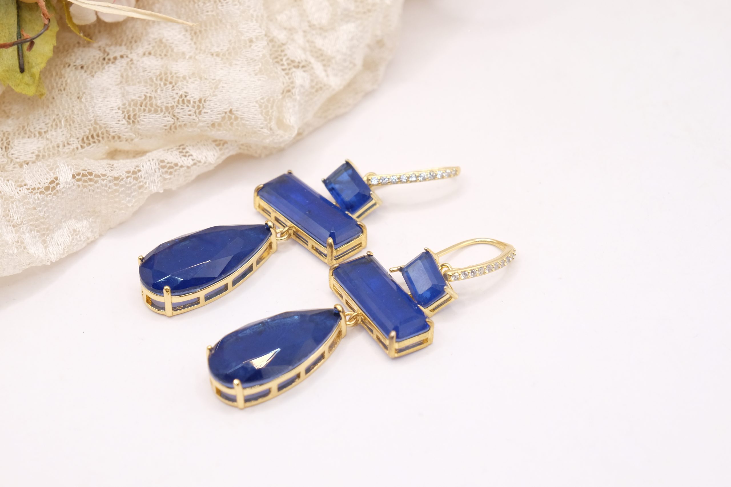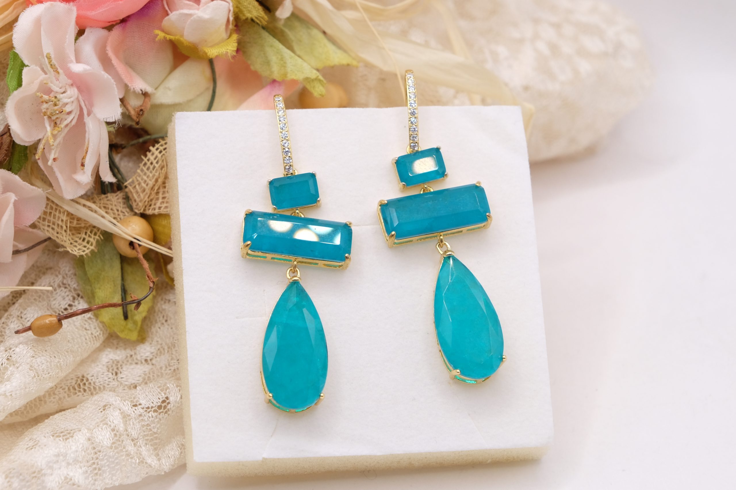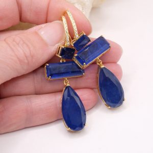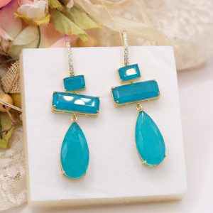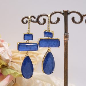 Earrings with drops and rectangles in natural quartz