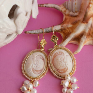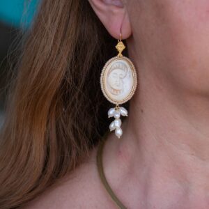 SOLE LUNA silver pearl cameo earrings