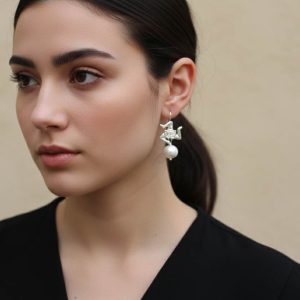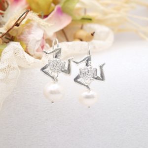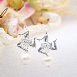Trinacria earrings with rhodium-plated 925 silver and pearls