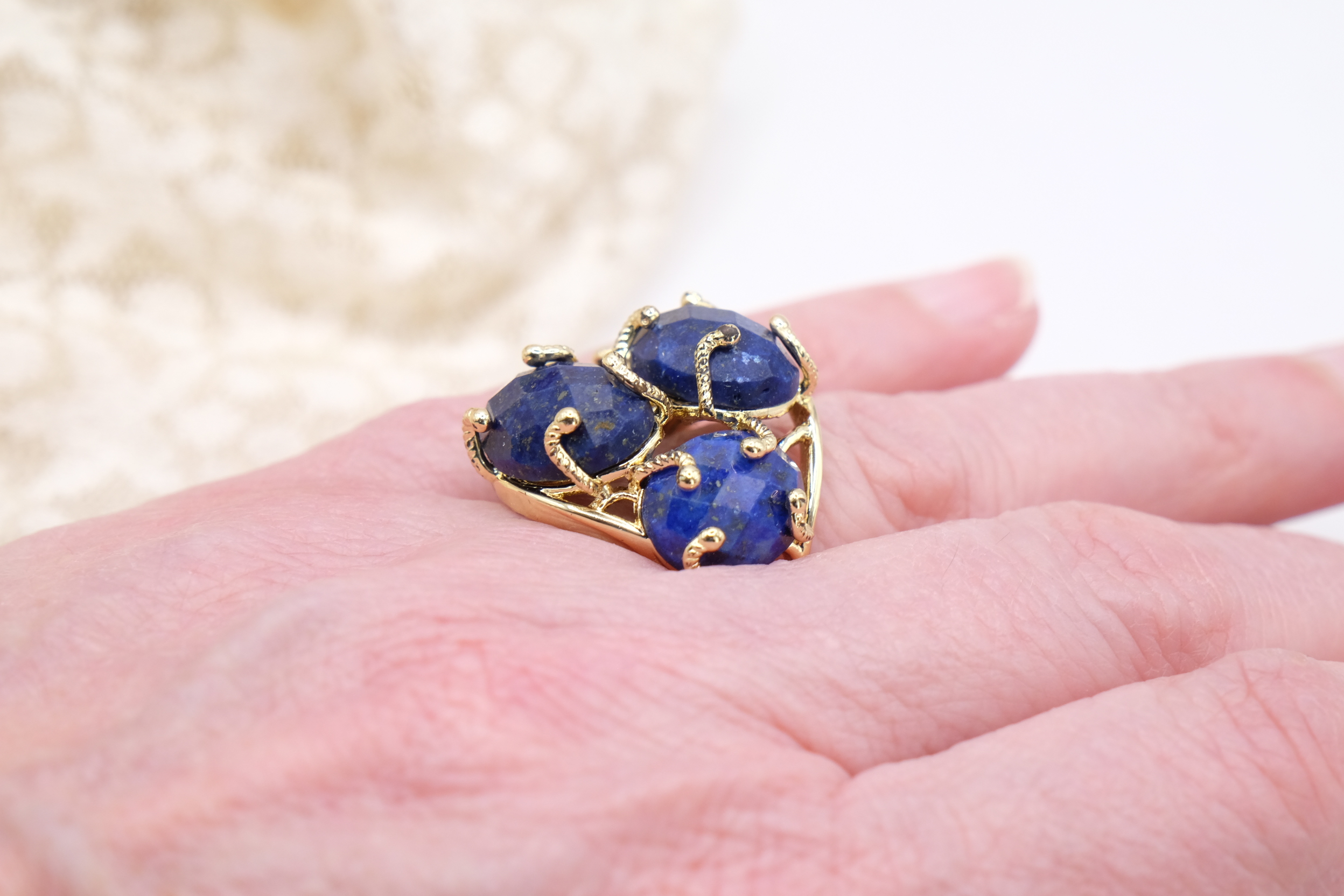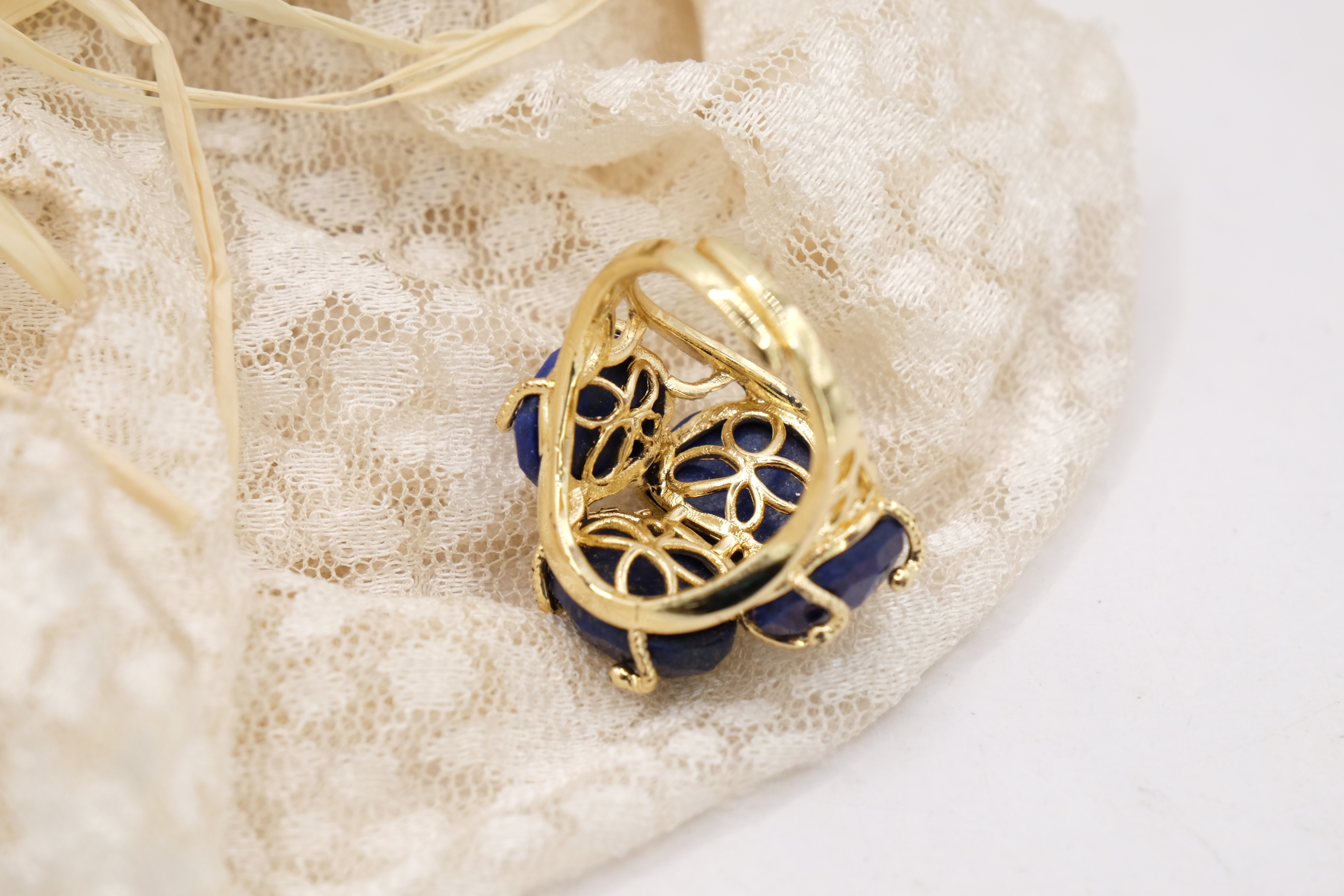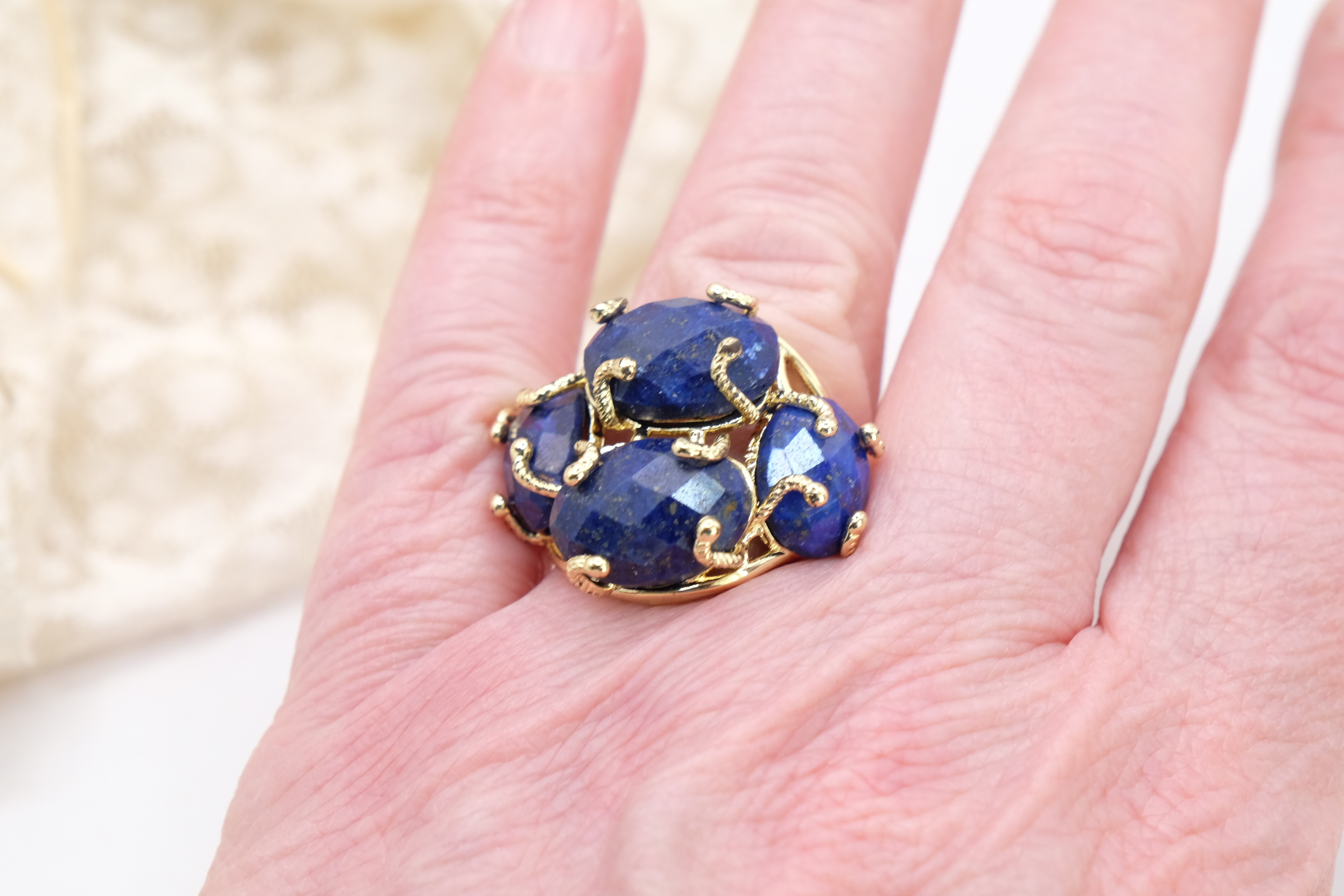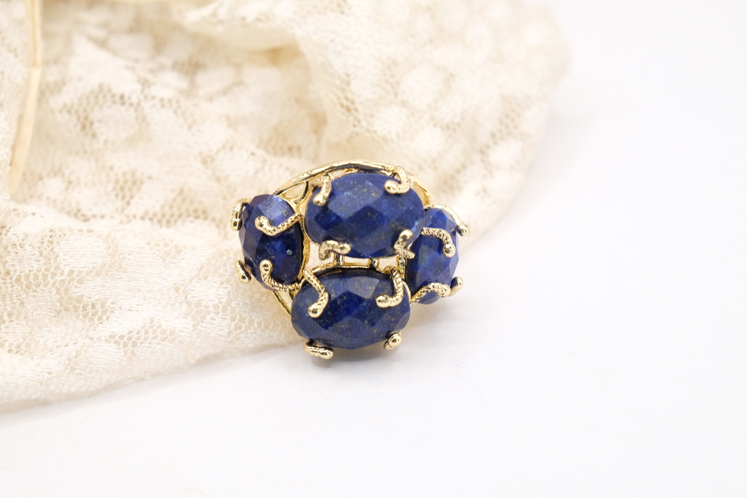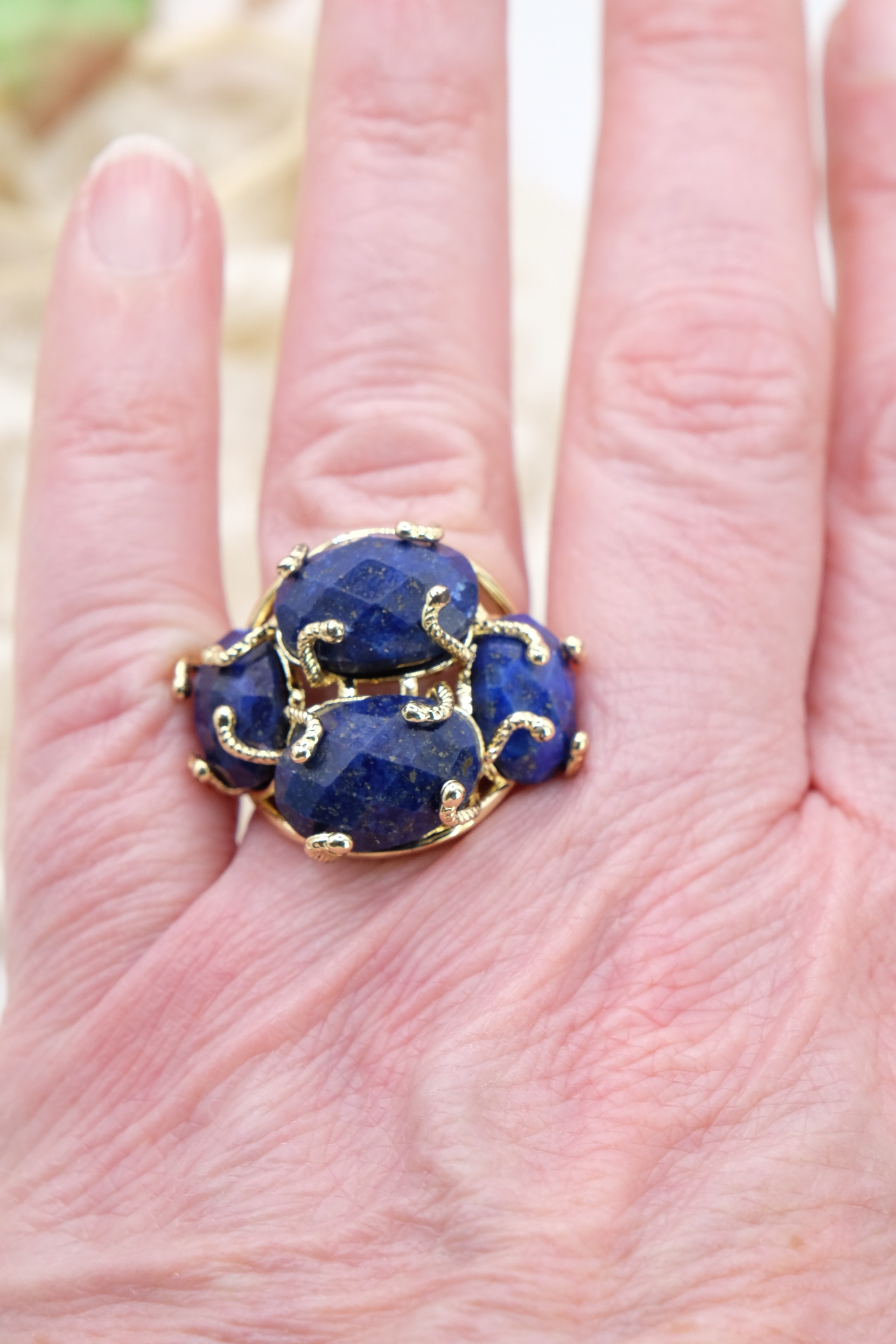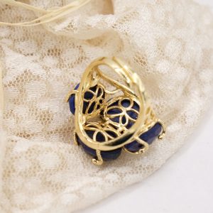 Elegante anello con 4 pietre in lapis su montatura in ottone placcato oro